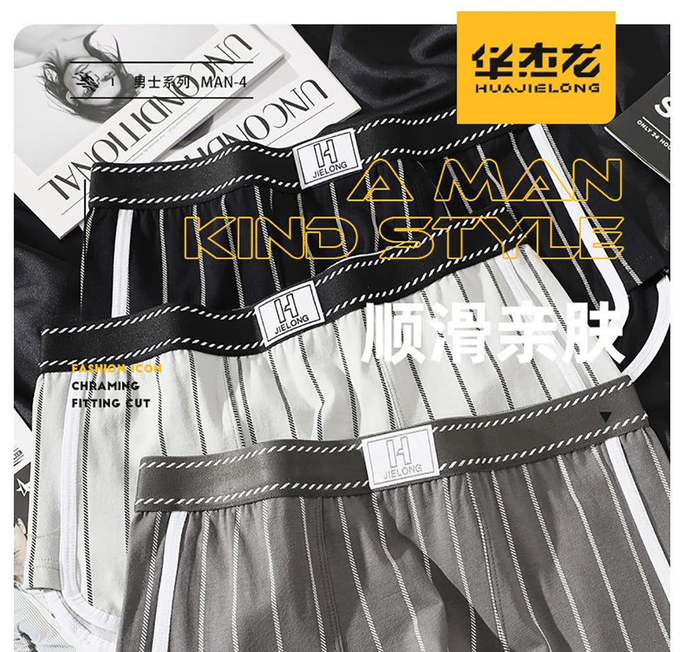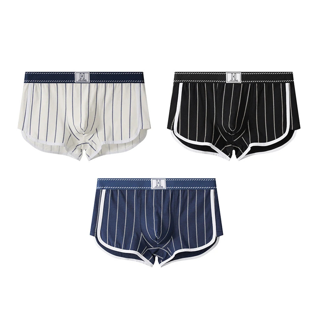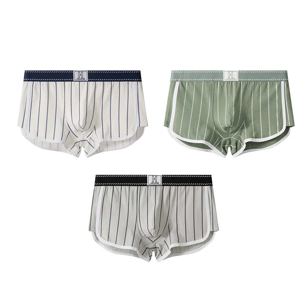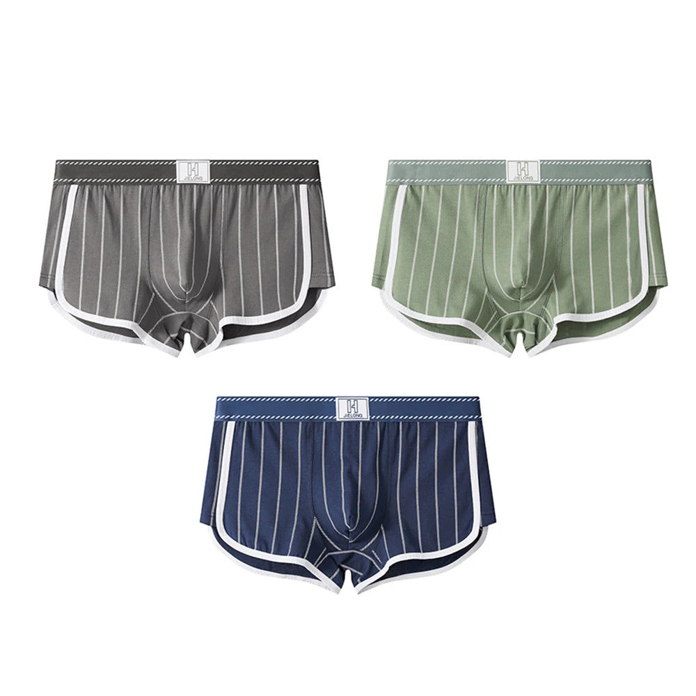 内衣男3PCS/Pack Sexy Breathable Mesh U Crotch Boxers Man 100% Cotton Soft Striped Men's Panties High Elastic Widen Waist Underpants