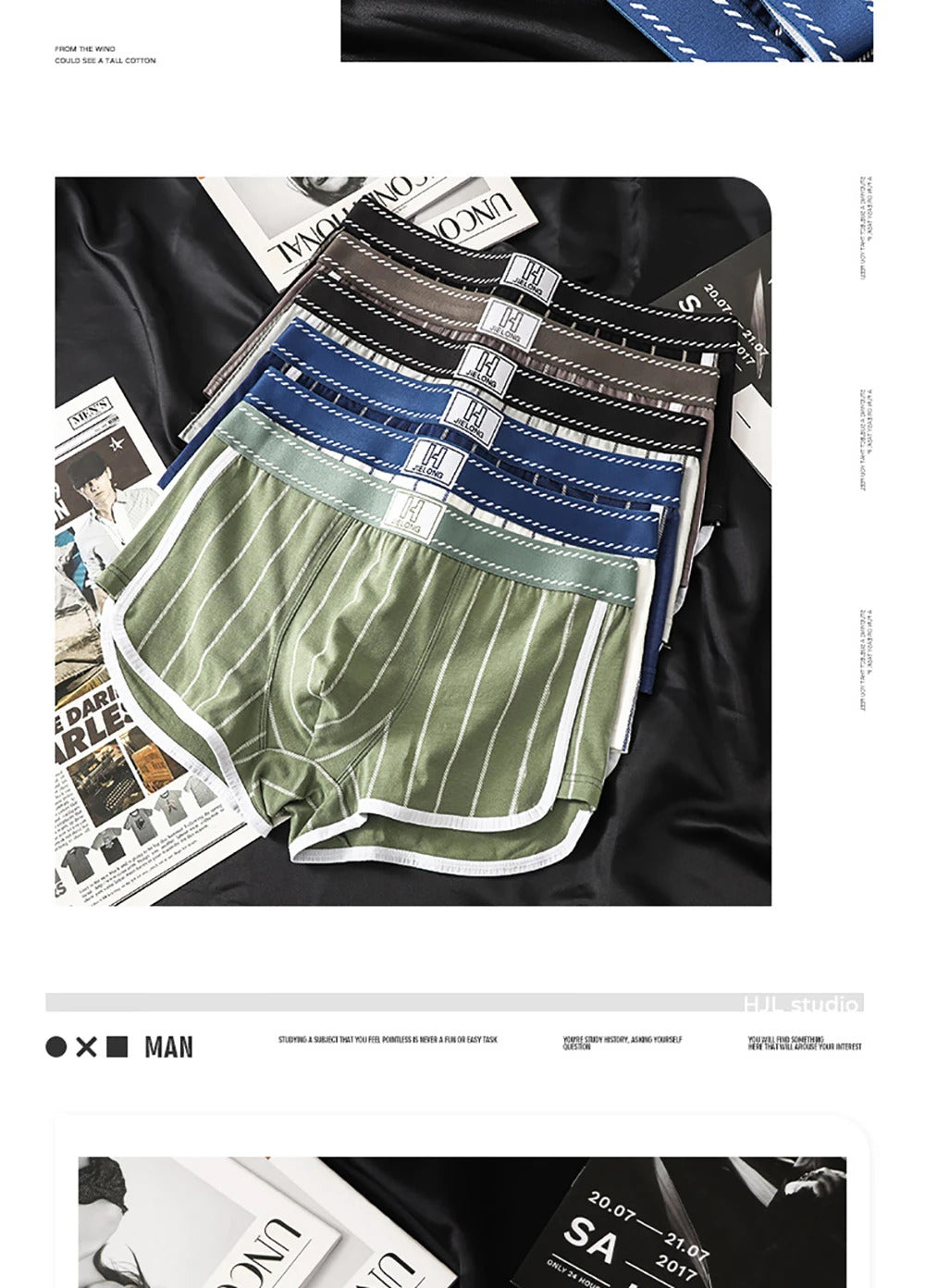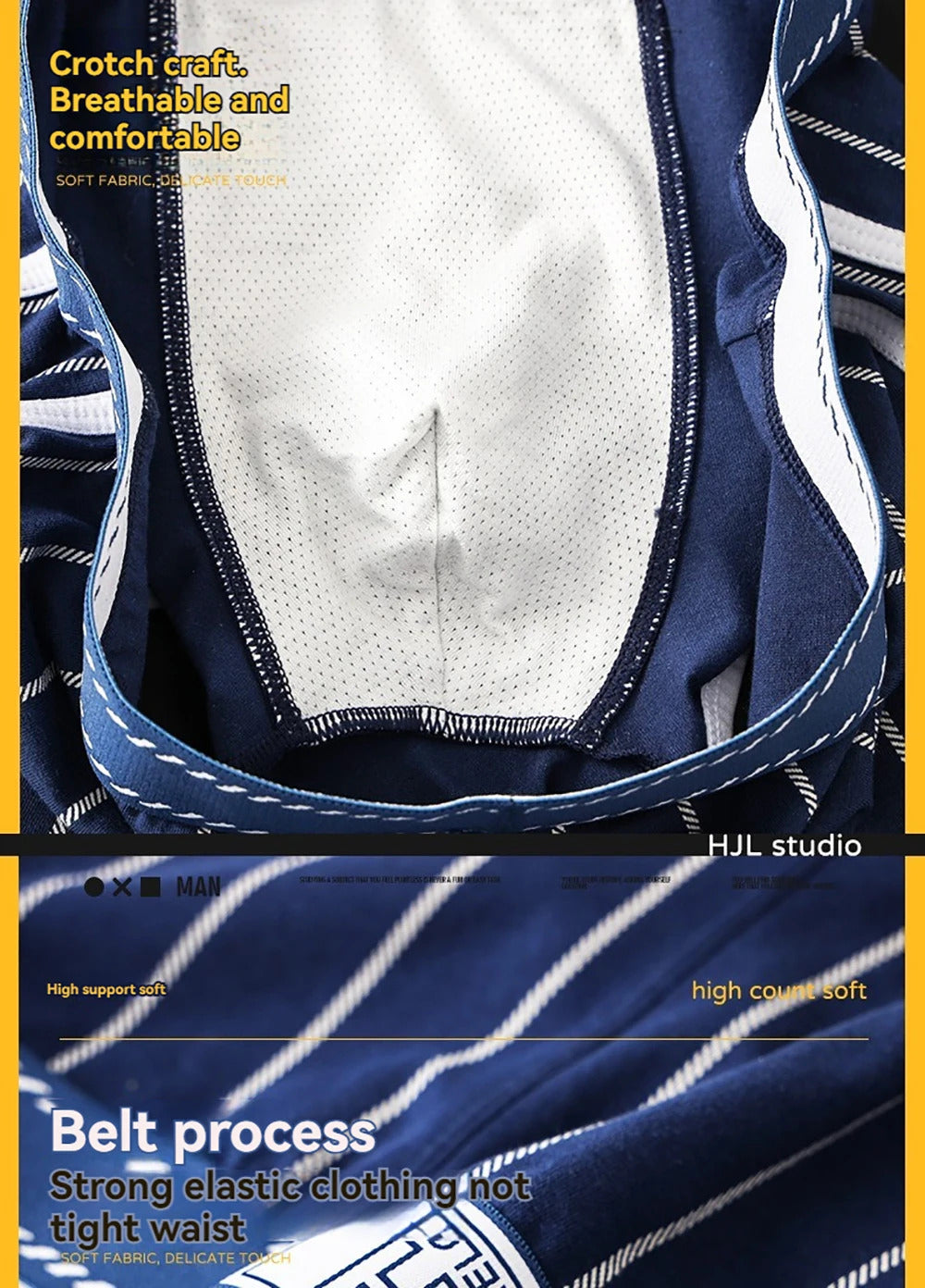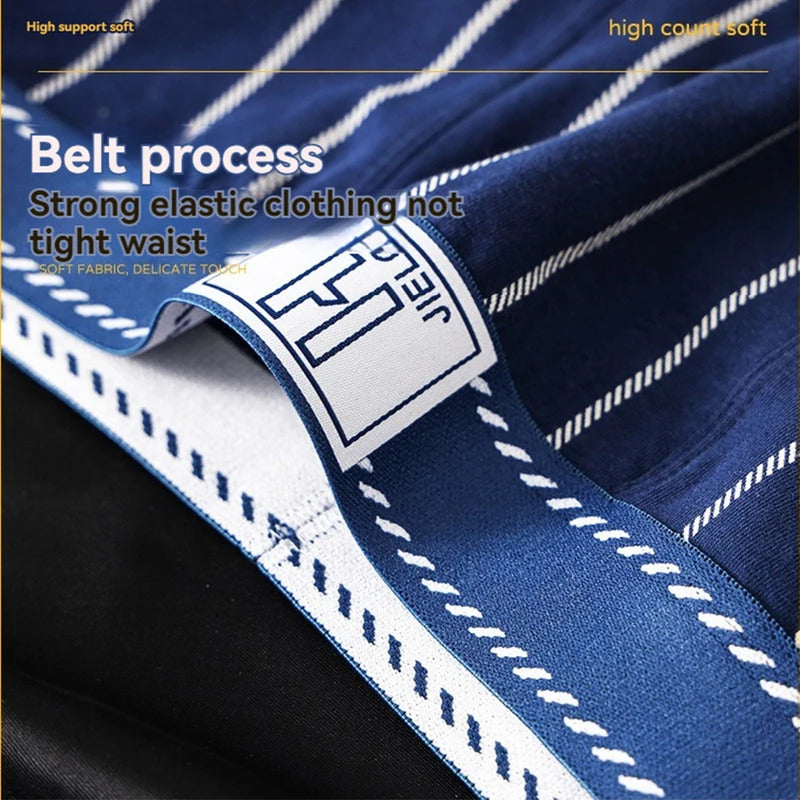 内衣男3PCS/Pack Sexy Breathable Mesh U Crotch Boxers Man 100% Cotton Soft Striped Men's Panties High Elastic Widen Waist Underpants