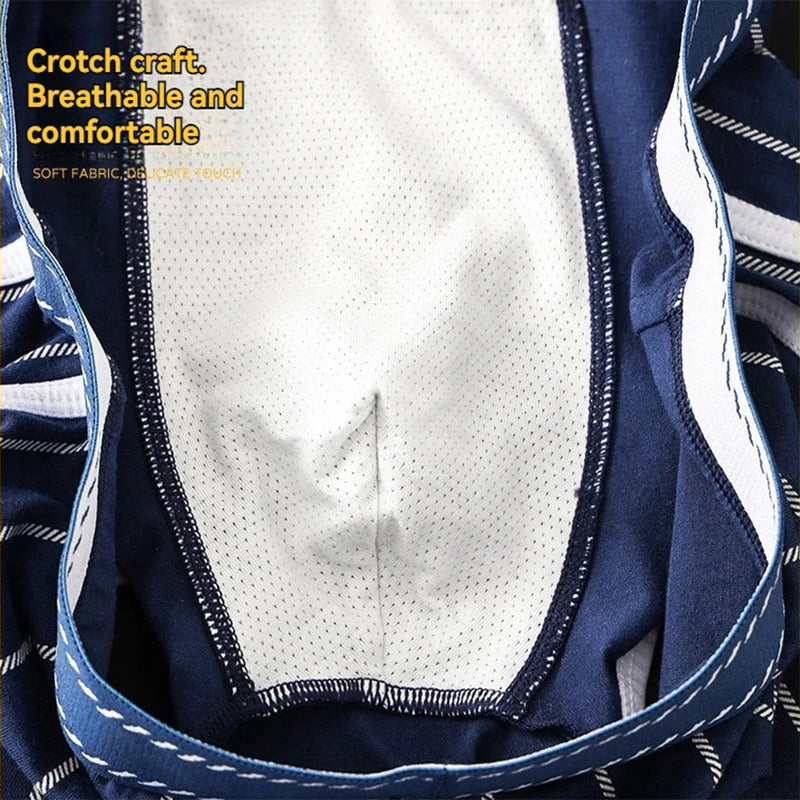3PCS/Pack Sexy Breathable Mesh U Crotch Boxers Man 100% Cotton Soft Striped Men's Panties High Elastic Widen Waist Underpants