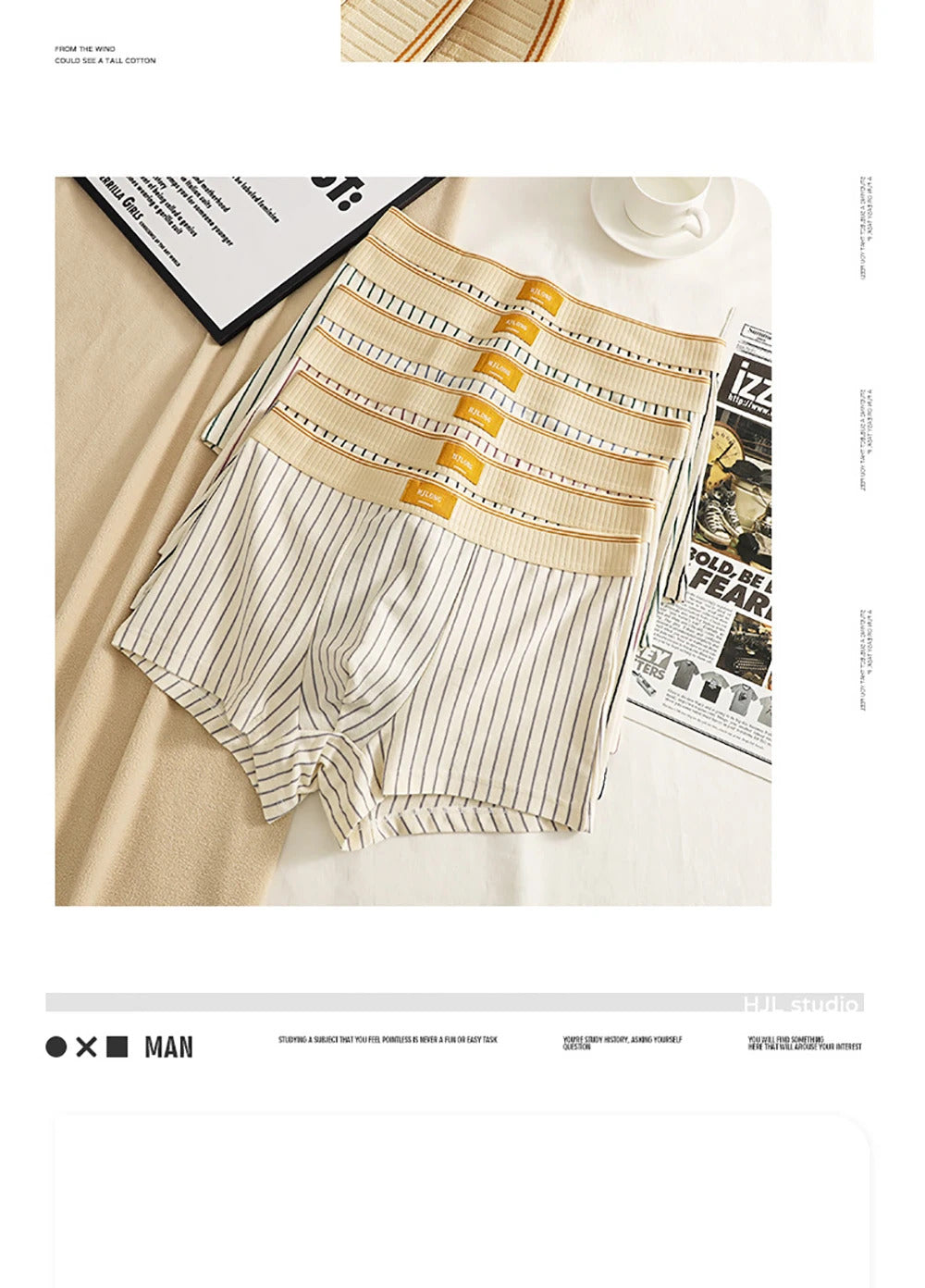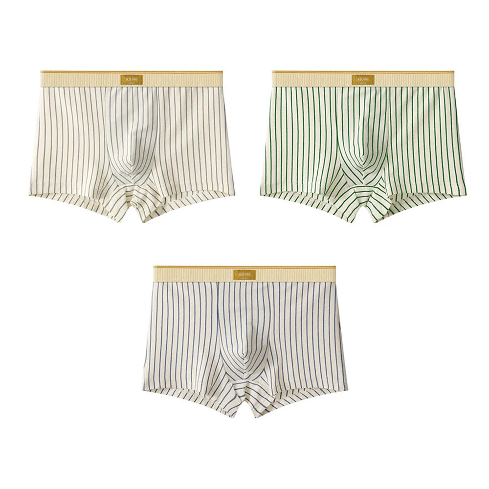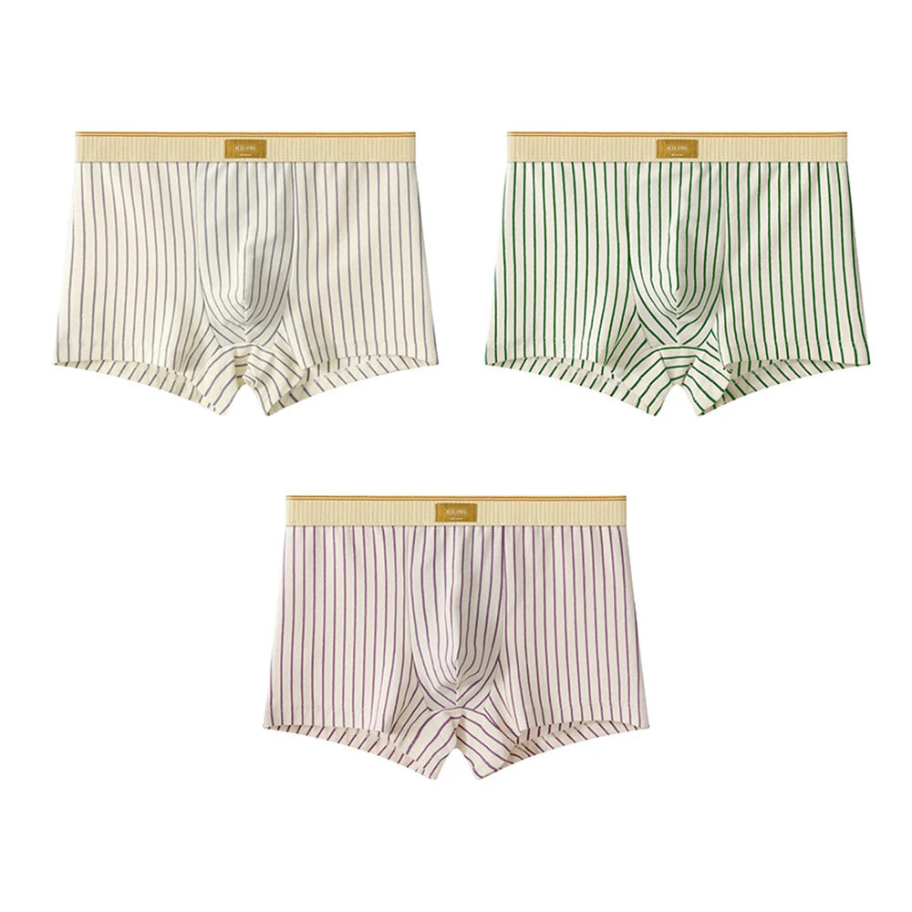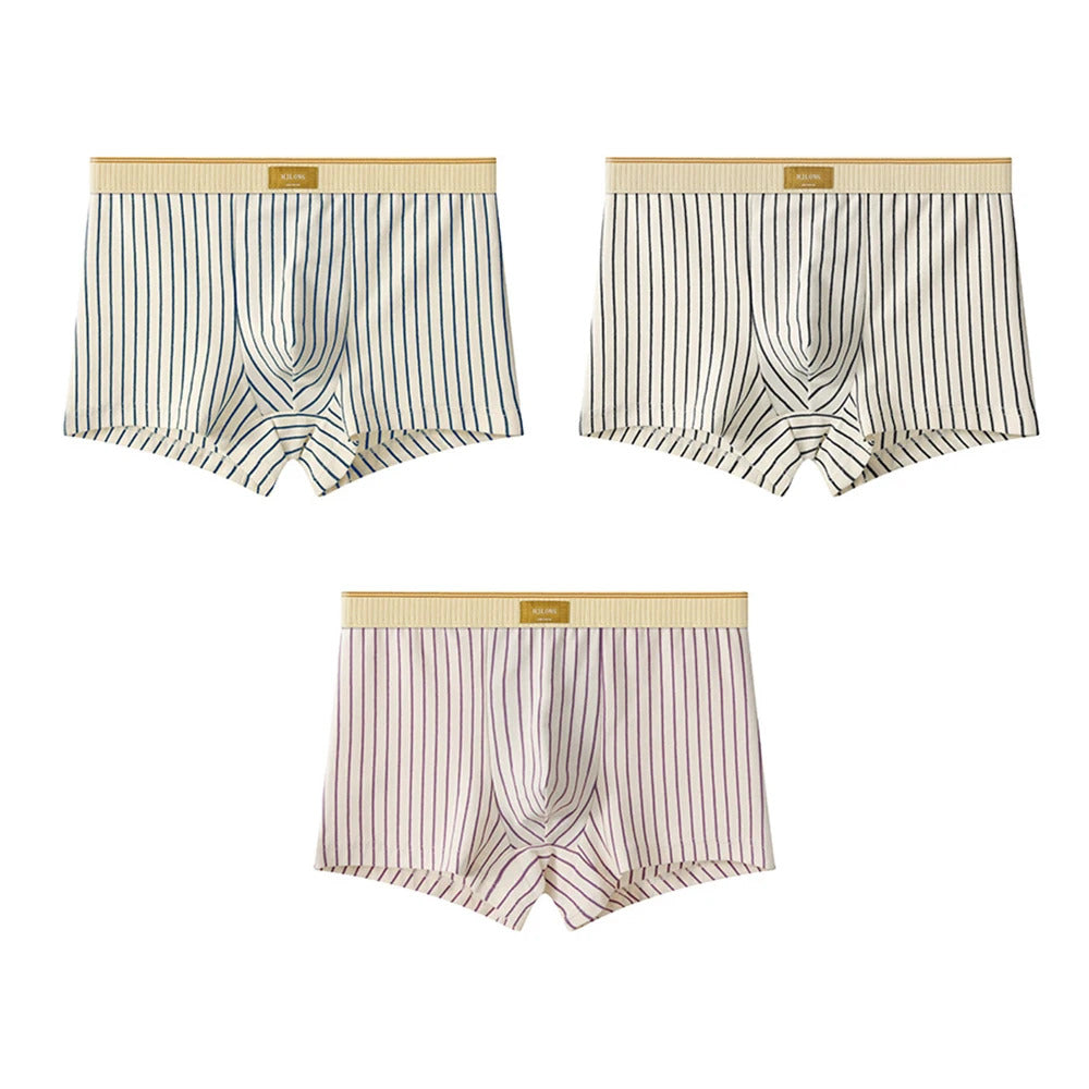 3PCS/Pack Soft 100% Cotton Mens Underwear Hygroscopic Breathable Crotch Underpants Trendy Striped Men's Panties Boxers Hombre