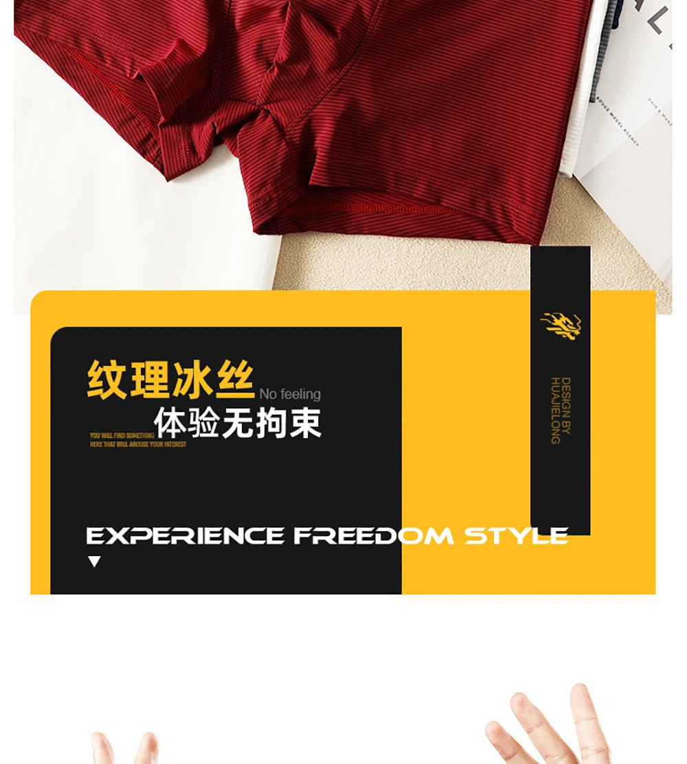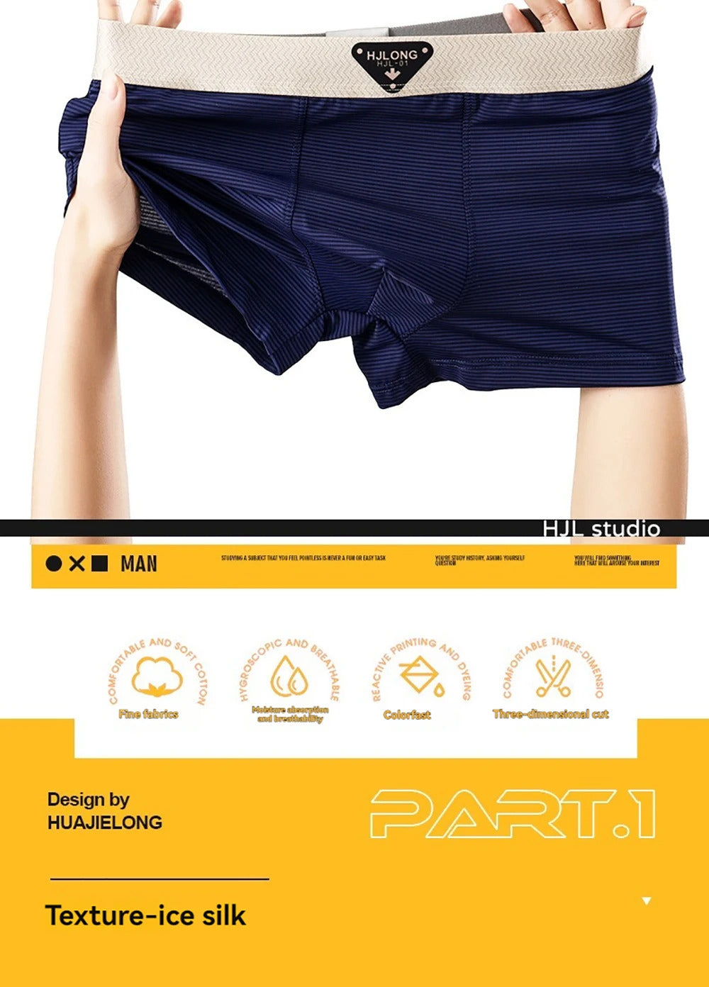 内衣男3PCS/Pack Soft Ice Silk Solid Men's Underpants Hygroscopic Breathable Mesh Crotch Man Underwear High Elastic Waist Boxers Hombre