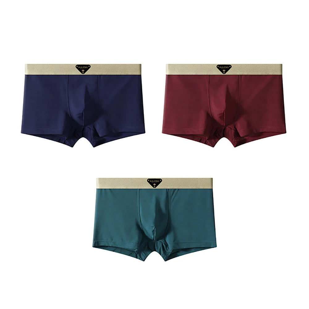 3PCS/Pack Soft Ice Silk Solid Men's Underpants Hygroscopic Breathable Mesh Crotch Man Underwear High Elastic Waist Boxers Hombre