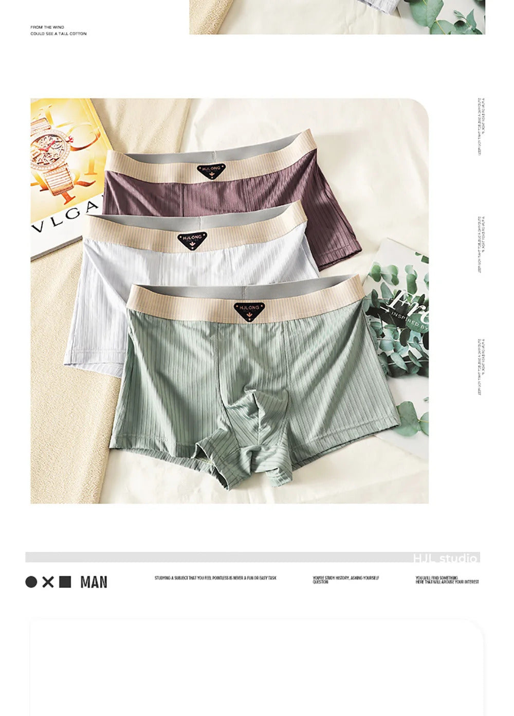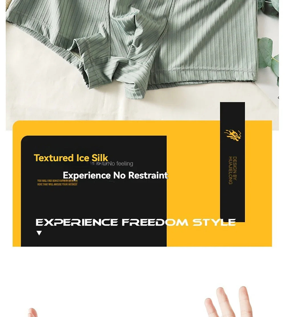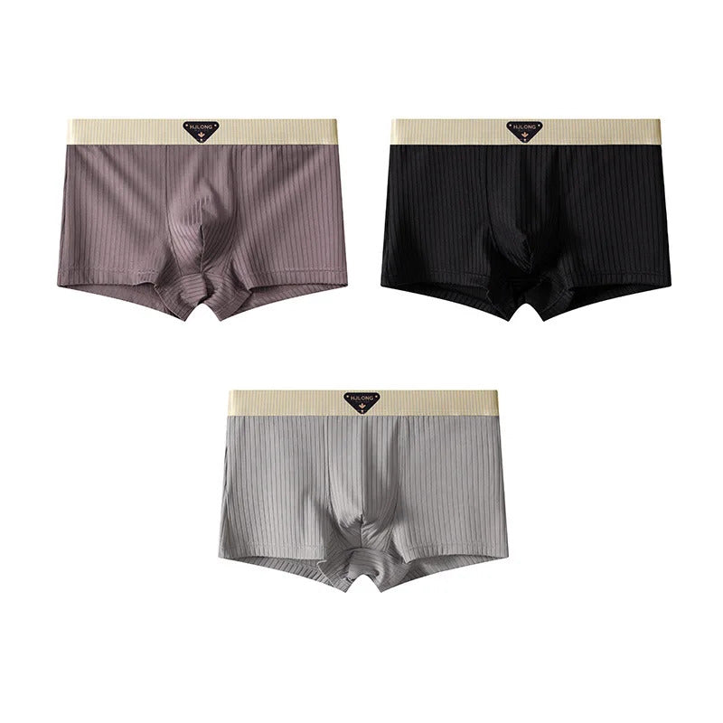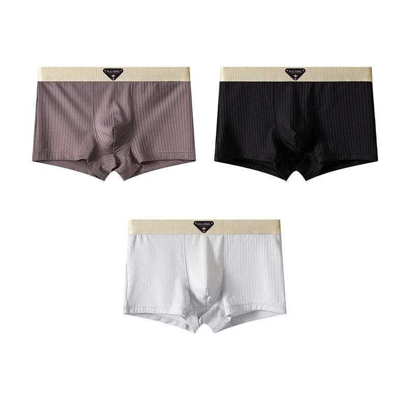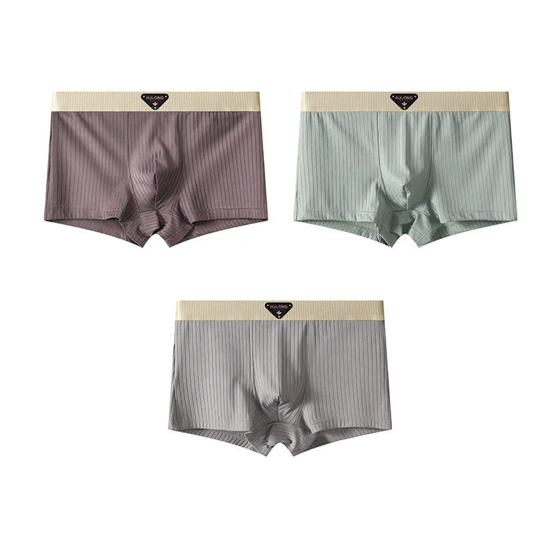 3PCS/Pack Solid Striped Ice Silk Boxers Hombre Soft Smooth Breathable Crotch Men's Panties High Elastic Waistband Man Underwear