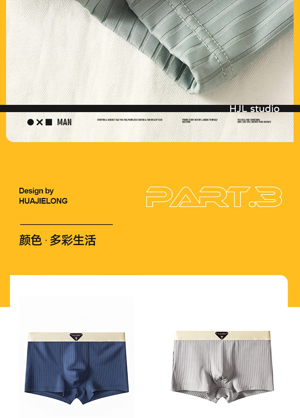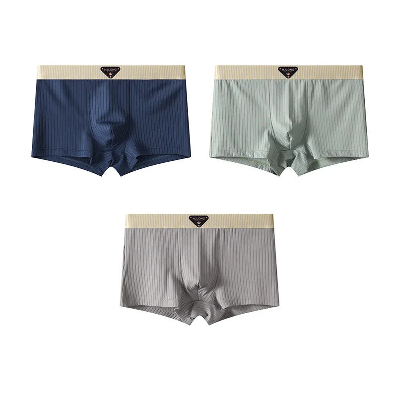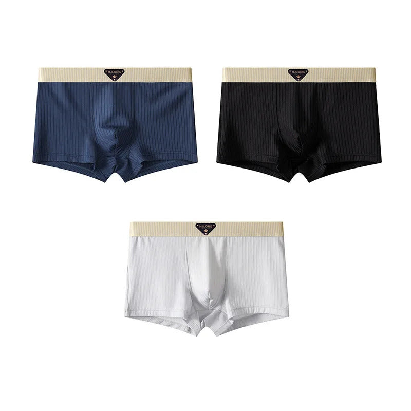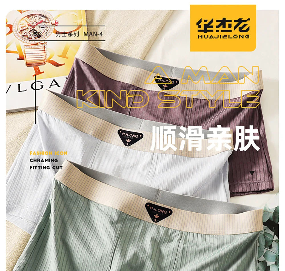 3PCS/Pack Solid Striped Ice Silk Boxers Hombre Soft Smooth Breathable Crotch Men's Panties High Elastic Waistband Man Underwear