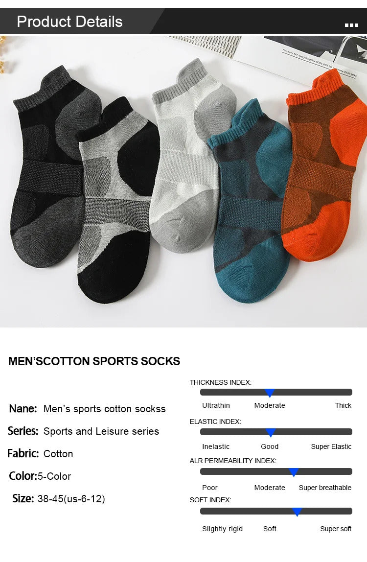 5 Pairs High Quality Men Ankle Socks Breathable Cotton Sports Socks Mesh Casual Athletic Summer Thin Cut Short Sokken Plus Size男士袜子