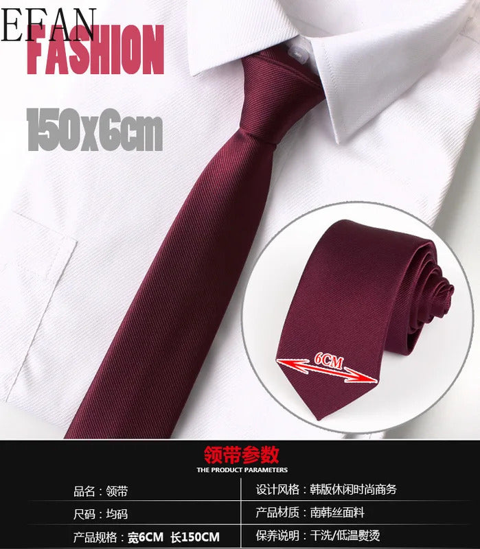 领带男6cm New Korean Version Necktie Silk Tie Handmade Multiple Colour Men's Solid Simple Tie Wedding Groom Party Suit Accessories