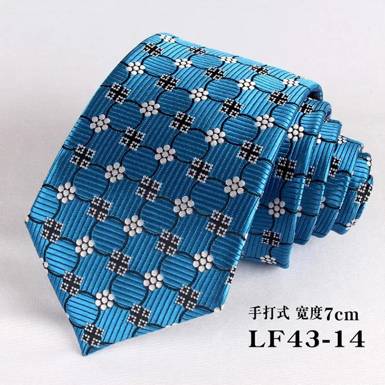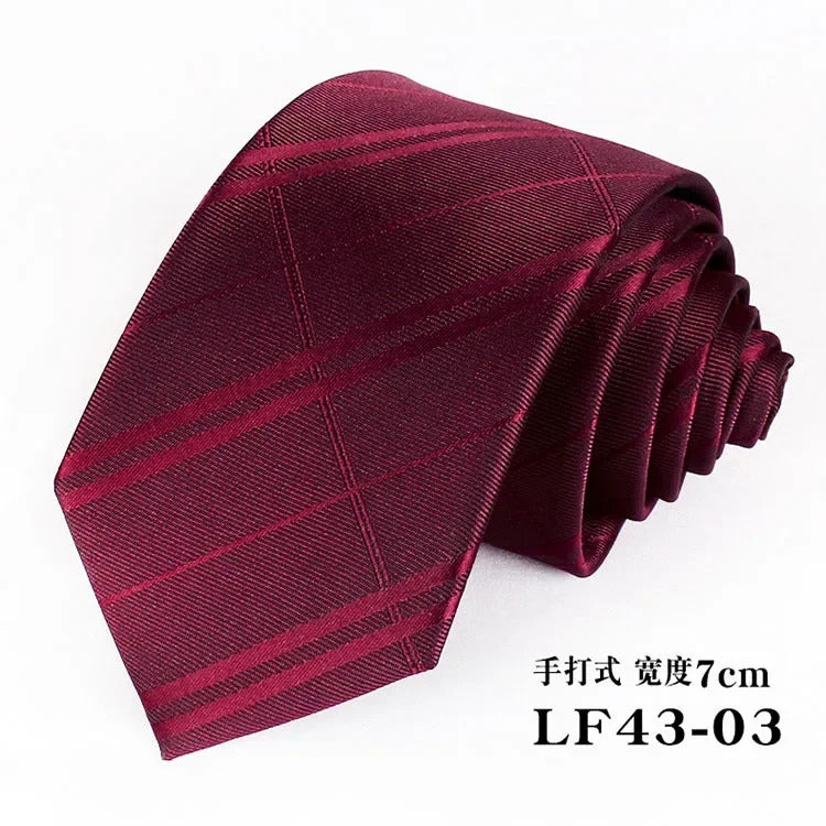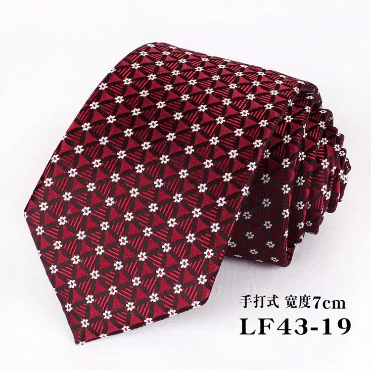 领带男7CM High Quality Elegant Neckties Wine Blue Striped Flower Soft Ties for Gentleman Formal Business Work Administration Tie