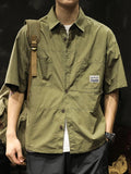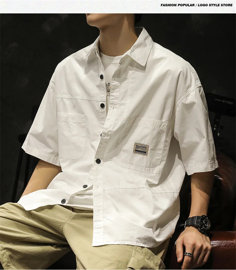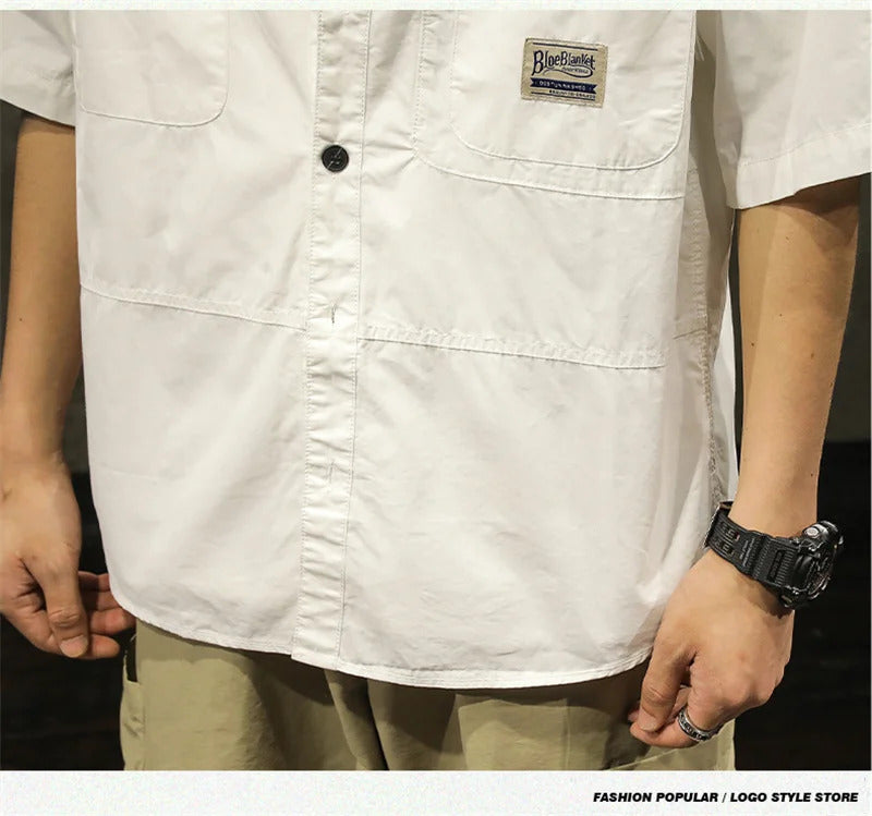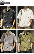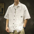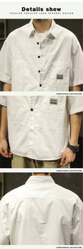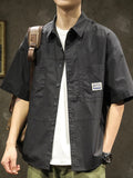 衬衫男American Casual Short Sleeve Shirt For Men Summer Fashion Comfortable T-shirt 2025 New High Street Plain Lapel blouses hombre