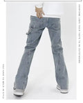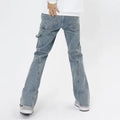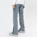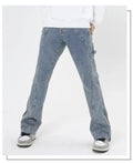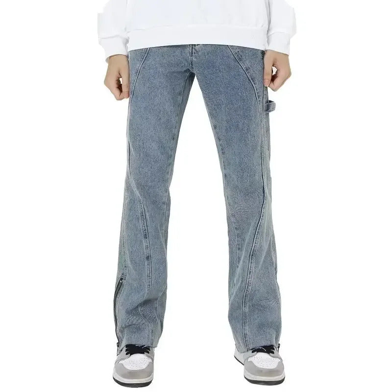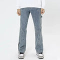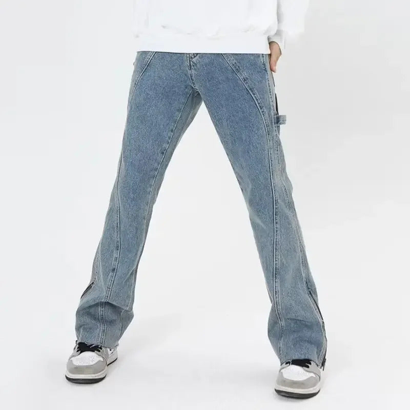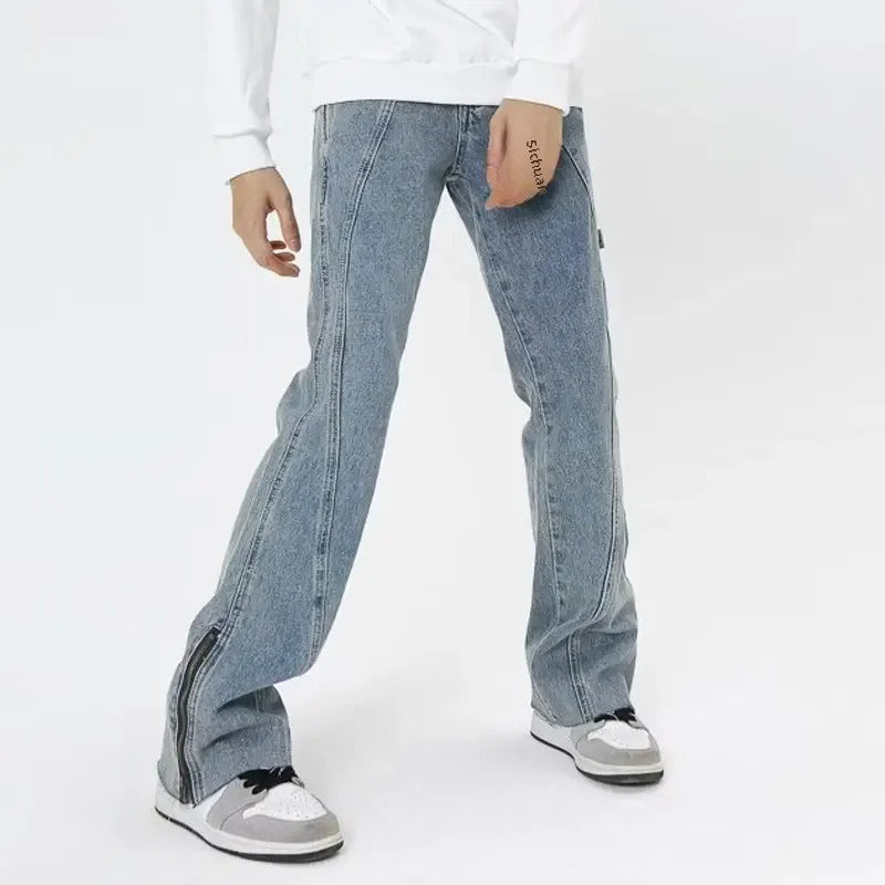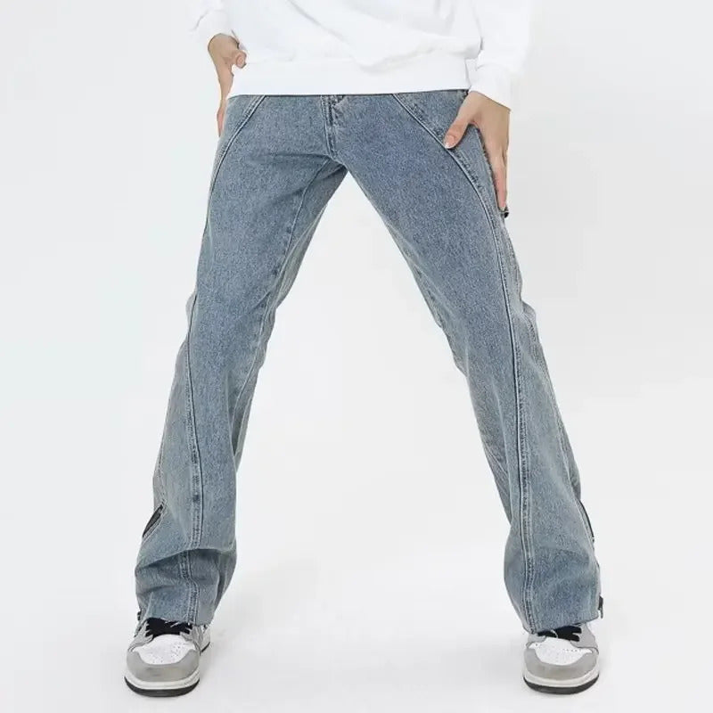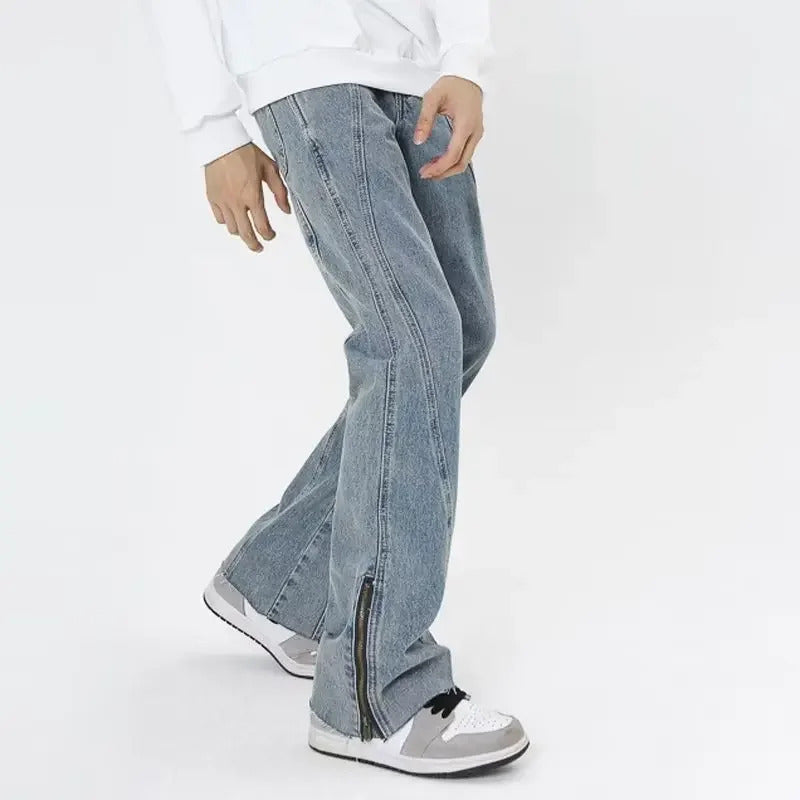 牛仔裤男American Style High Street Vibe Zippered Side Slit Men's Jeans Loose Fit Straight Leg Micro Flared Trousers Trendy Brand