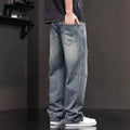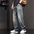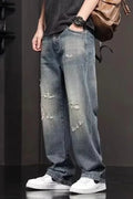 牛仔裤男American Style Men's Jeans New 2024 Summer Straight-Leg Loose-Fit Wide-Leg Casual Pants Ripped Style For Men