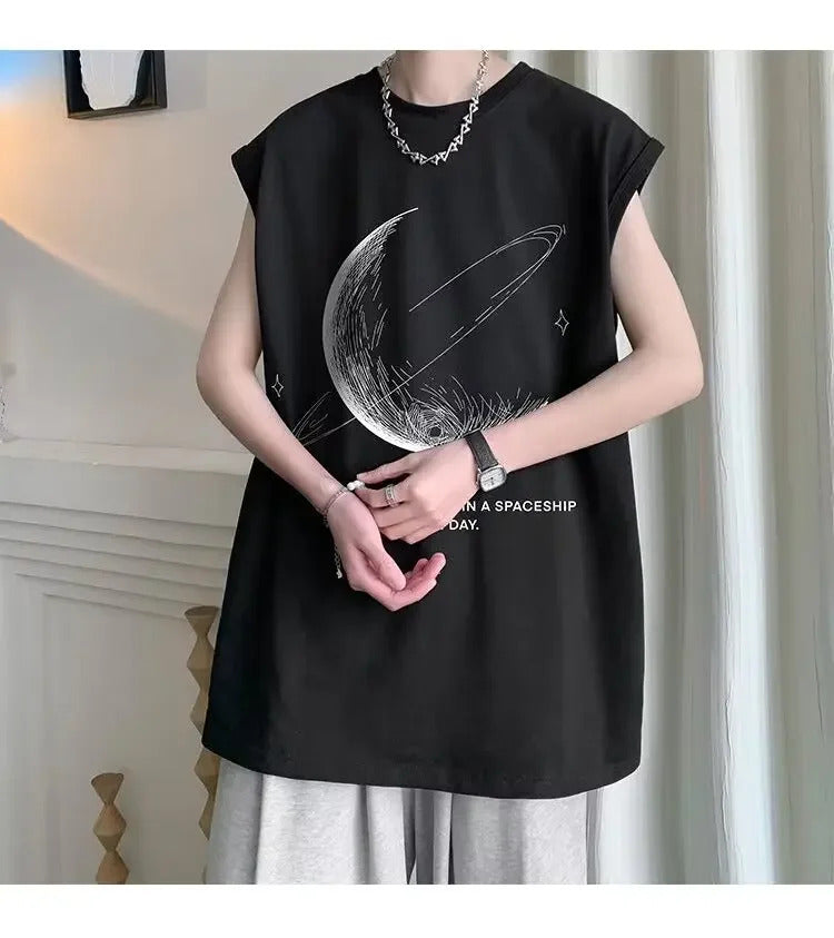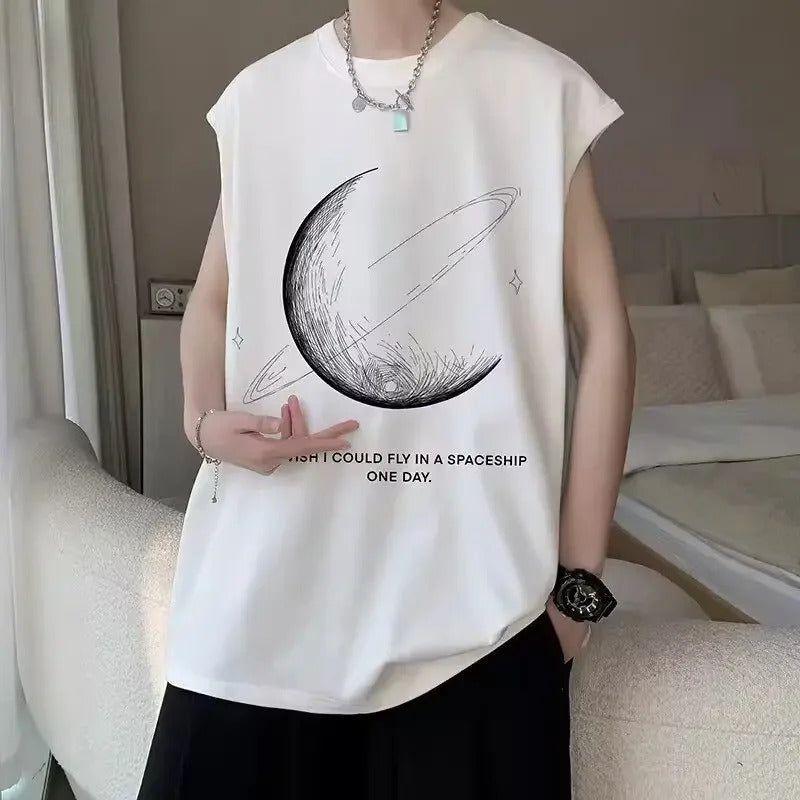 男士背心American Style Sporty Tank Top Men's Sleeveless High Street Hip Hop Short Sleeve T-Shirt Casual Fashion Sensation