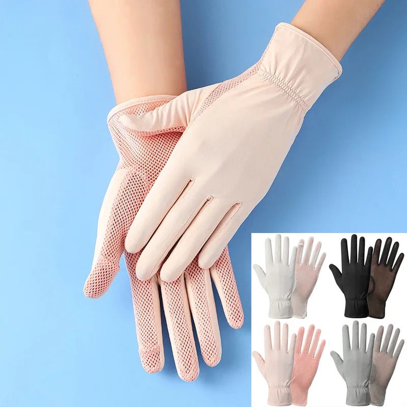 防晒手套女Anti-UV Summer Breathable Mesh Gloves Sunscreen Ice Silk Gloves for Car Motorcycle Bike Driving Sports Thin Gloves for Women Men