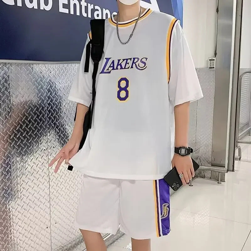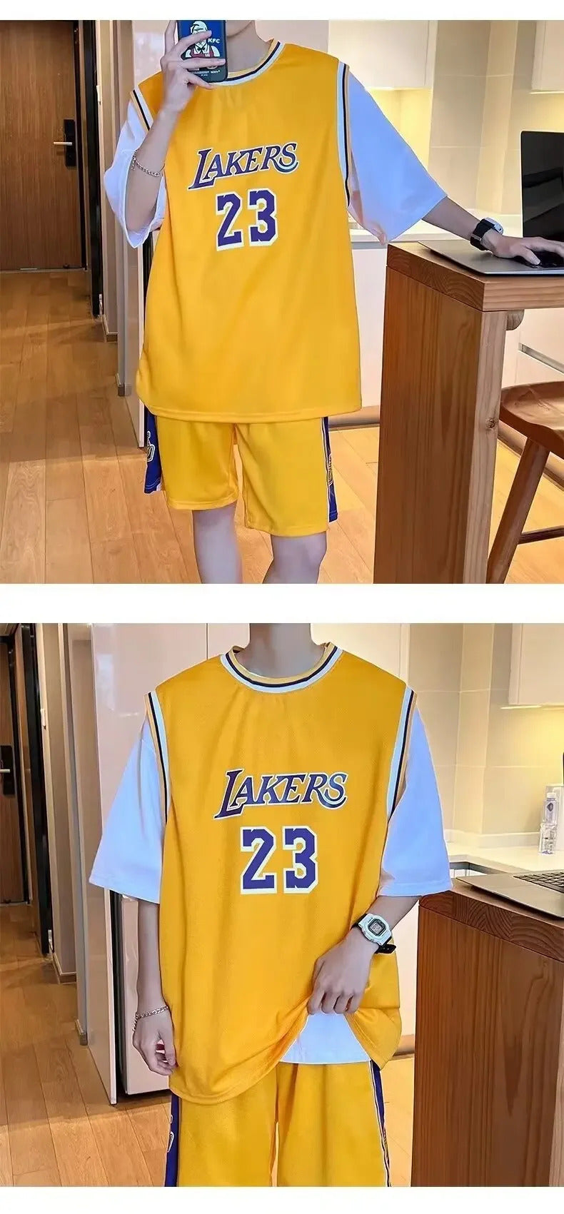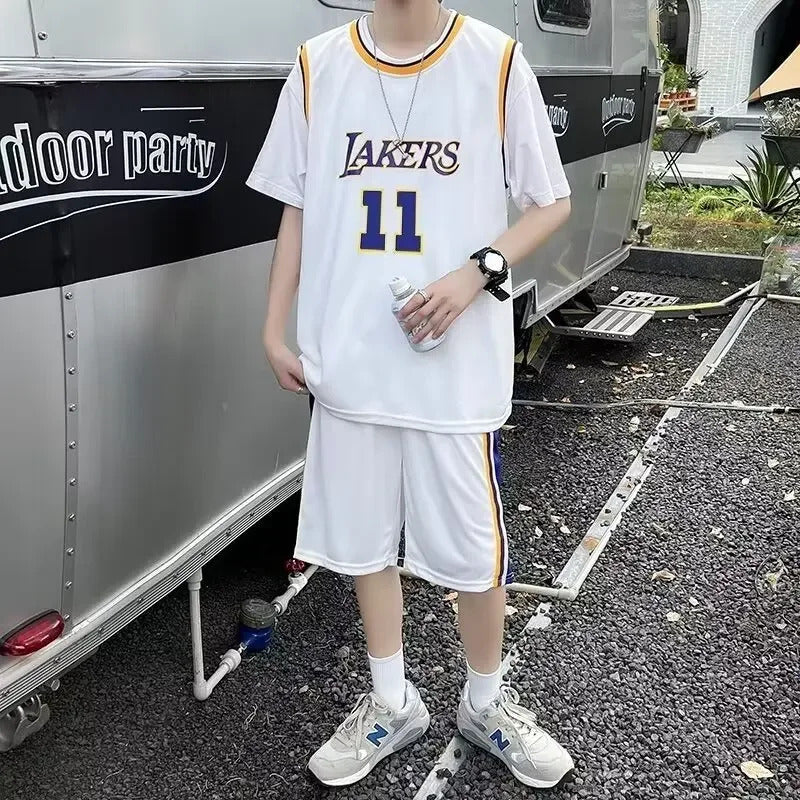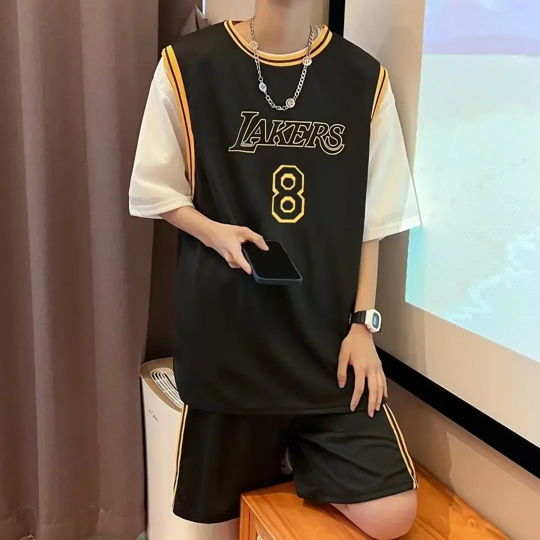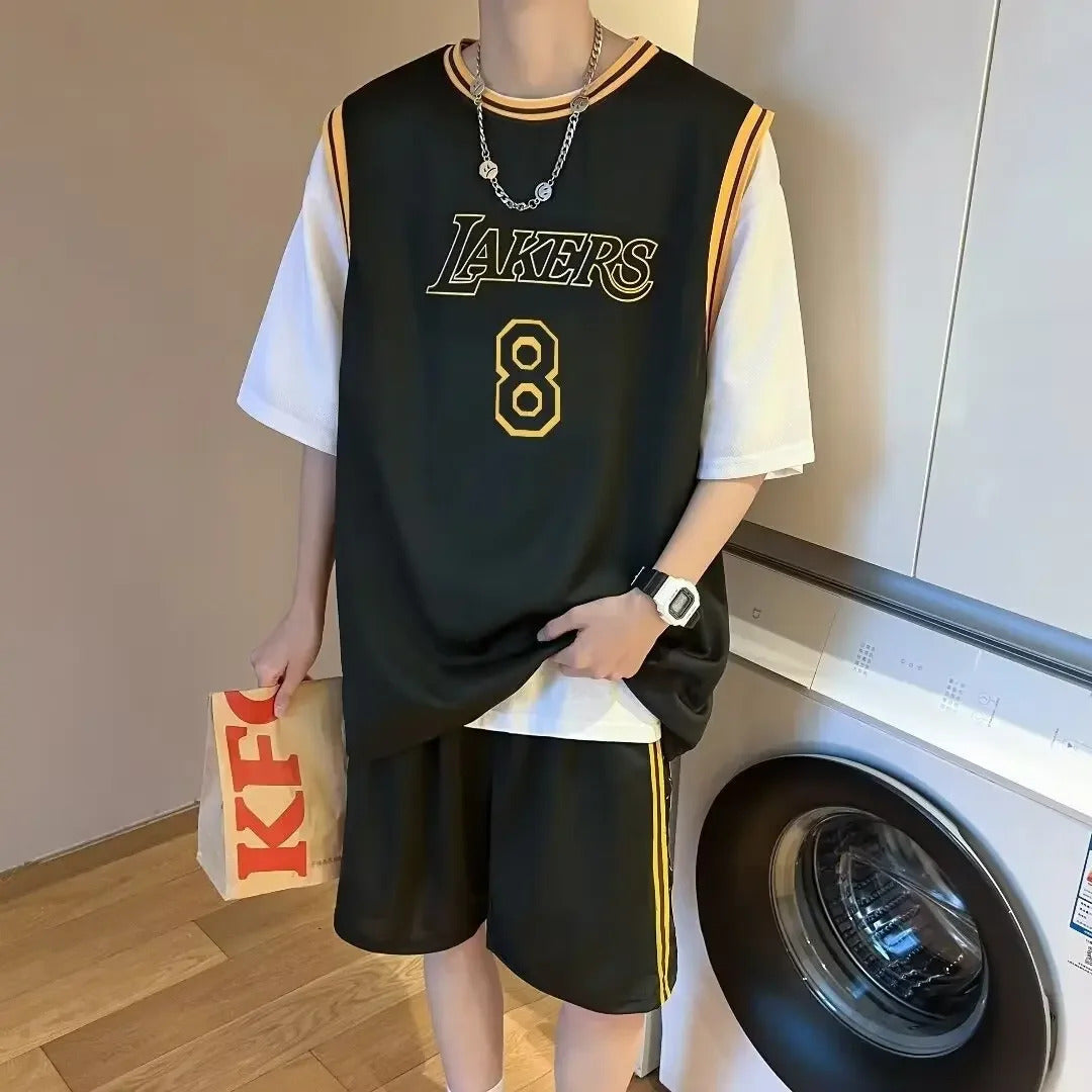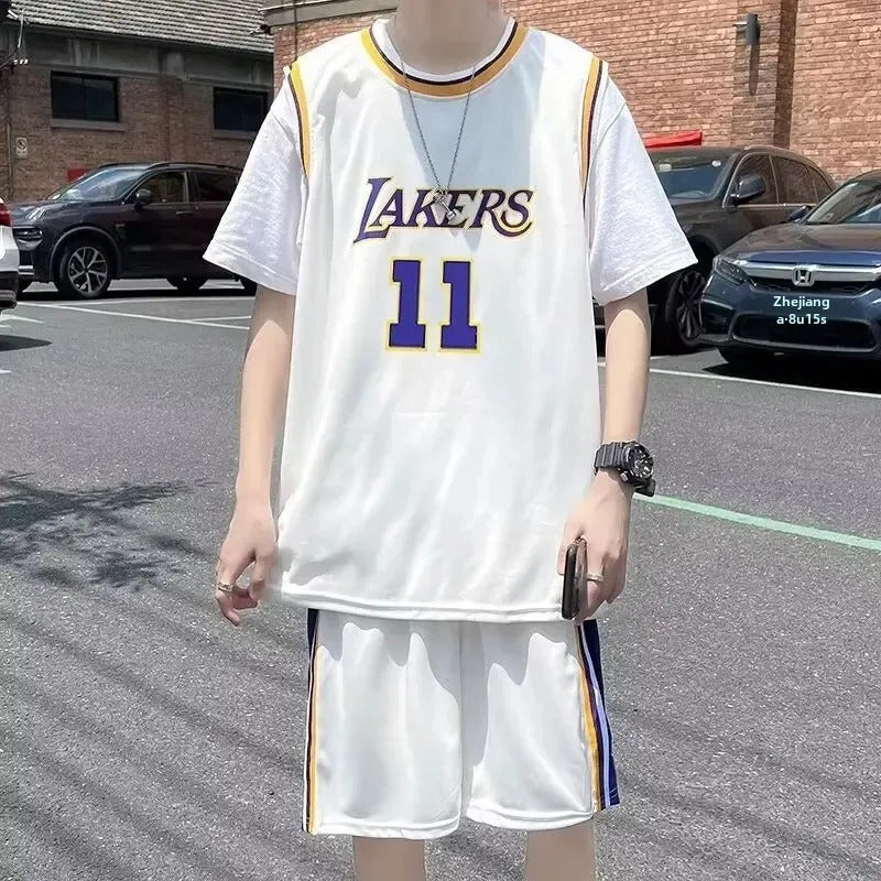 • Two-piece Set :This two-piece set includes a short-sleeved T-shirt and loose crewneck, offering a balanced blend of style and functionality. Ideal for basketball or any summer sport.