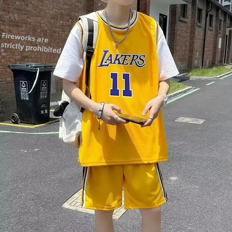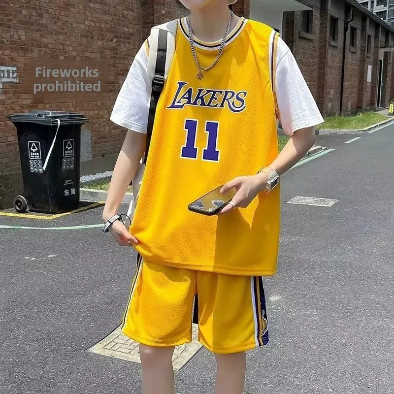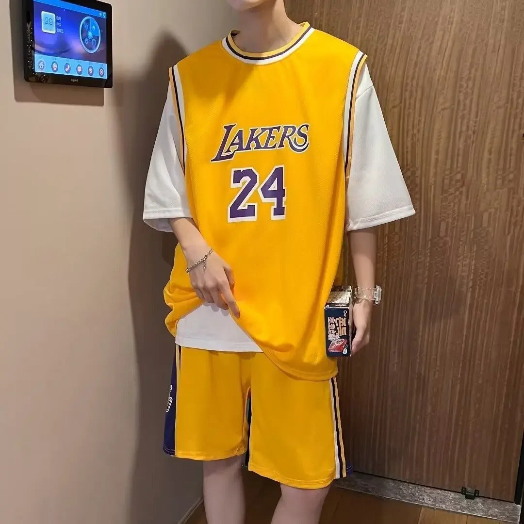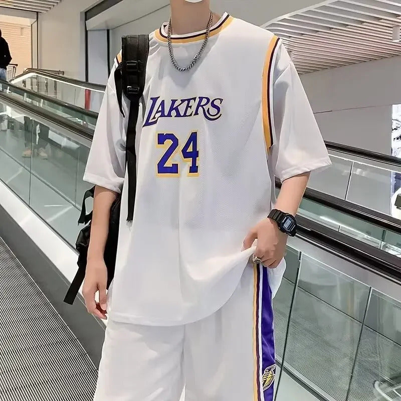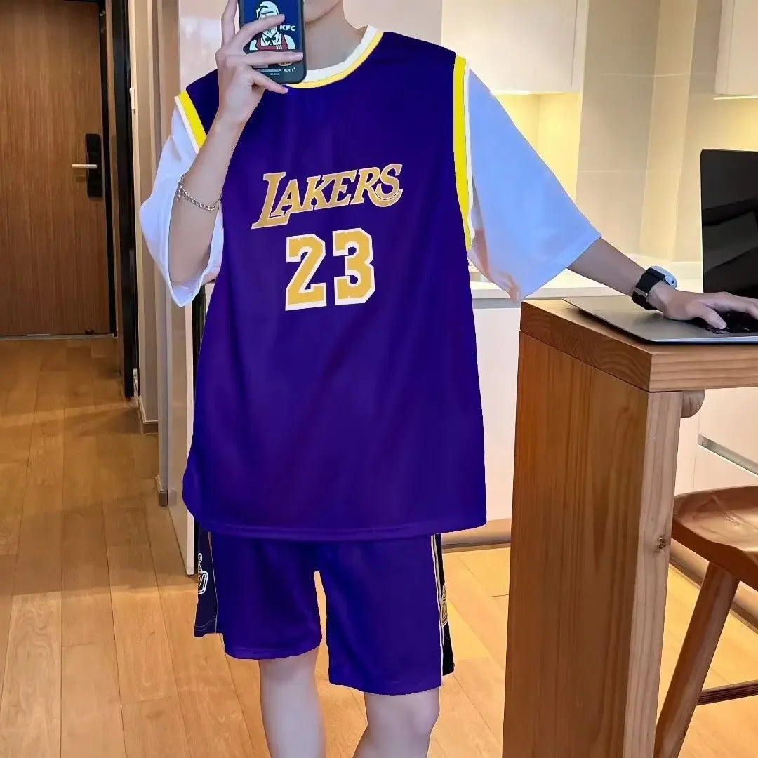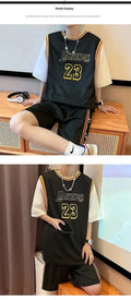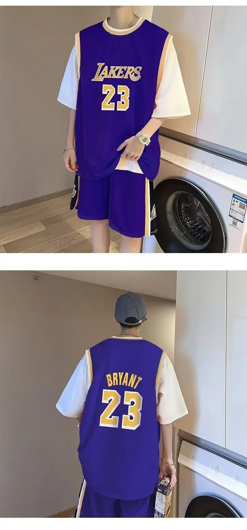 • Two-piece Set :This two-piece set includes a short-sleeved T-shirt and loose crewneck, offering a balanced blend of style and functionality. Ideal for basketball or any summer sport.