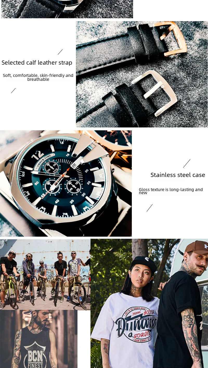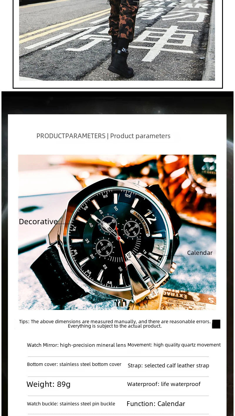 手表男Automatic Date Wristwatch Waterproof Business Men's Watch Luminous Hands Auto-date Functionality