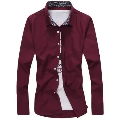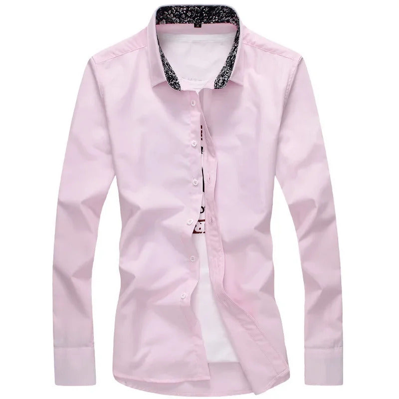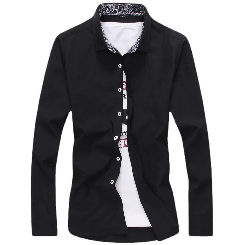 衬衫男Autumn New Style Korean Version Long Sleeve Shirt Men Lapel Slimming Casual Shirt Solid Color Chinese Style Shirt