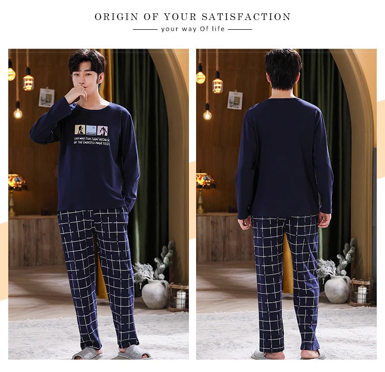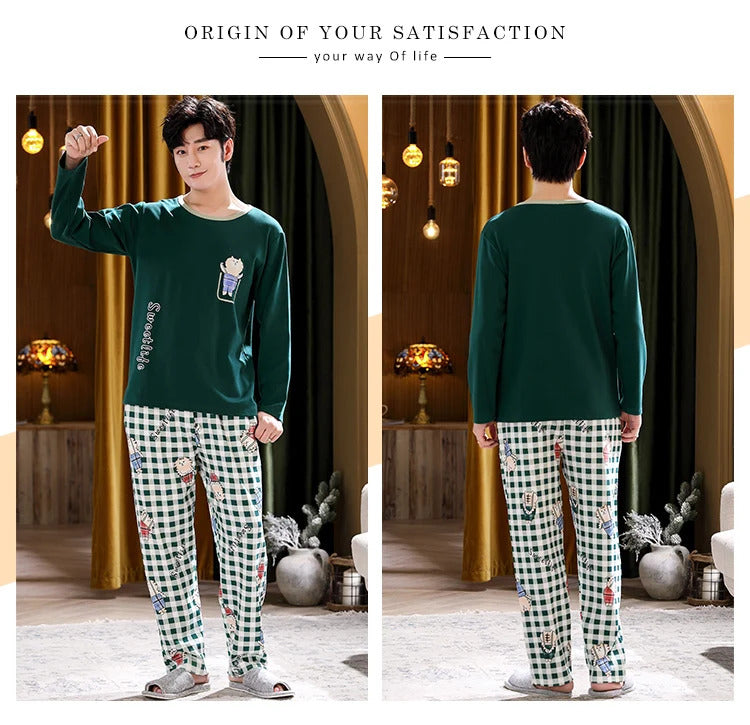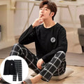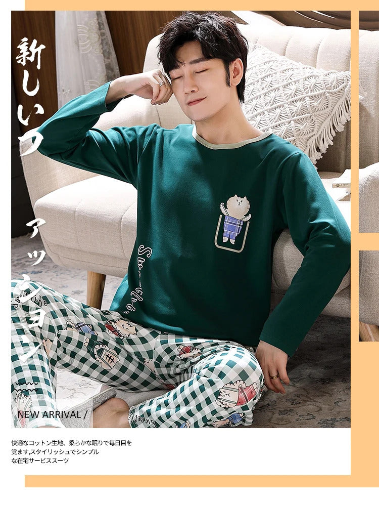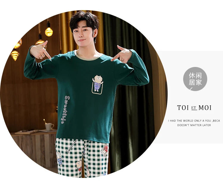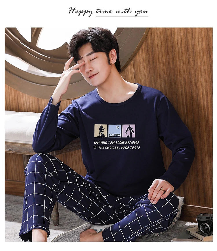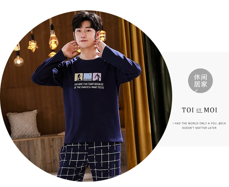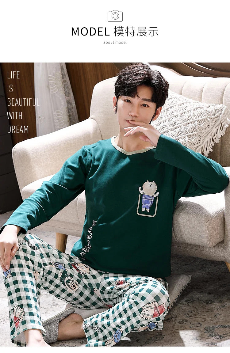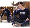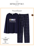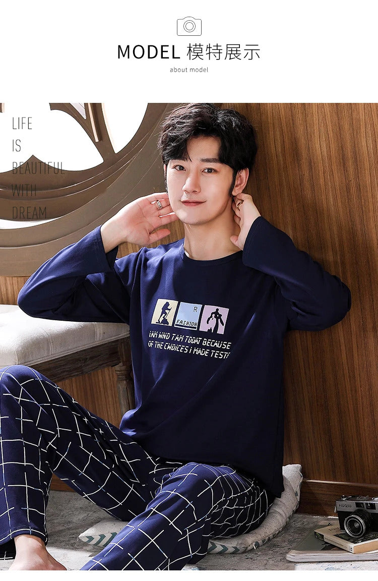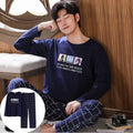 睡衣男Autumn Winter Men's Cotton Pajamas Letter Plaid Sleepwear Cartoon Pajama Sets Casual Sleep&Lounge Pyjamas Plus Size 4XL Pijama