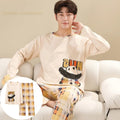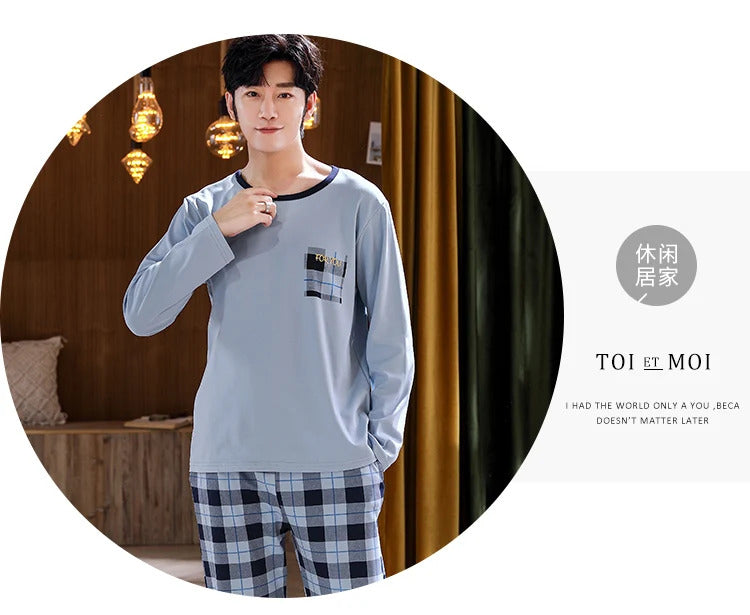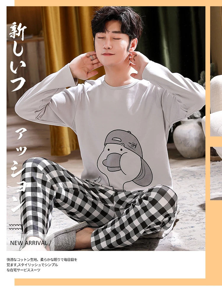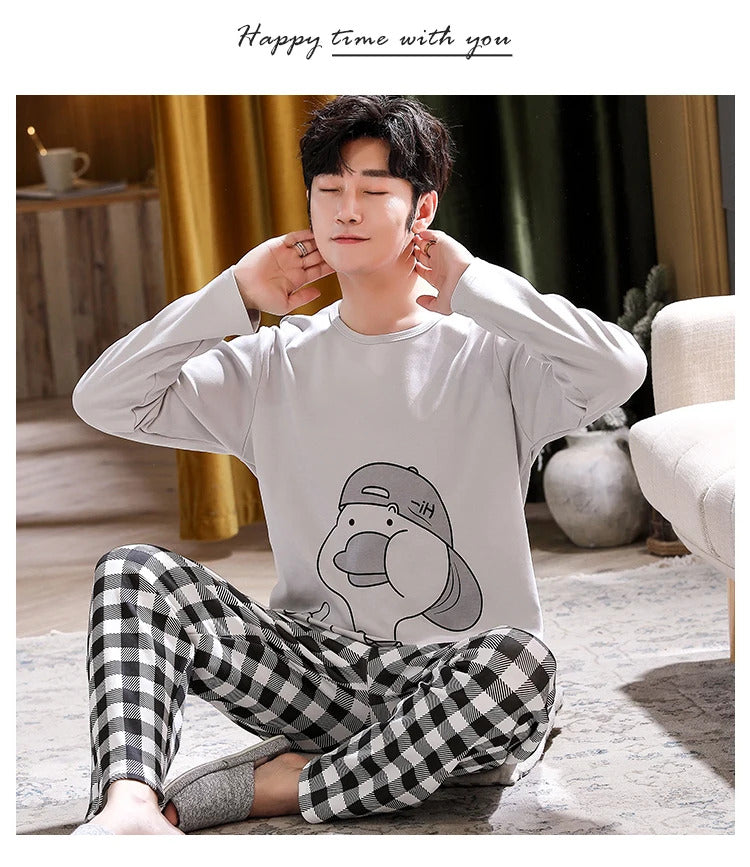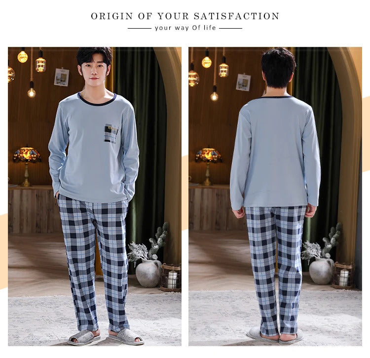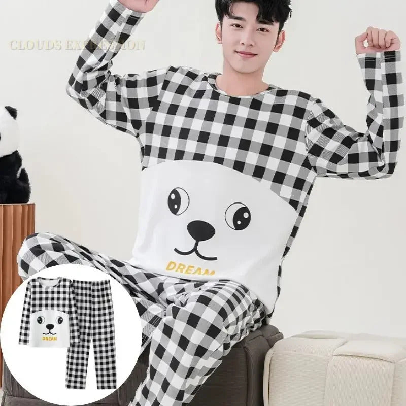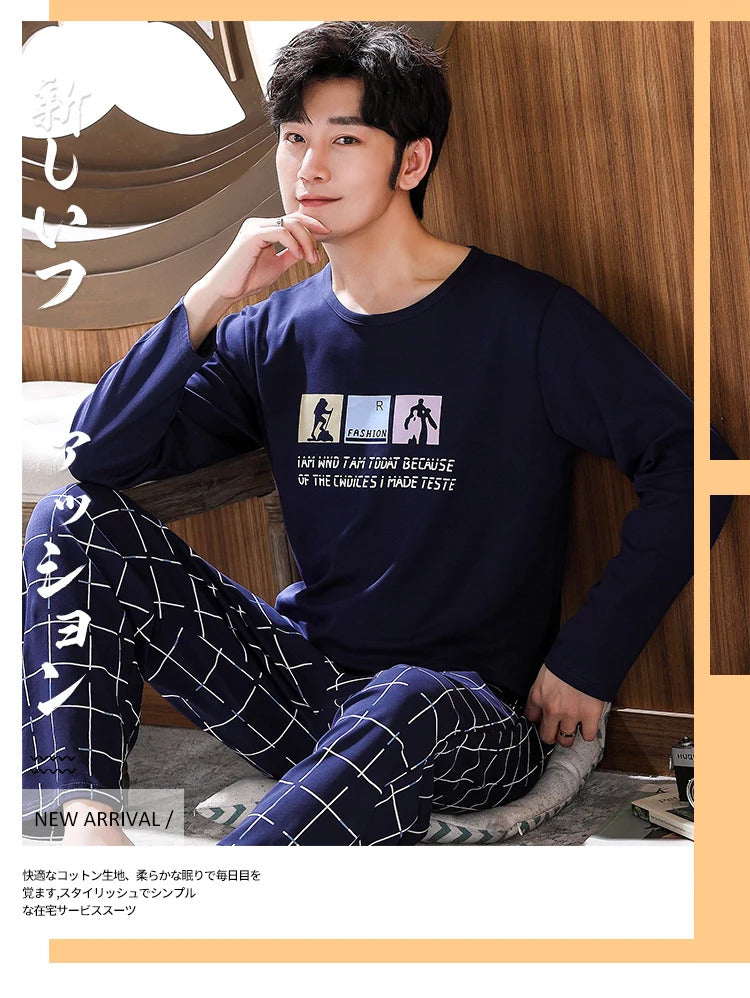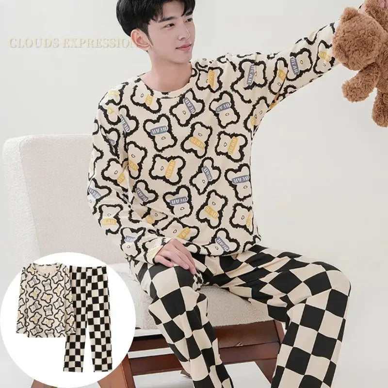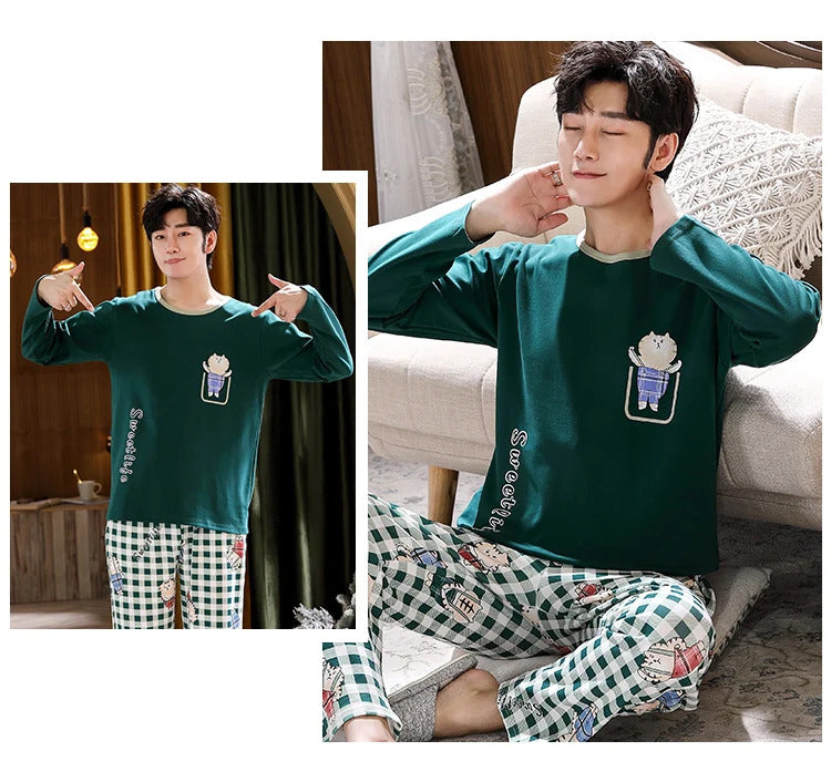 睡衣男Autumn Winter Men's Cotton Pajamas Letter Plaid Sleepwear Cartoon Pajama Sets Casual Sleep&Lounge Pyjamas Plus Size 4XL Pijama