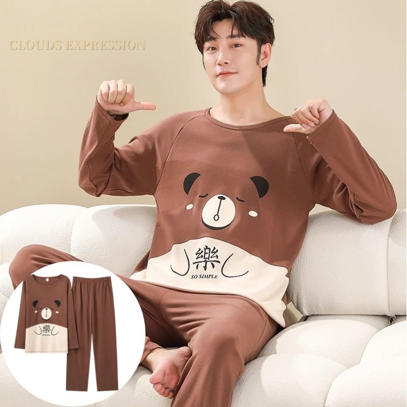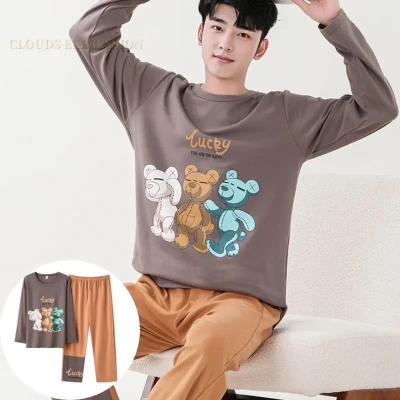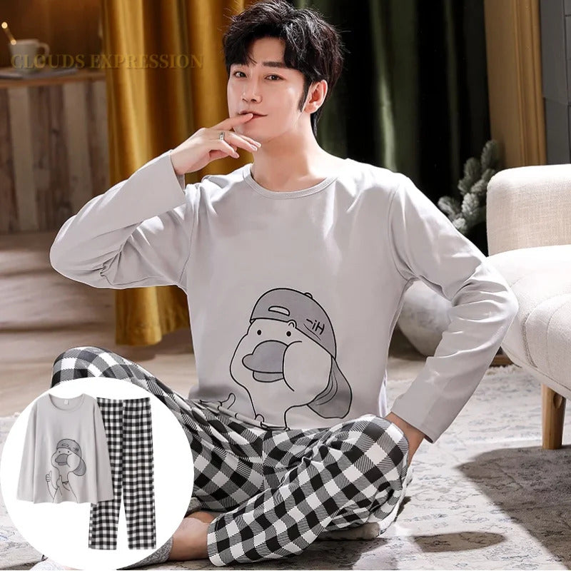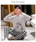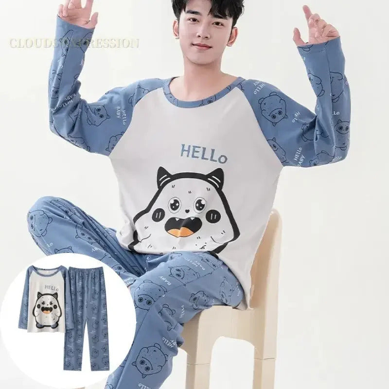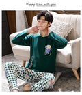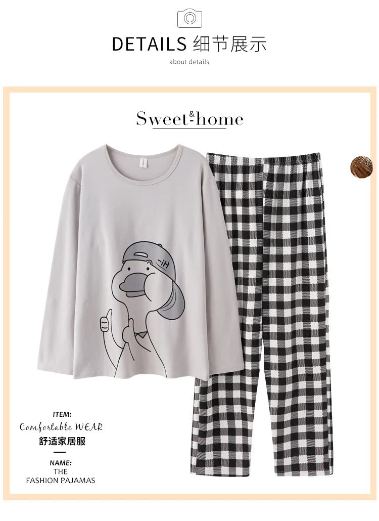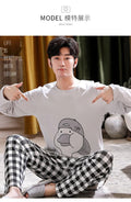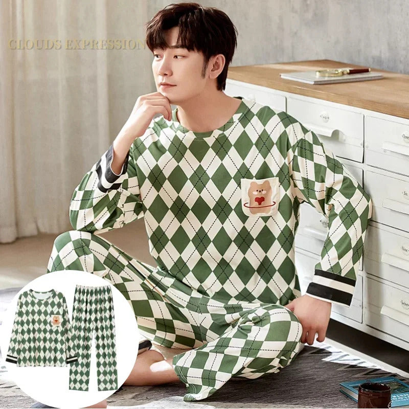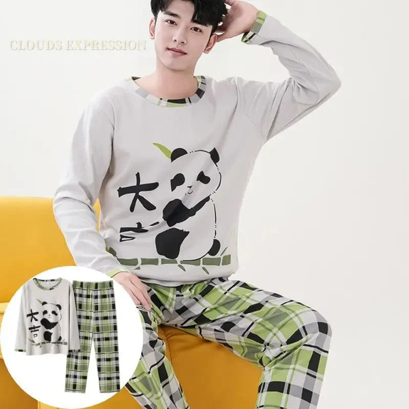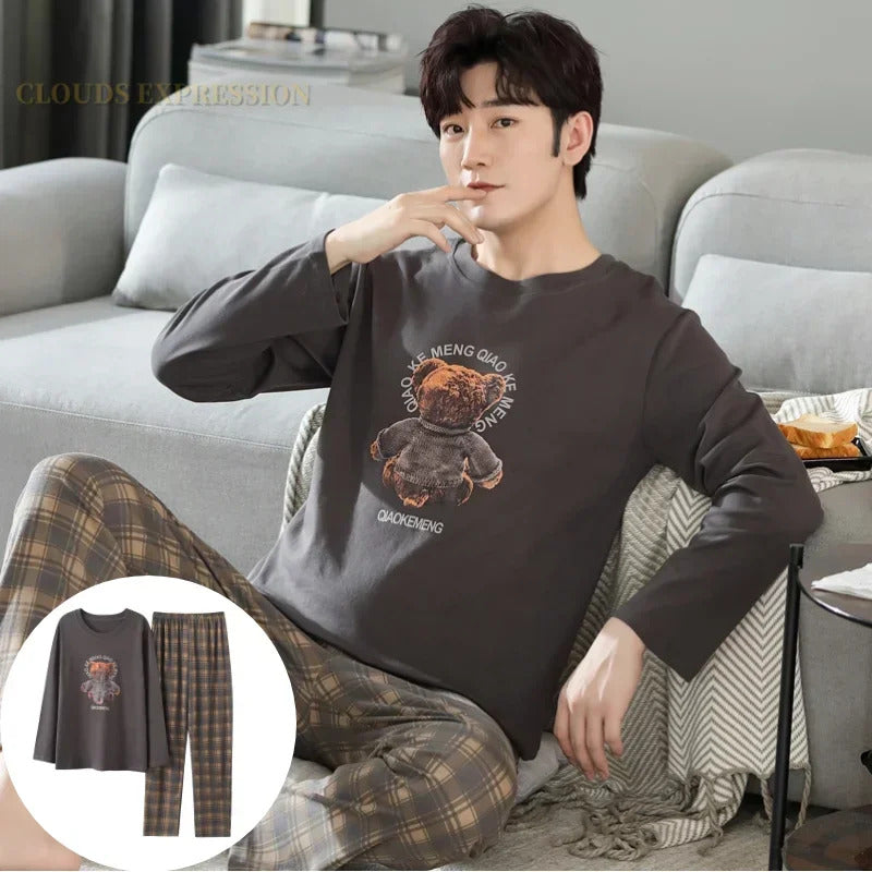睡衣男Autumn Winter Men's Cotton Pajamas Letter Plaid Sleepwear Cartoon Pajama Sets Casual Sleep&Lounge Pyjamas Plus Size 4XL Pijama