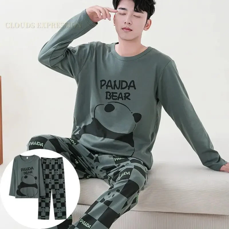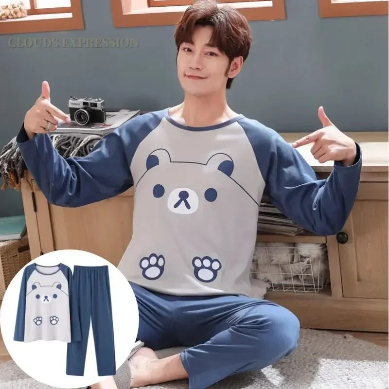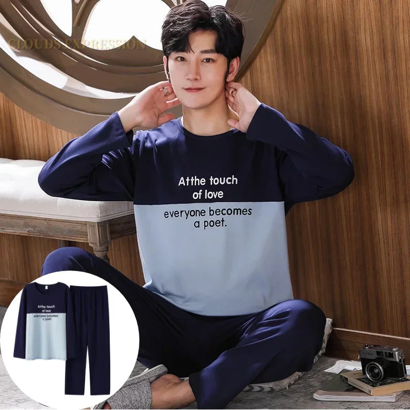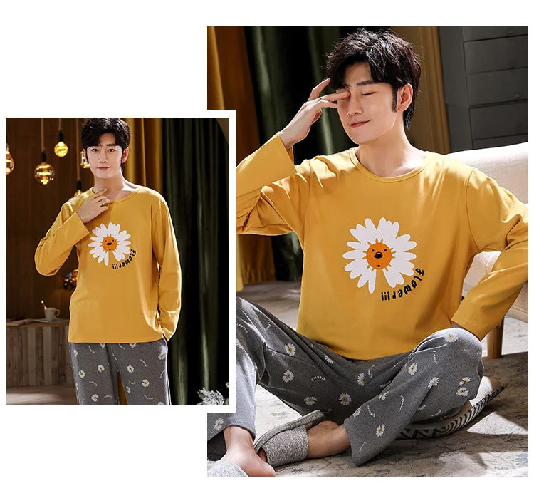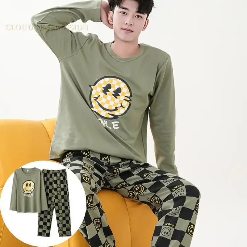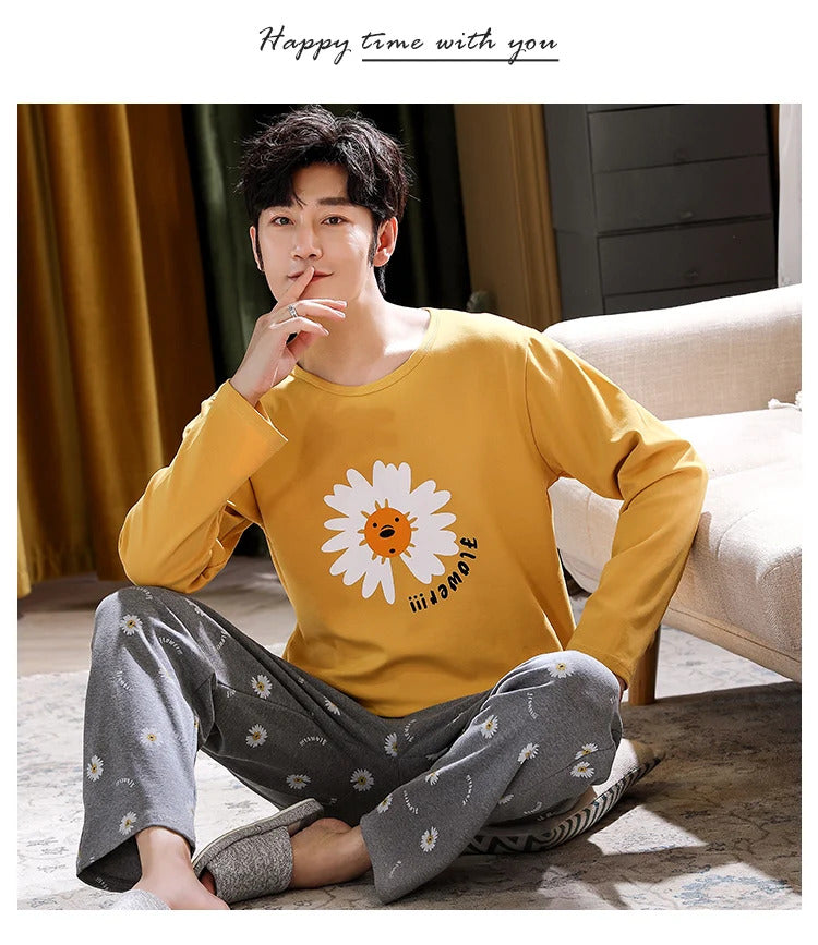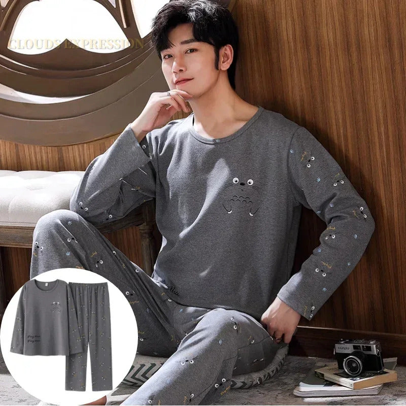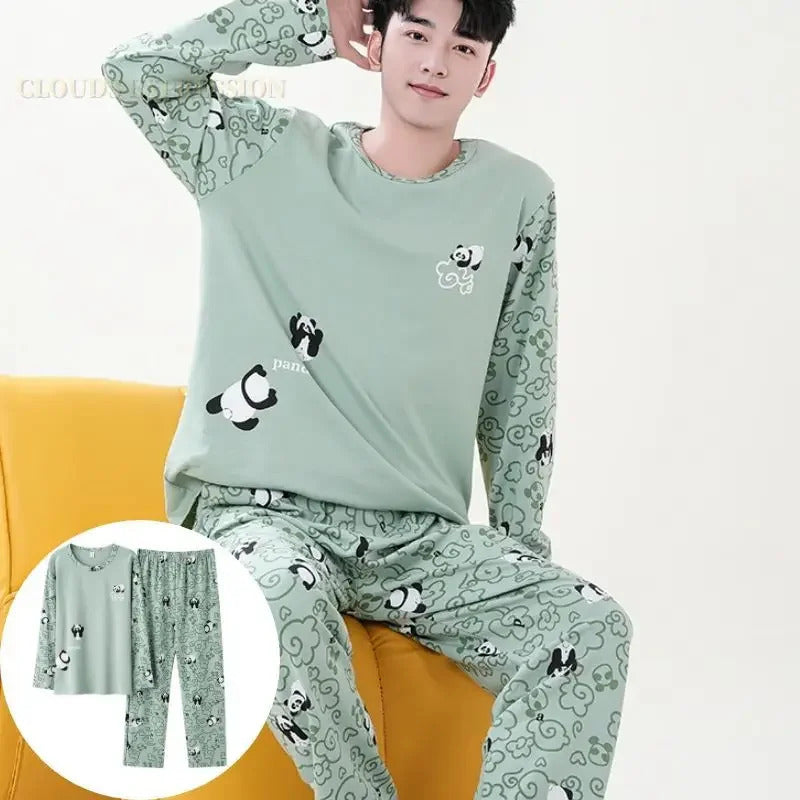 睡衣男Autumn Winter Men's Cotton Pajamas Letter Plaid Sleepwear Cartoon Pajama Sets Casual Sleep&Lounge Pyjamas Plus Size 4XL Pijama