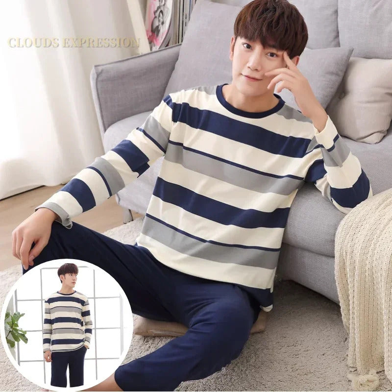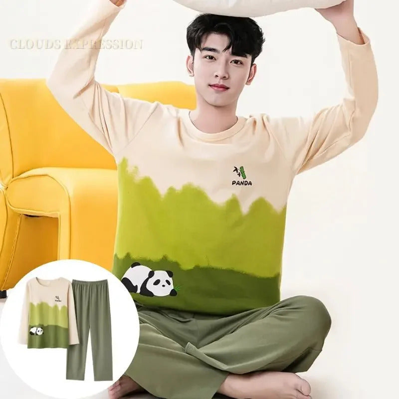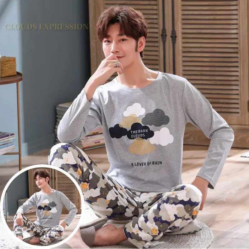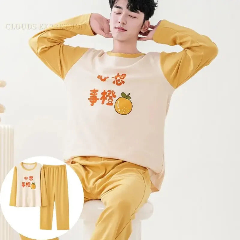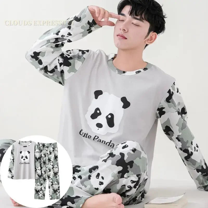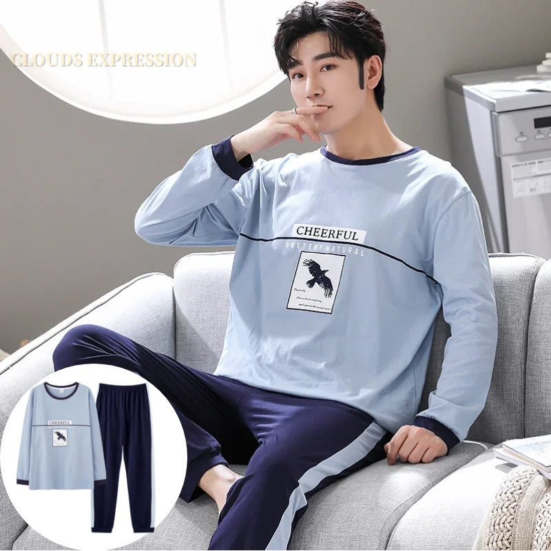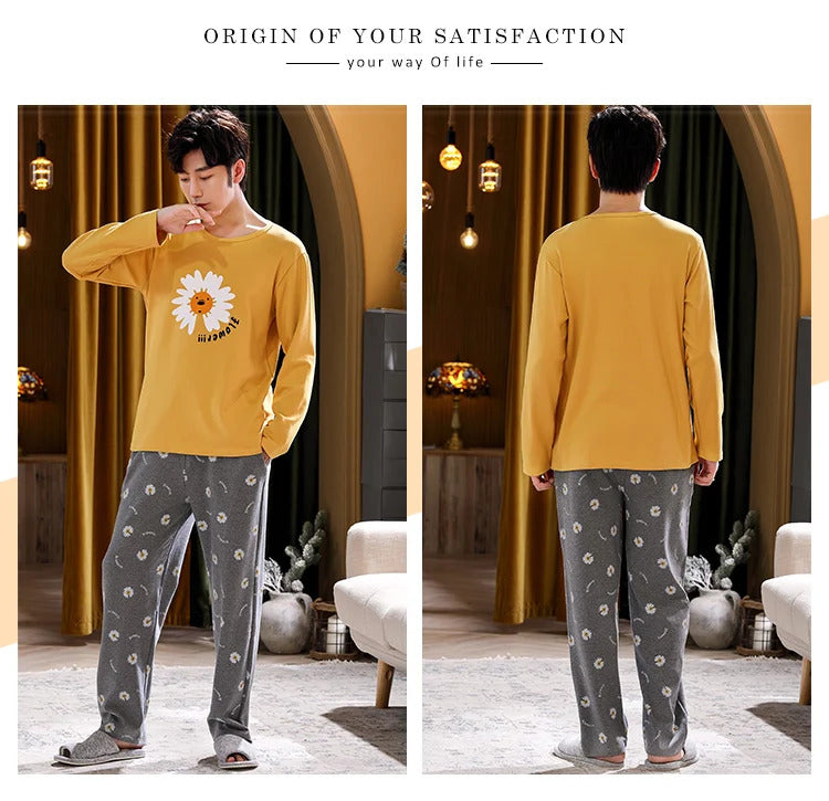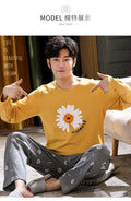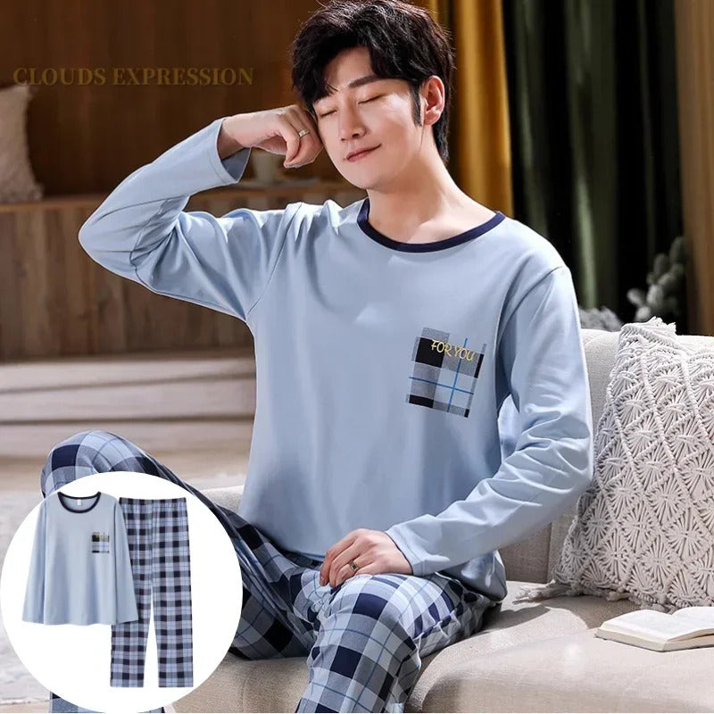 睡衣男Autumn Winter Men's Cotton Pajamas Letter Plaid Sleepwear Cartoon Pajama Sets Casual Sleep&Lounge Pyjamas Plus Size 4XL Pijama
