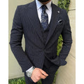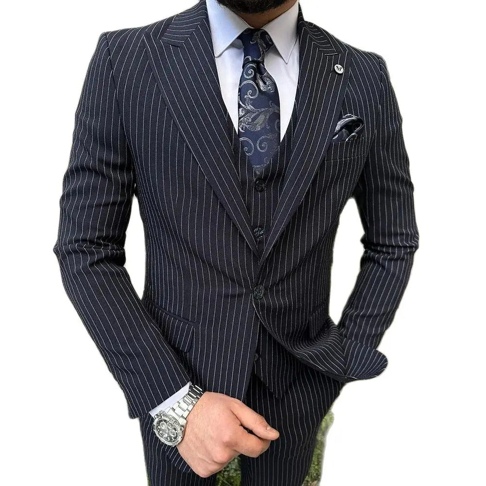 礼服男Black Pinstripe Men's Suits Single Breasted Peak Lapel Skinny Male Clothing Luxury Business 3 Piece Jacket Pants Vest Outfits