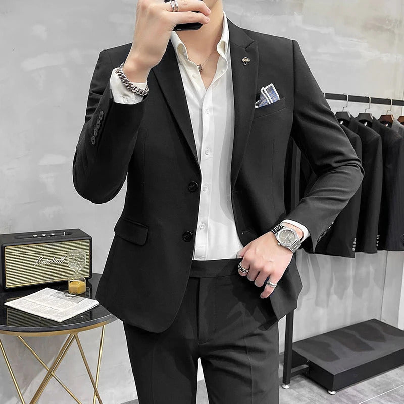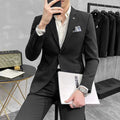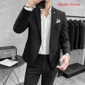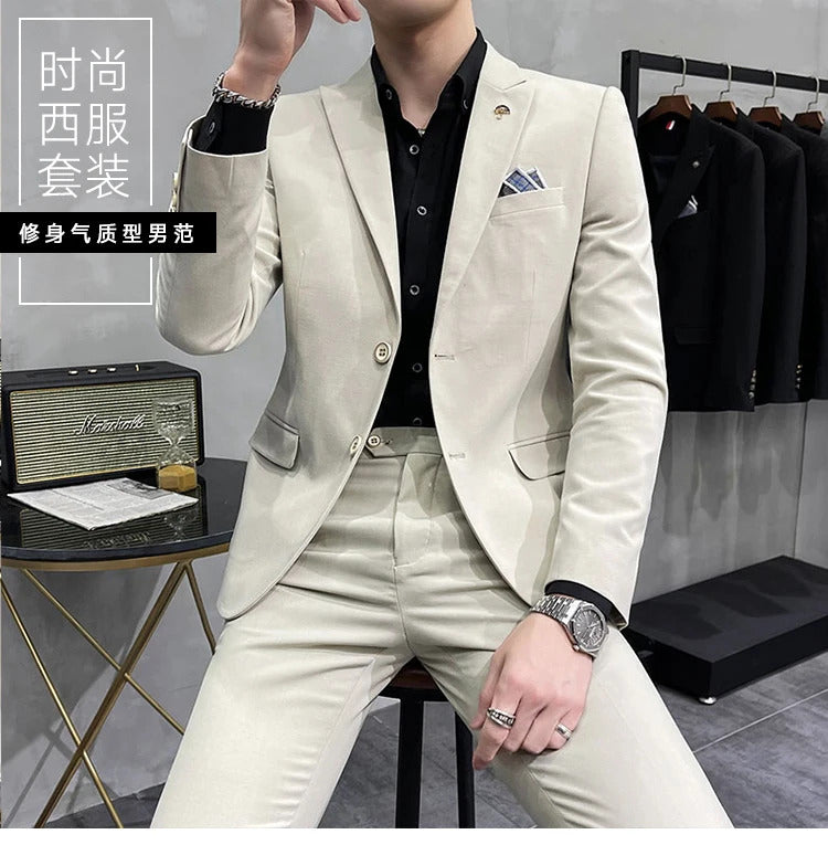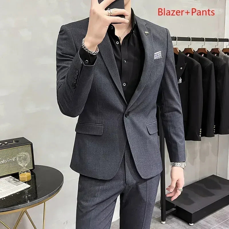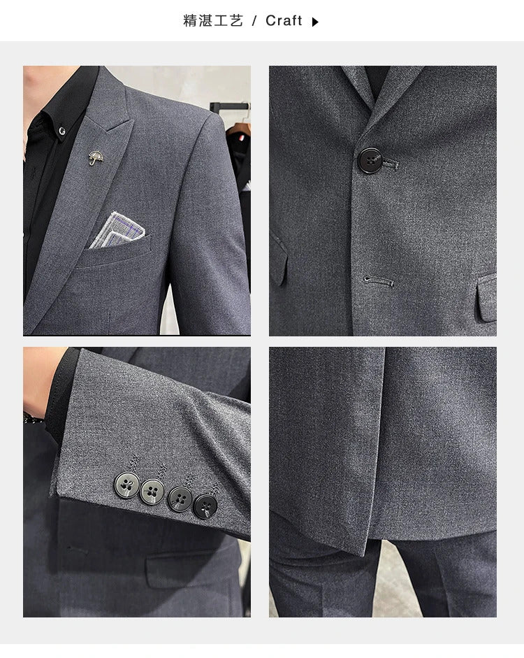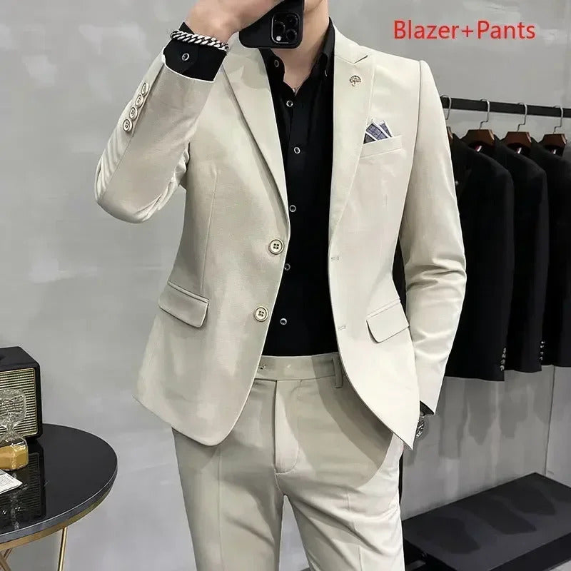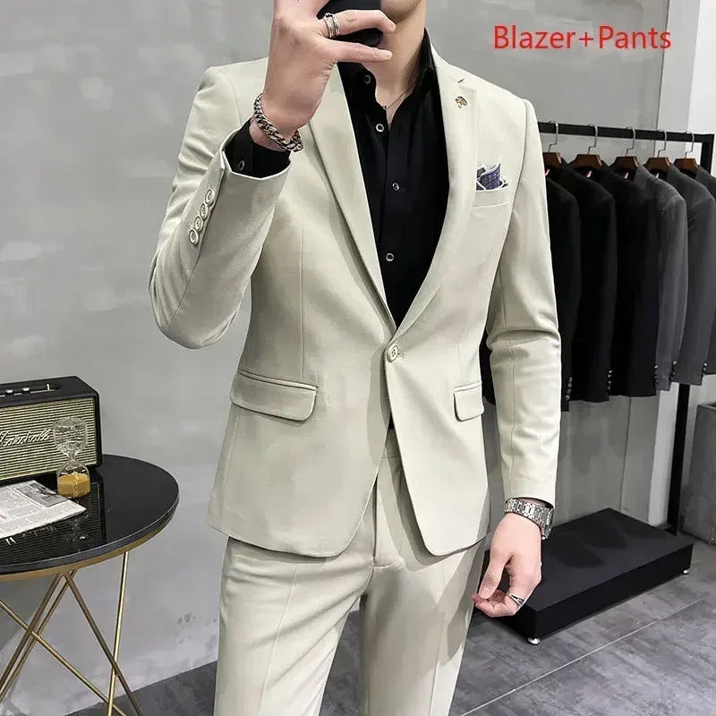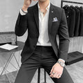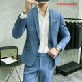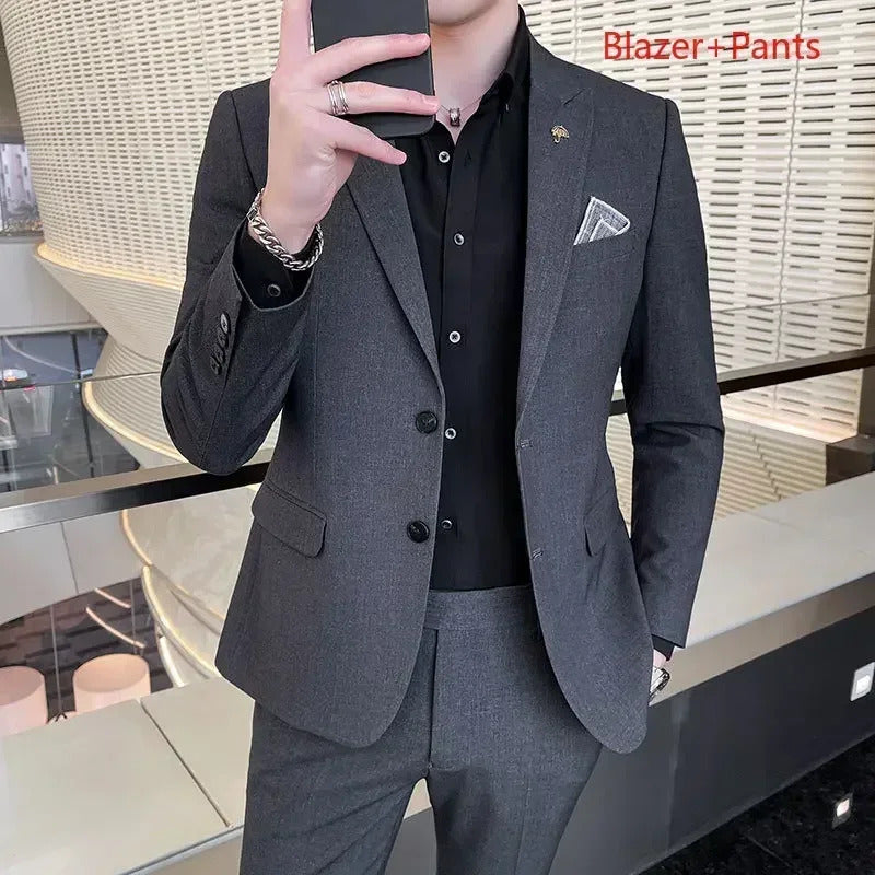 商务装男( Blazer + Pants ) High End Brand Plaid Men's Casual Formal Office Business Suit Groom Wedding Dress Slim Suit Jacket Trousers