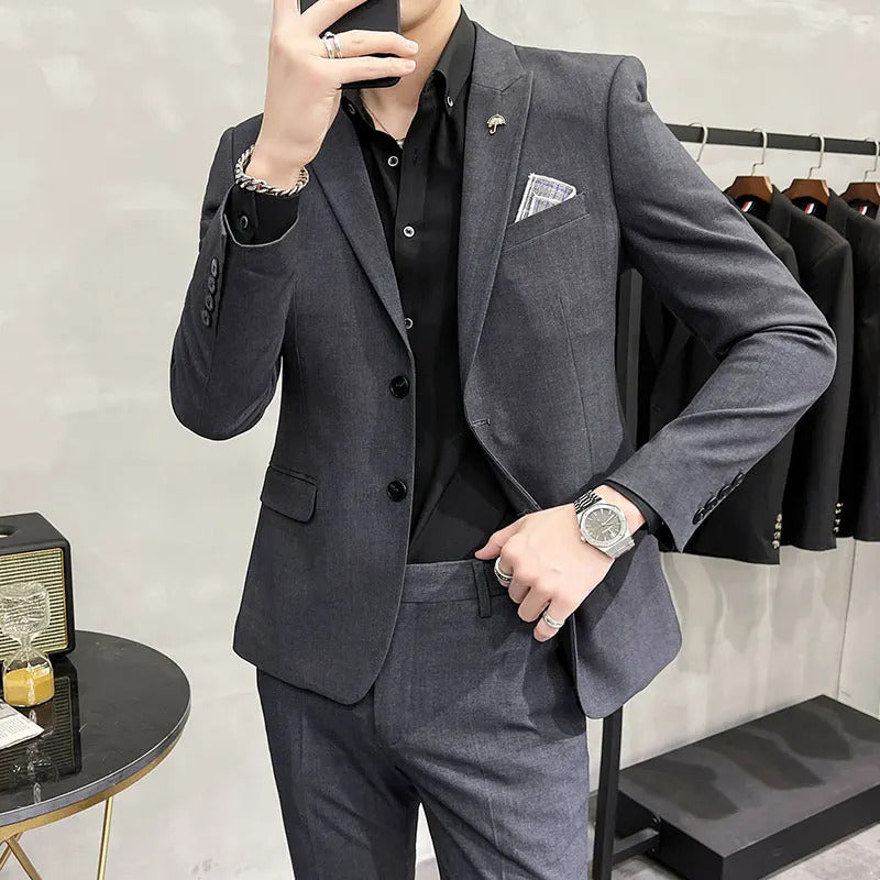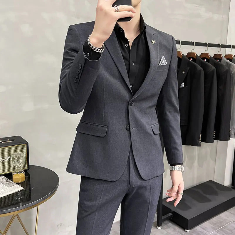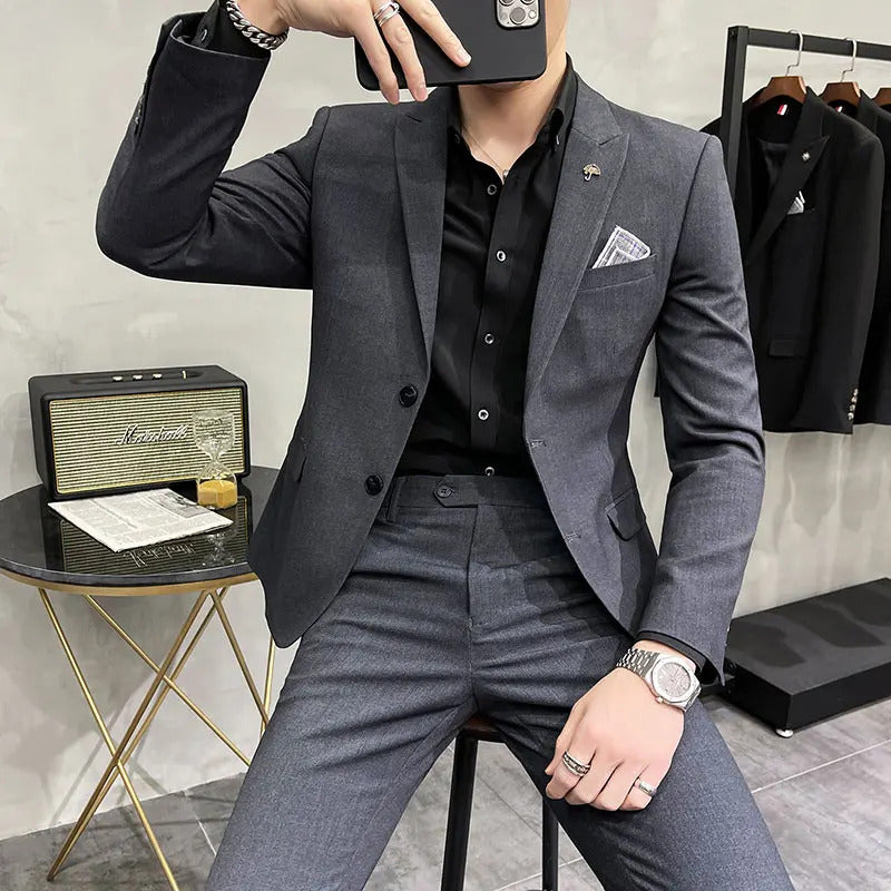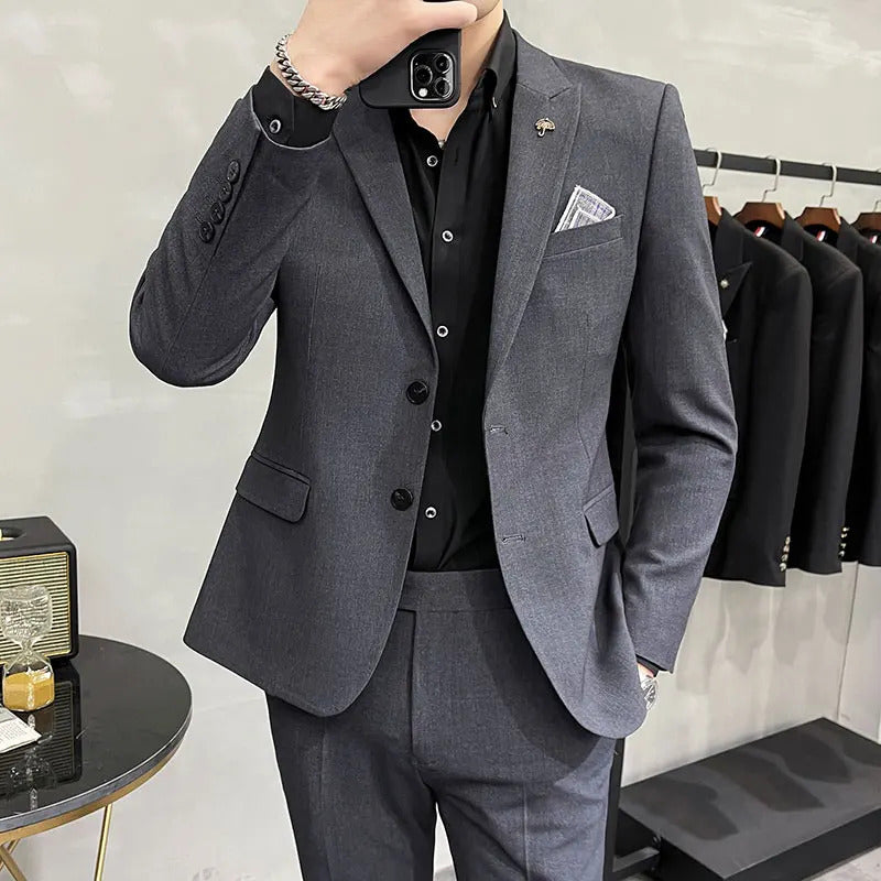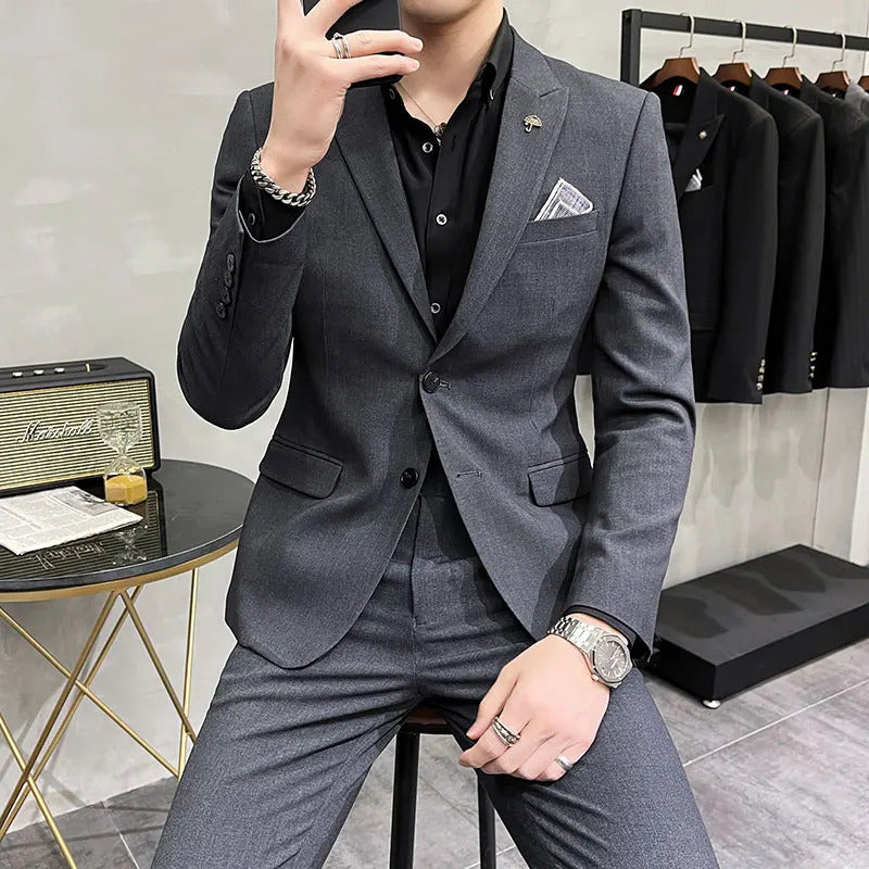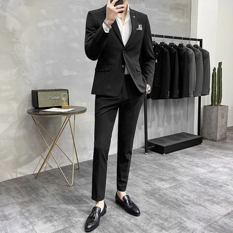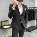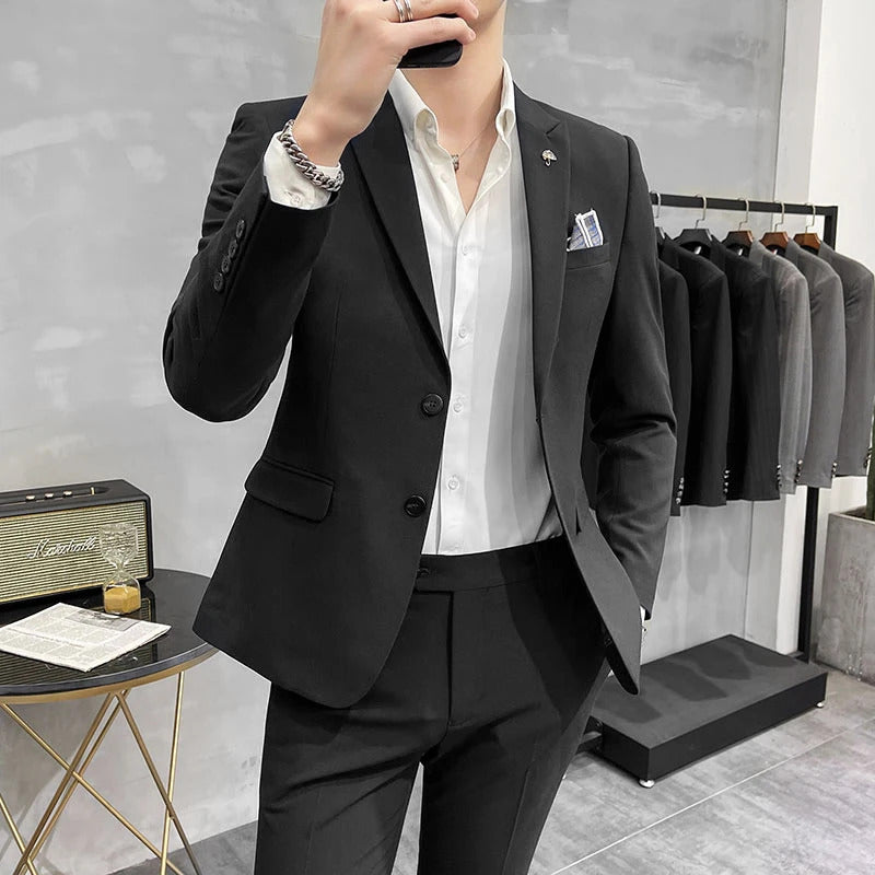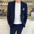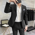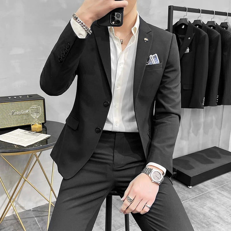 商务装男( Blazer + Pants ) High End Brand Plaid Men's Casual Formal Office Business Suit Groom Wedding Dress Slim Suit Jacket Trousers