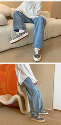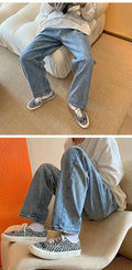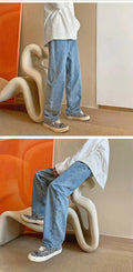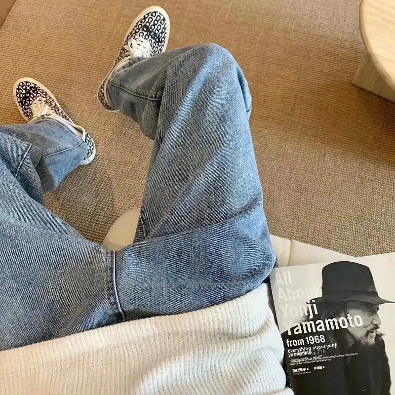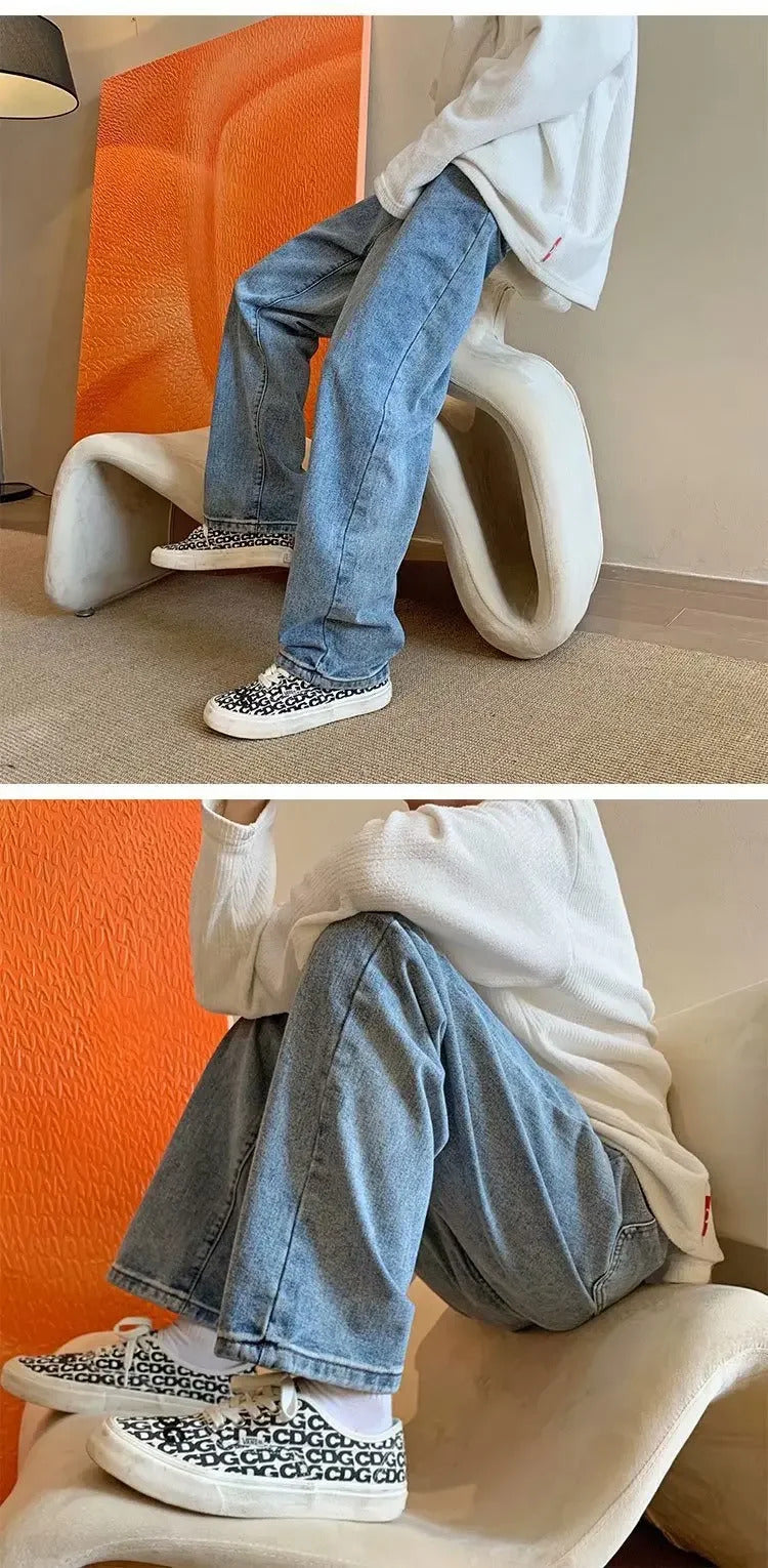 牛仔裤男Blue Jeans Men's Summer Thin 2022 New Design Sensibility High-Waisted Loose-Fit Straight-Leg Wide-Leg Dragging Pants Casual Scen