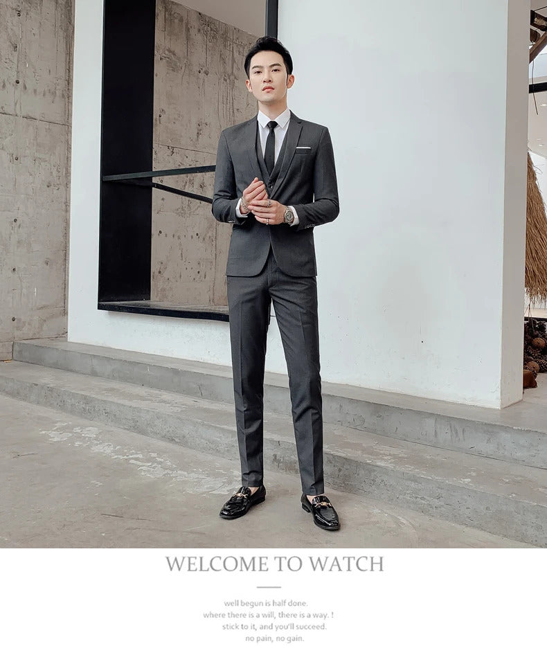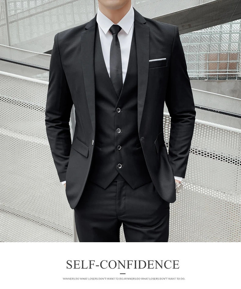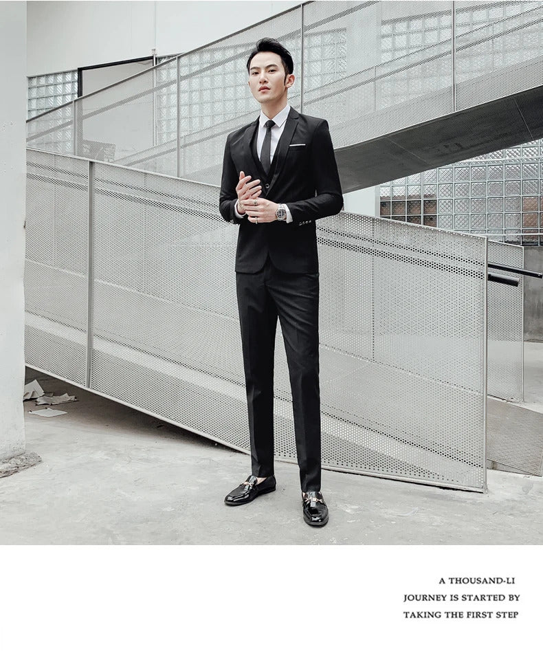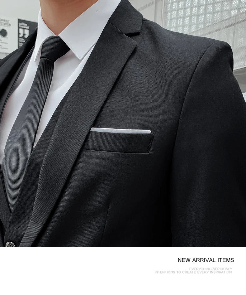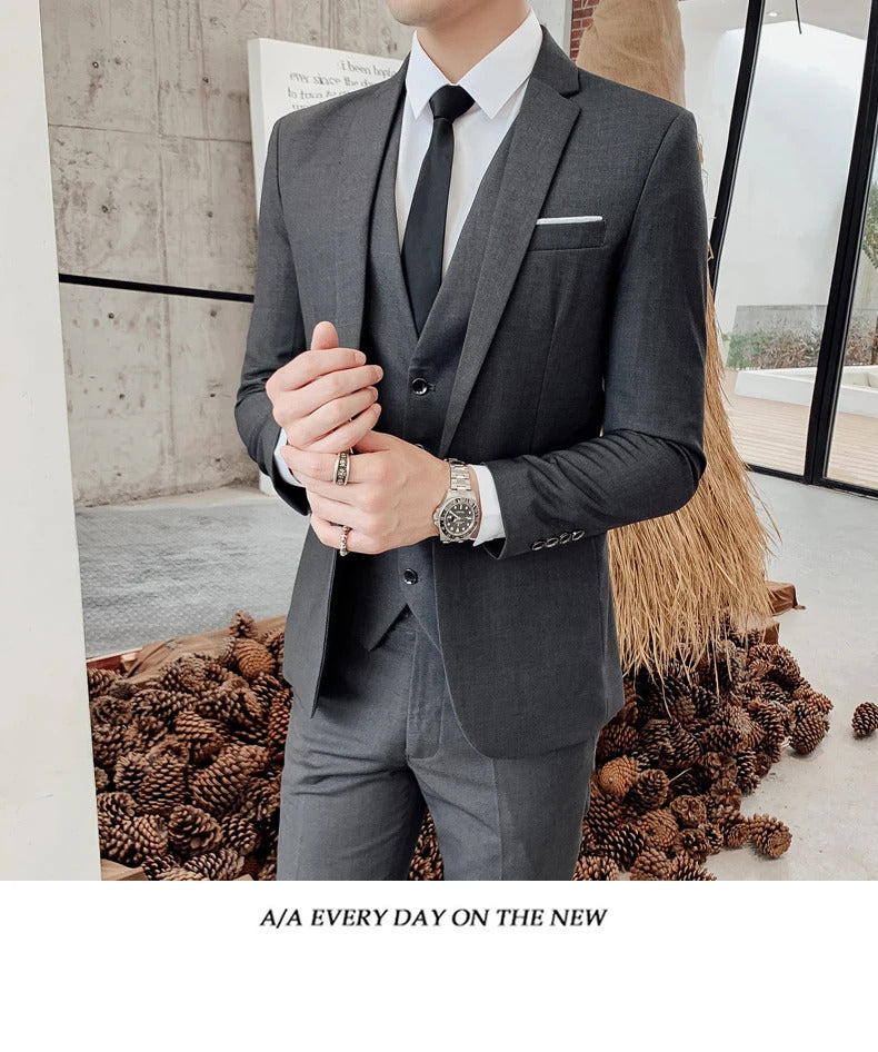 商务装男Boutique S-5XL (suit + vest + trousers) Slim business elite party evening dress groomsmen British style men's three-piece suit