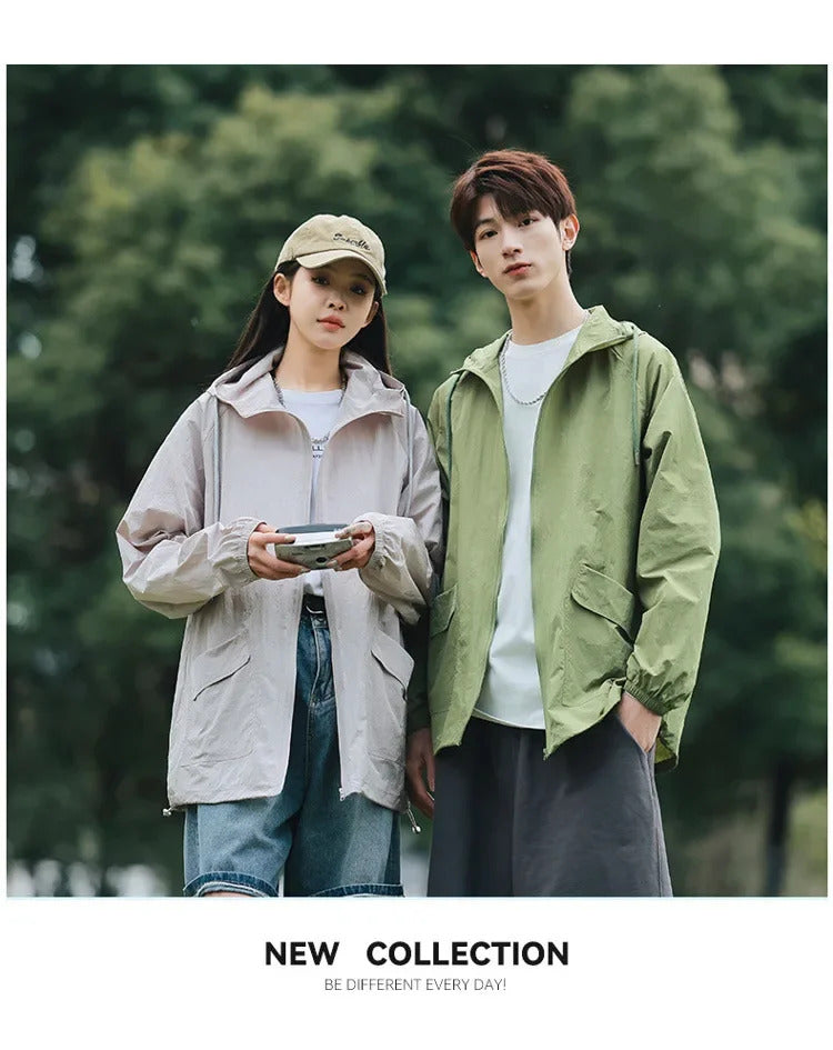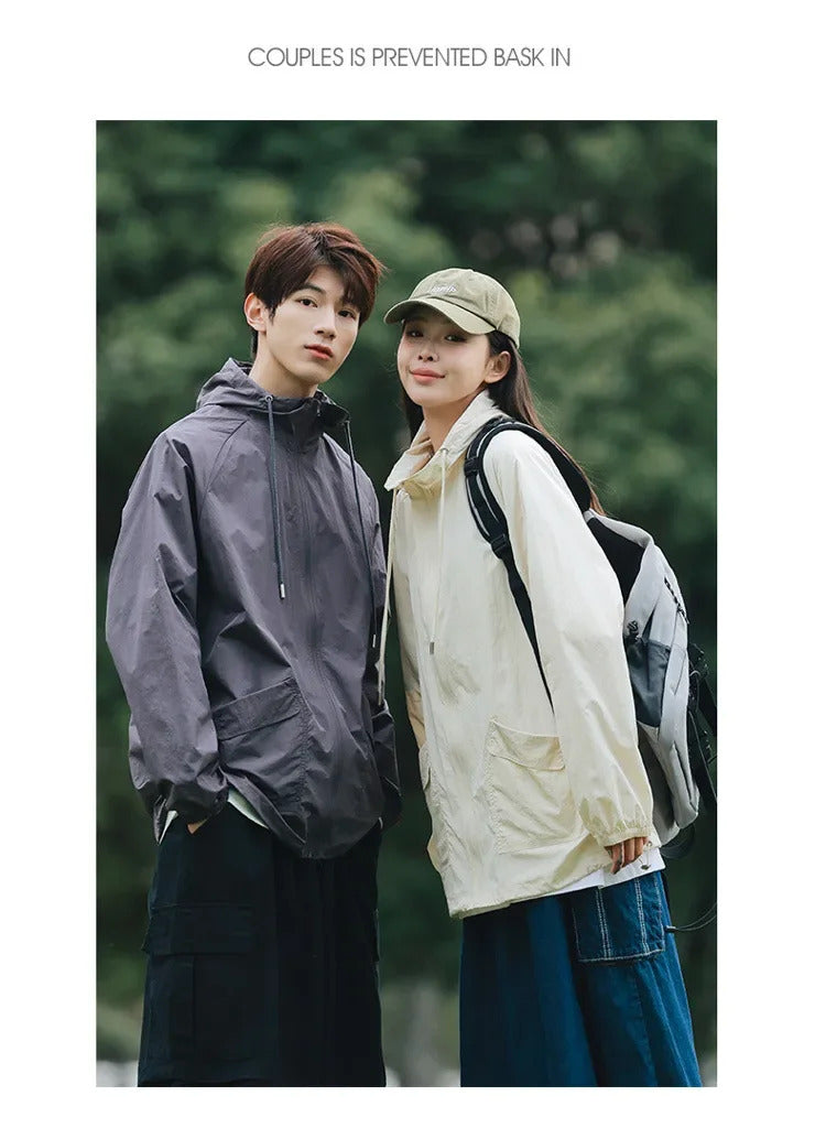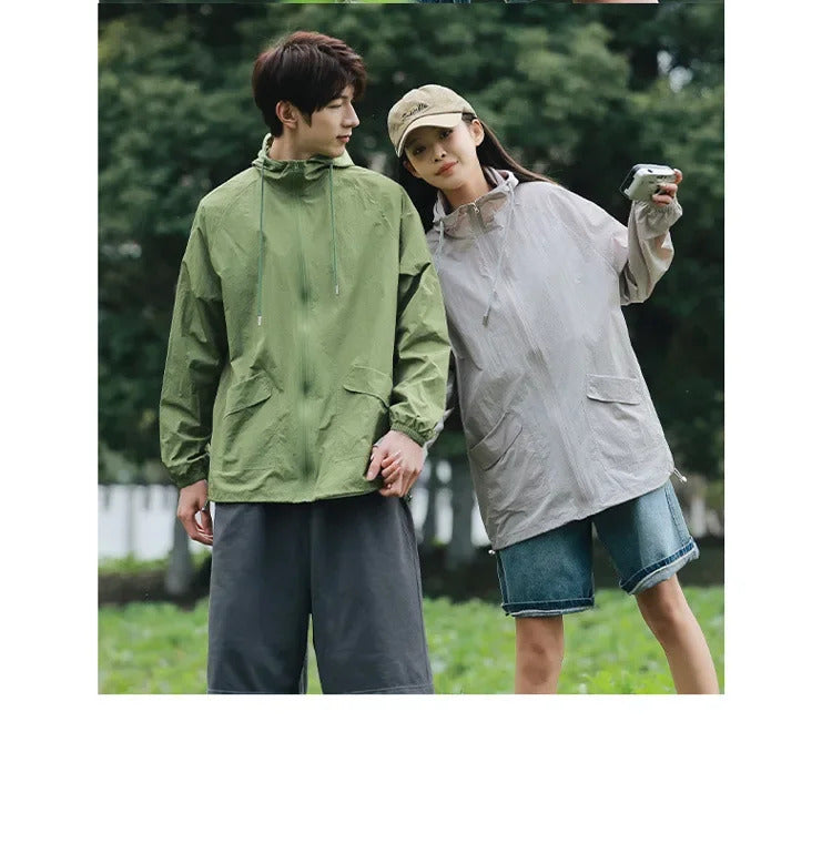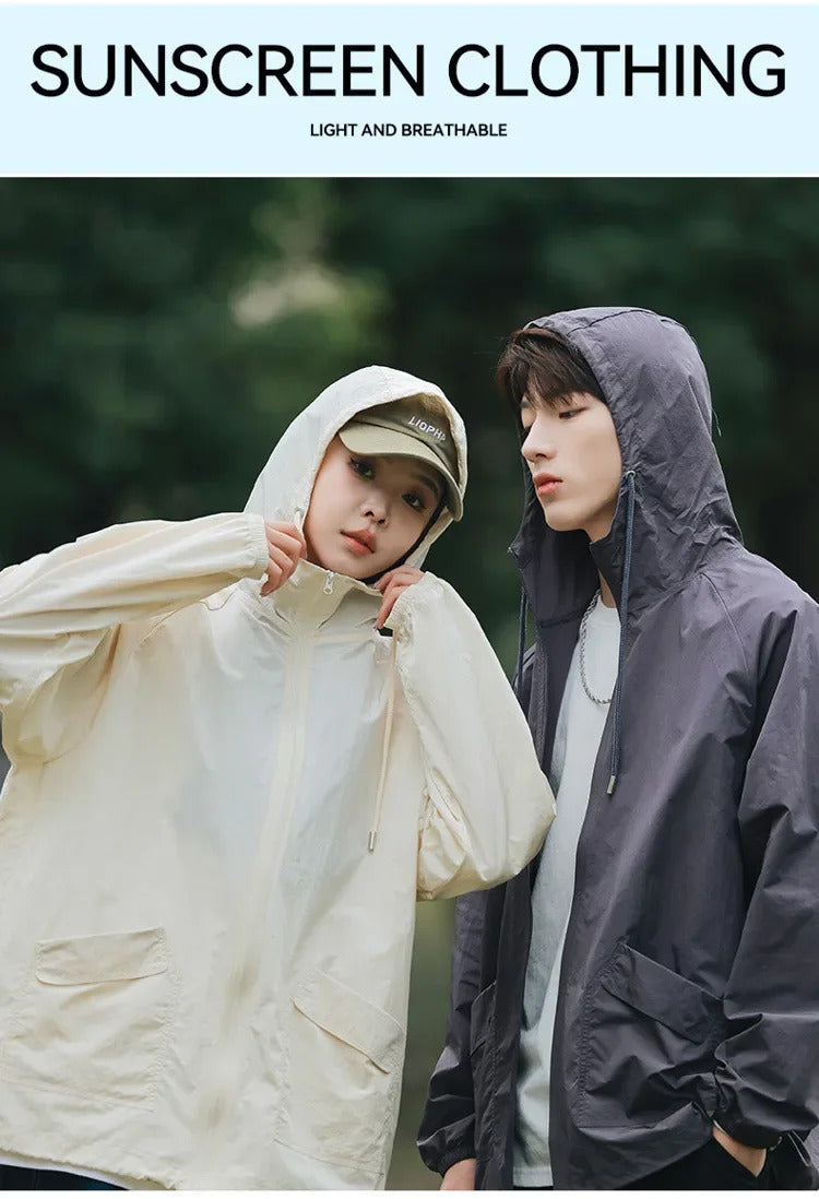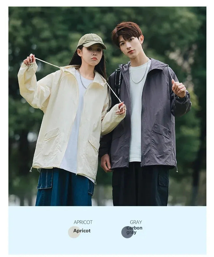 防晒衣男Breathable Quick-drying Anti-uv Thin Skinny Men's Women's Summer Sun-protective Clothes Vintage Versatile Loose-fit Sunscreen
