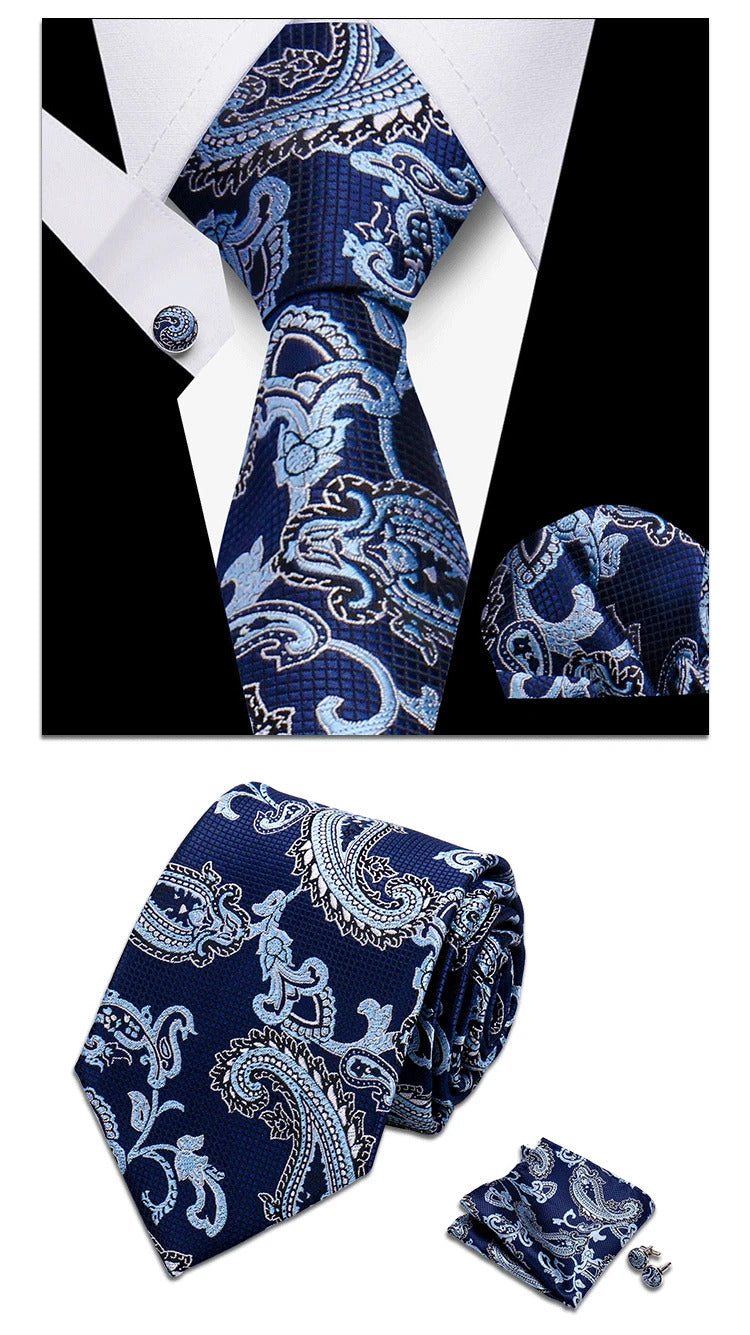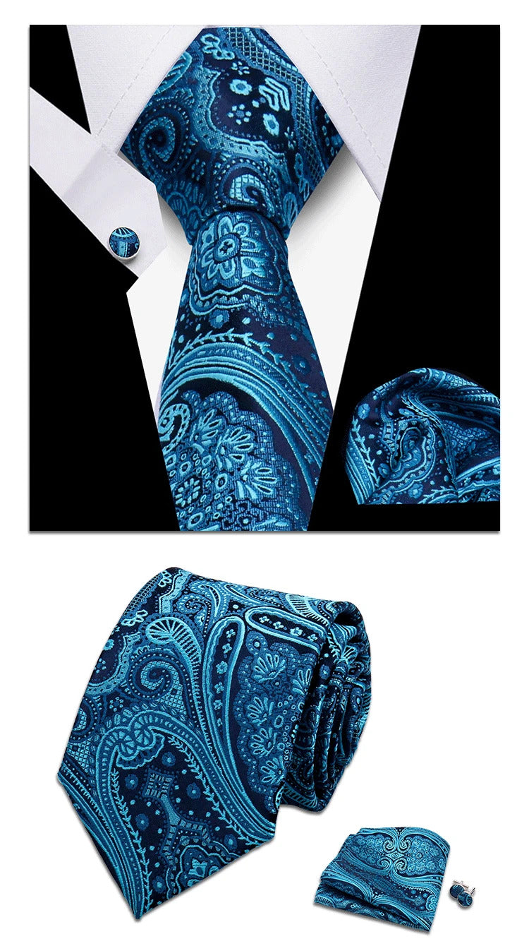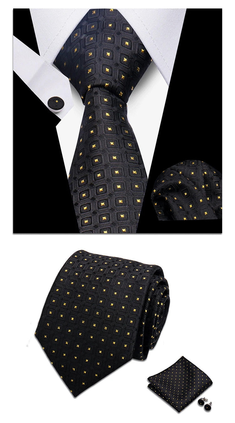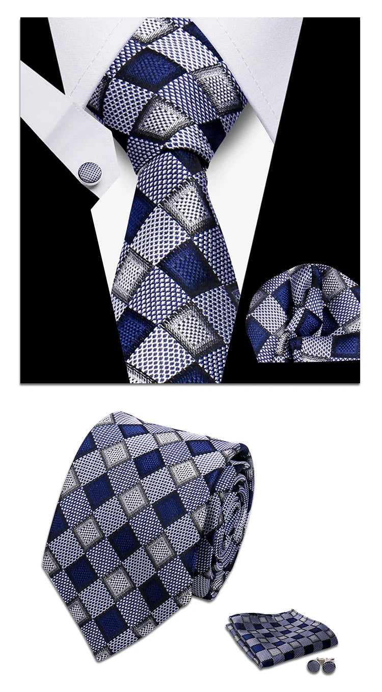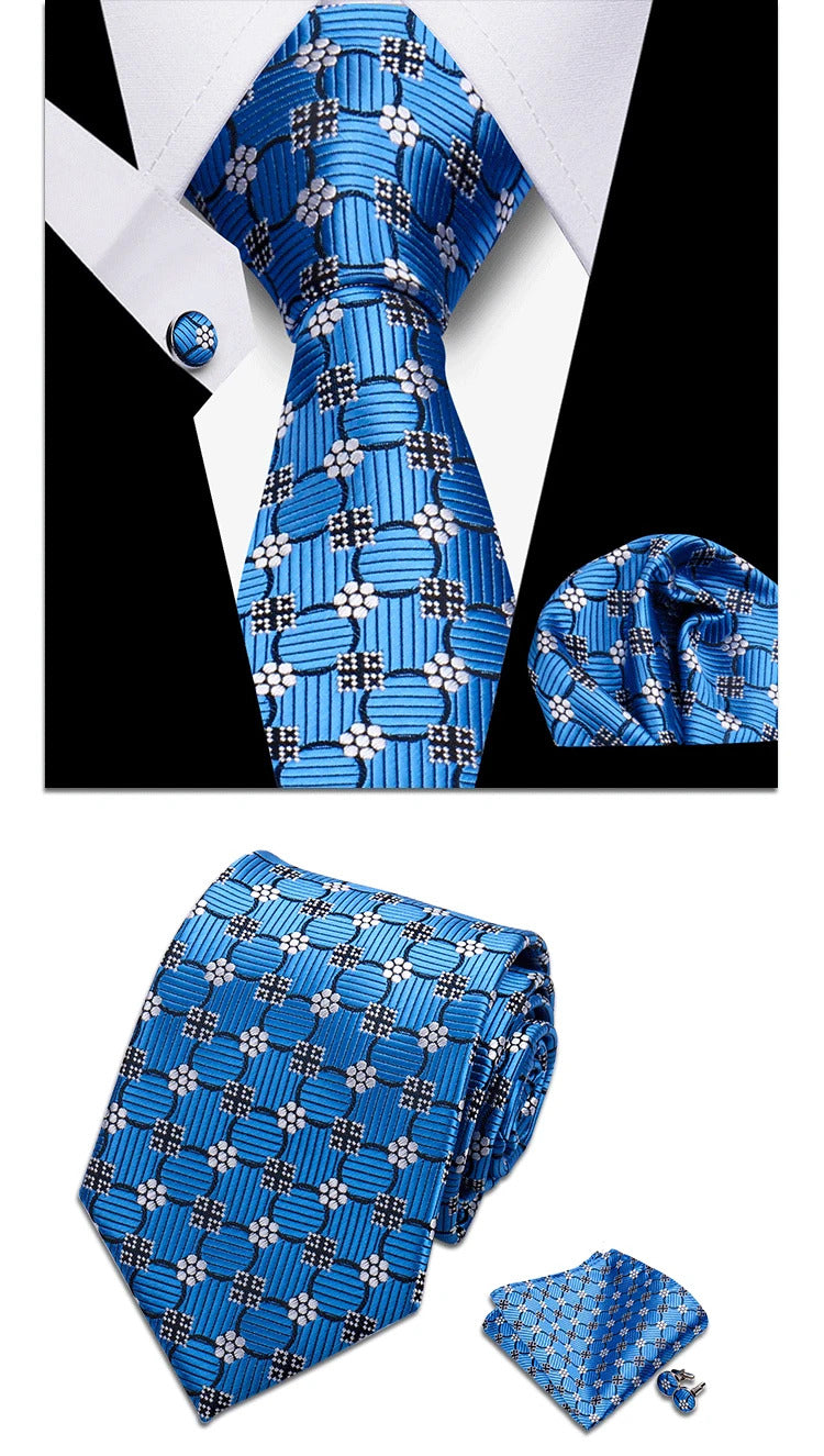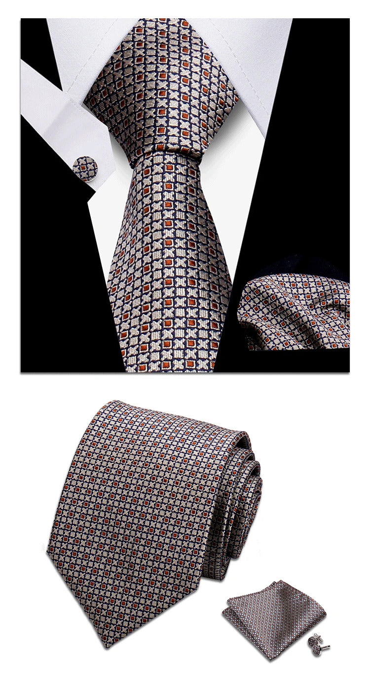 Men Tie Business Set 3pcs Neckties Classic Cufflink Handkerchief For Suit Wedding High Quality Brand Tie Set Formal Gravata Gift