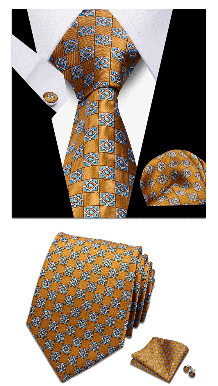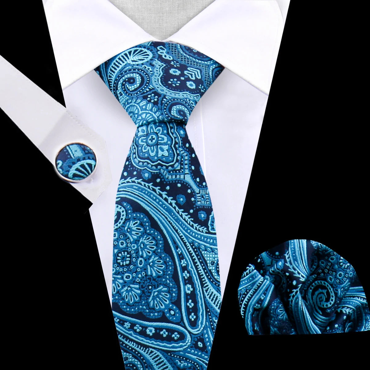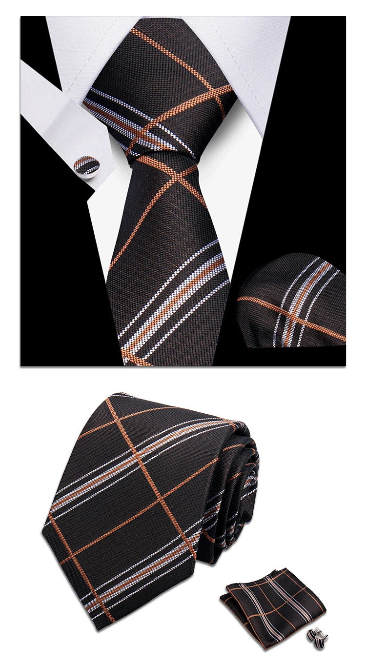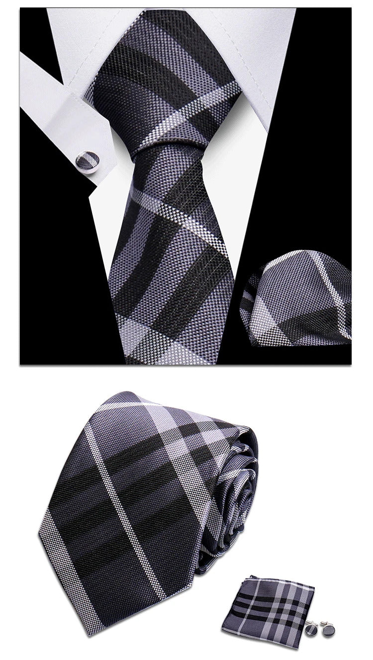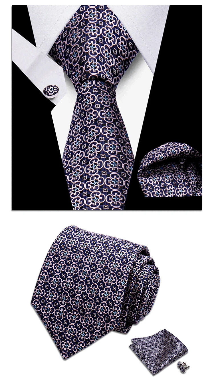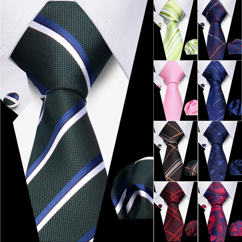 Men Tie Business Set 3pcs Neckties Classic Cufflink Handkerchief For Suit Wedding High Quality Brand Tie Set Formal Gravata Gift