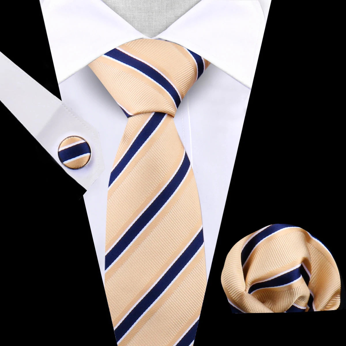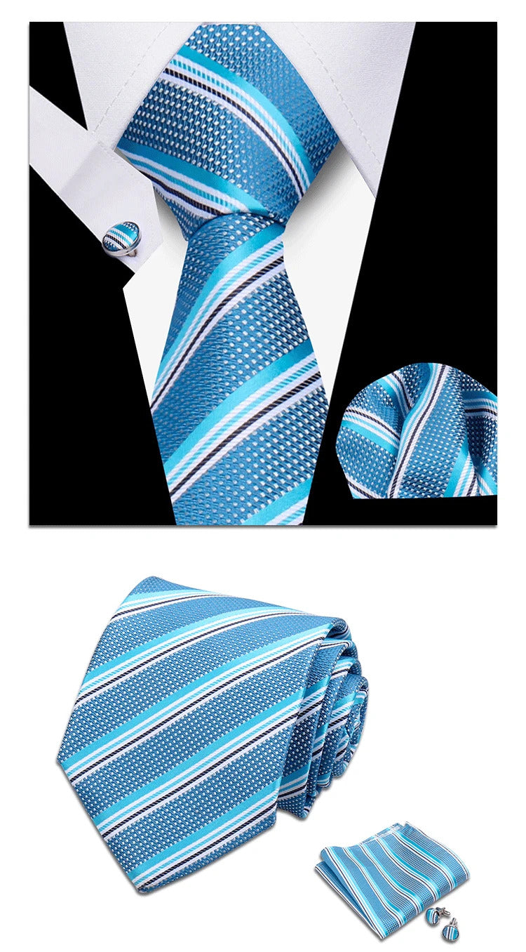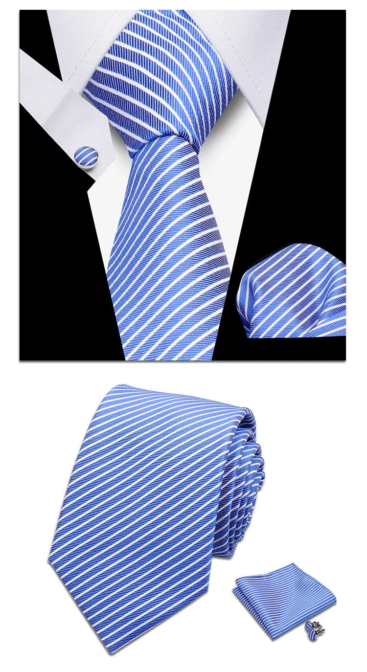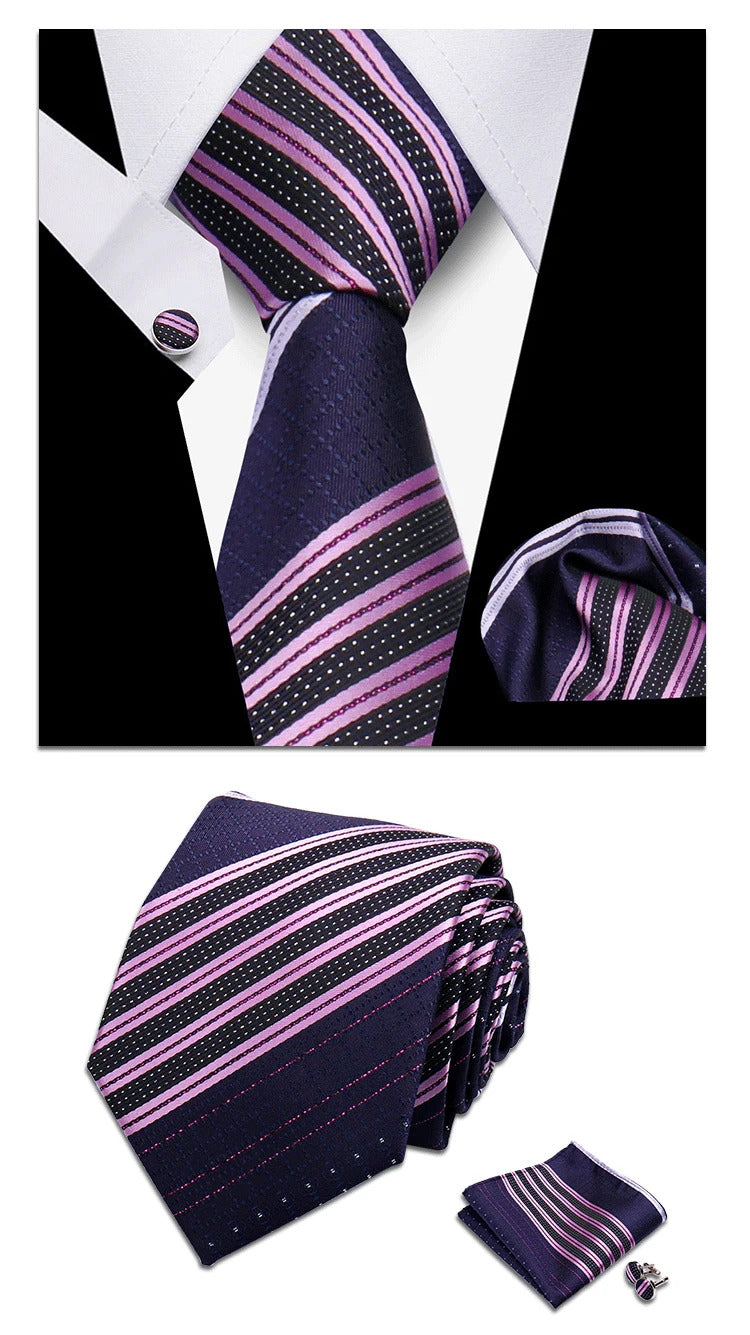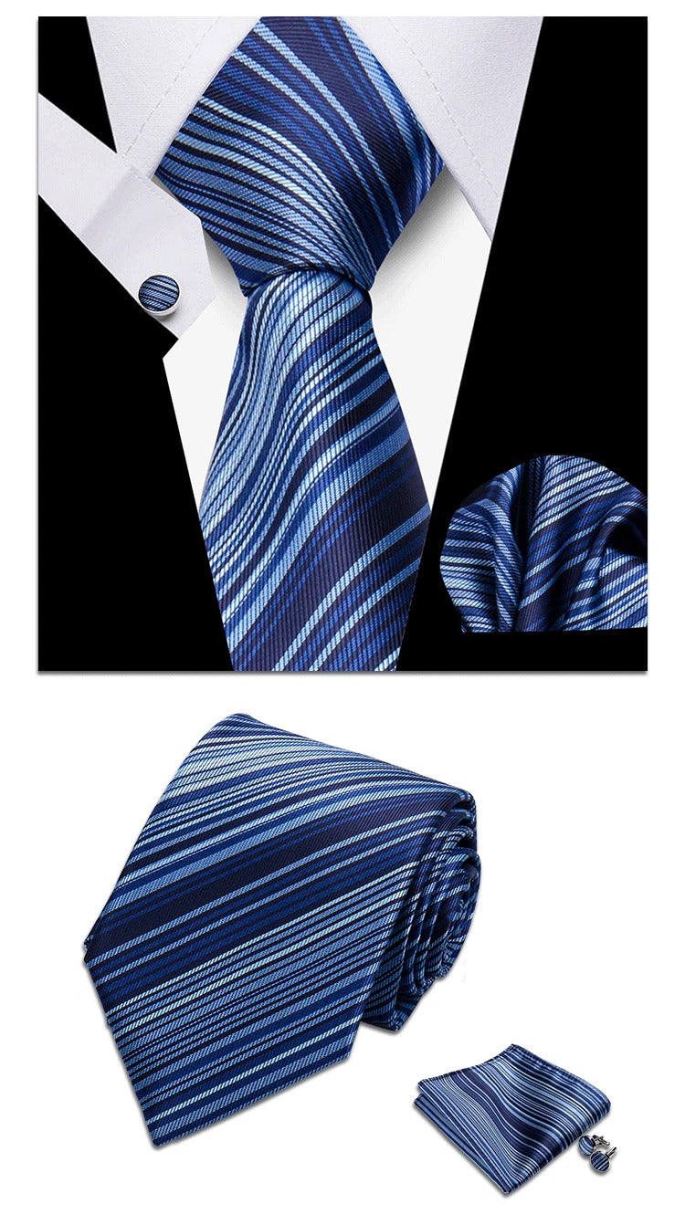 领带男Business Tie For Men Set Necktie Cufflink Classic Handkerchief Suit For Wedding High Quality Stripe Tie Set Formal Gravata Gift