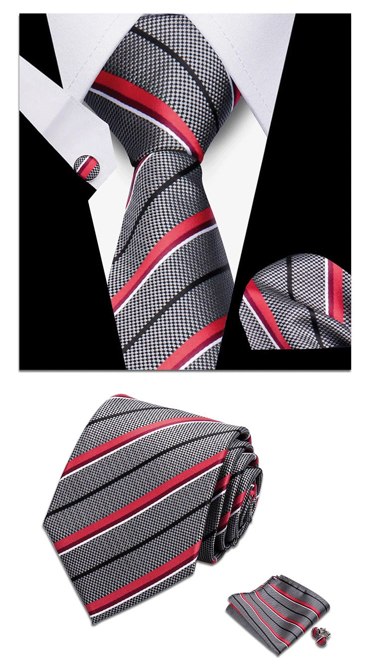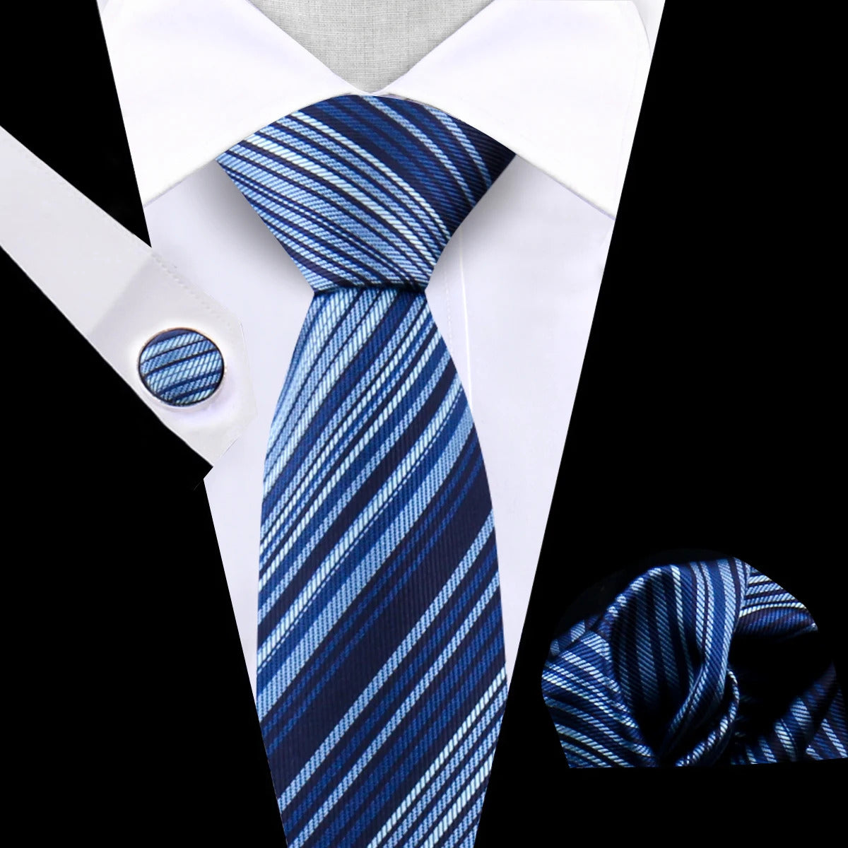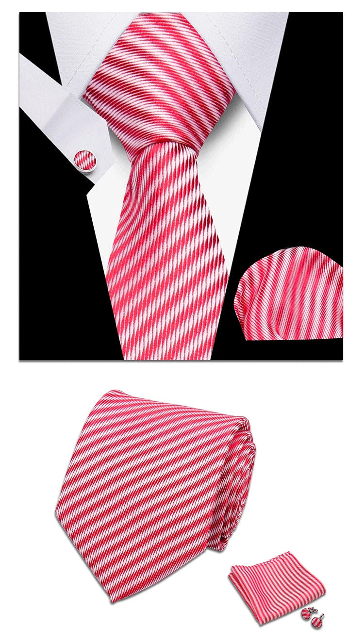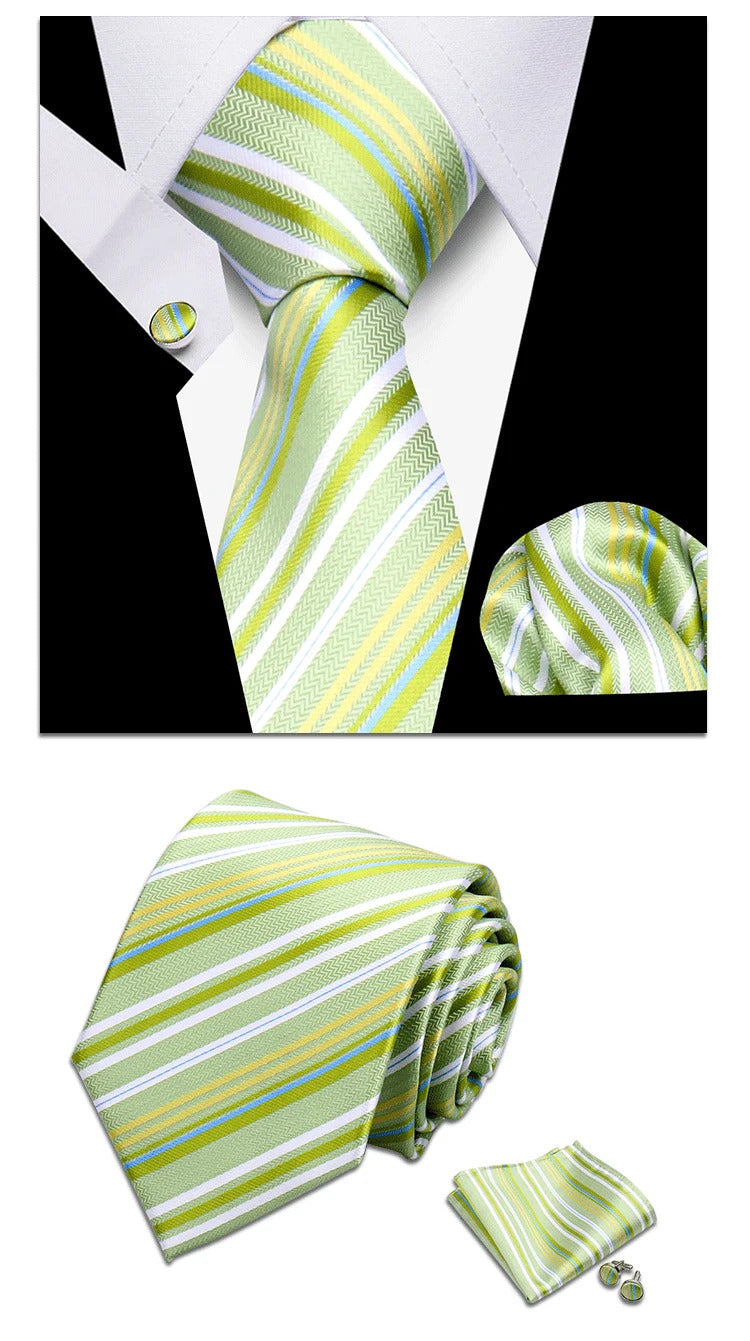 领带男Business Tie For Men Set Necktie Cufflink Classic Handkerchief Suit For Wedding High Quality Stripe Tie Set Formal Gravata Gift
