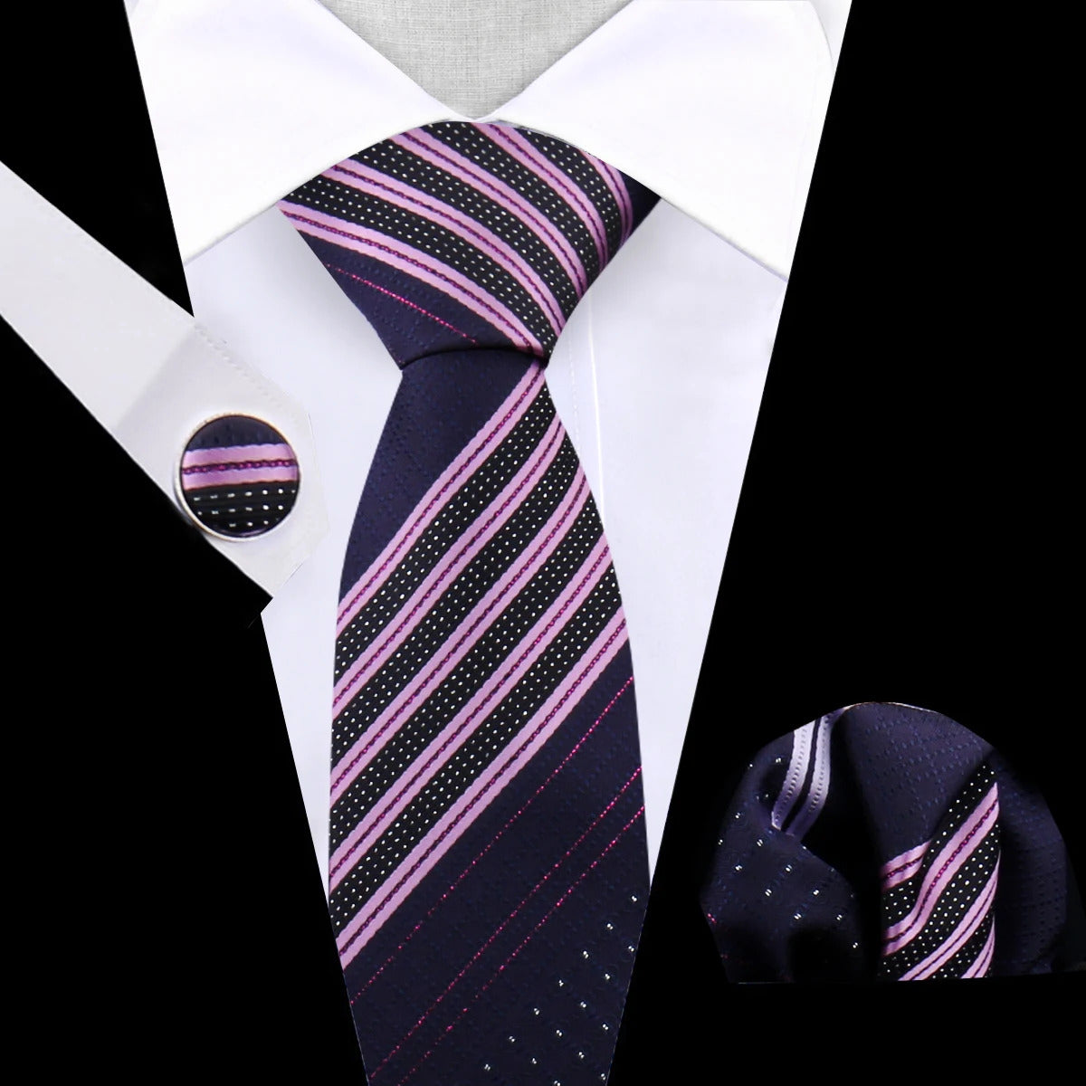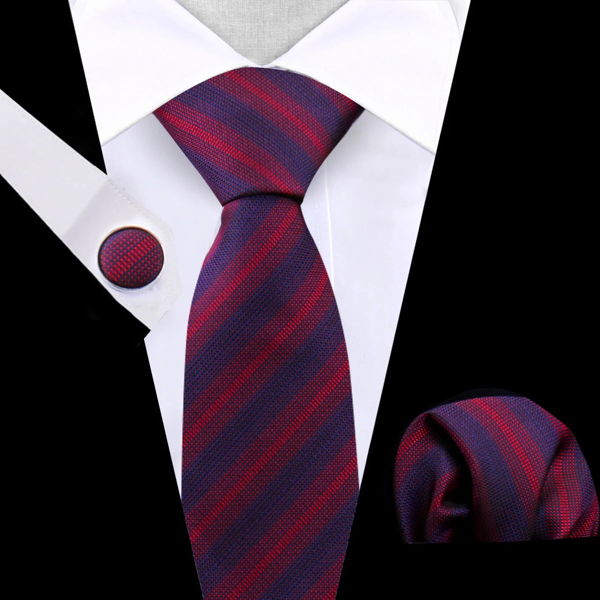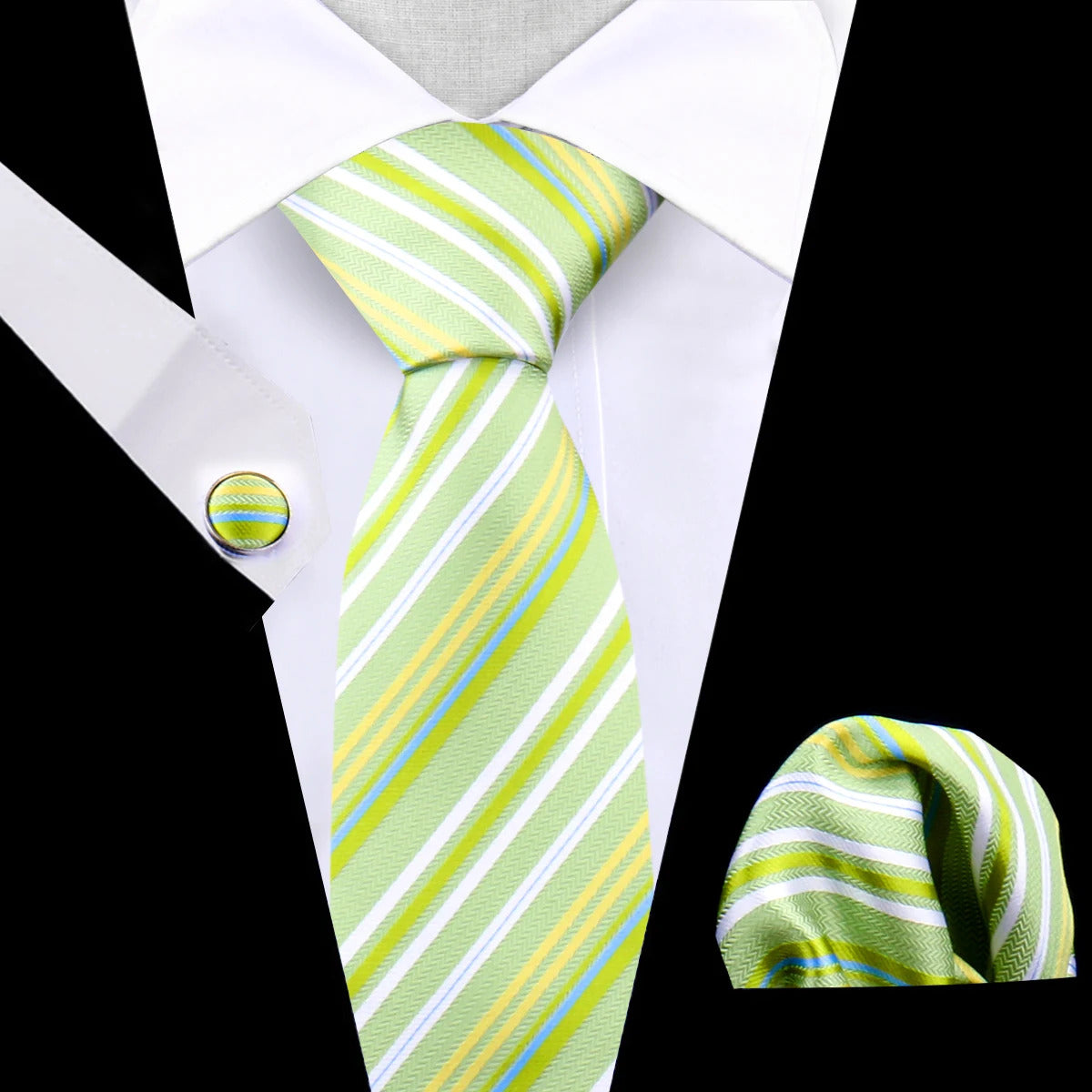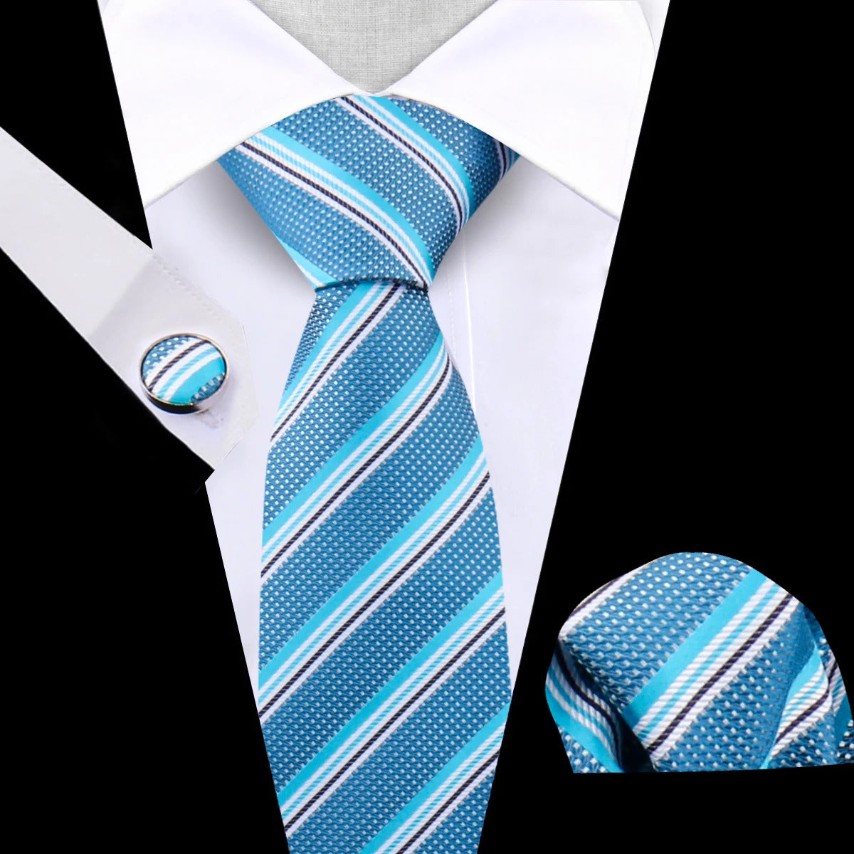 领带男Business Tie For Men Set Necktie Cufflink Classic Handkerchief Suit For Wedding High Quality Stripe Tie Set Formal Gravata Gift