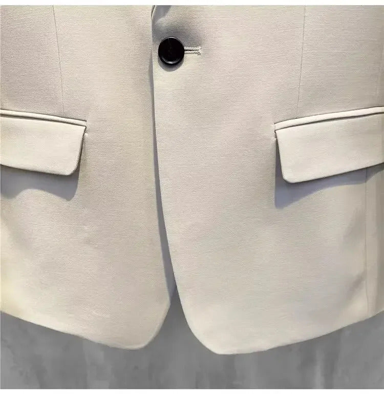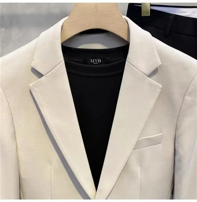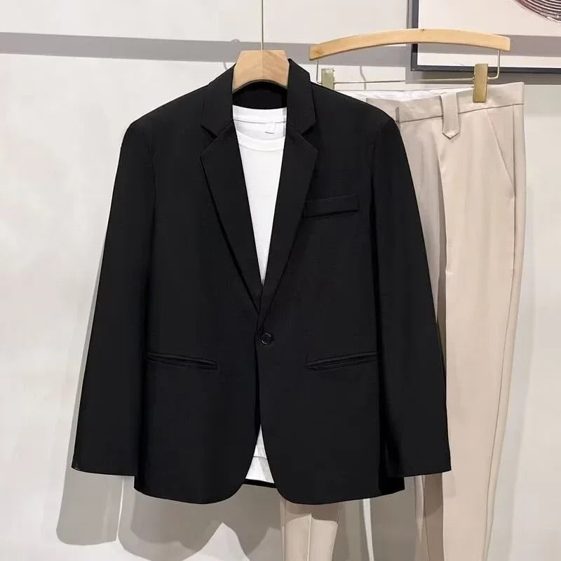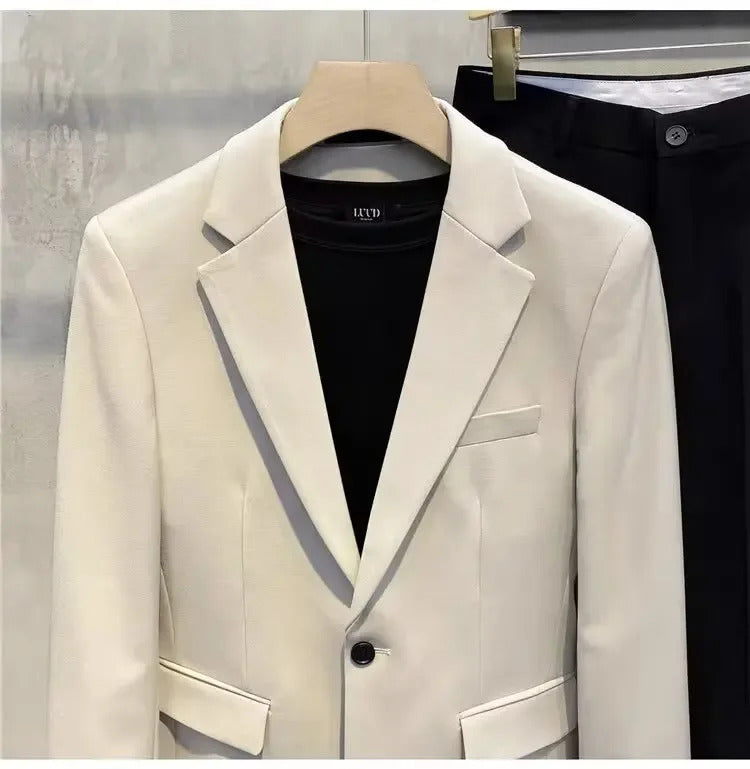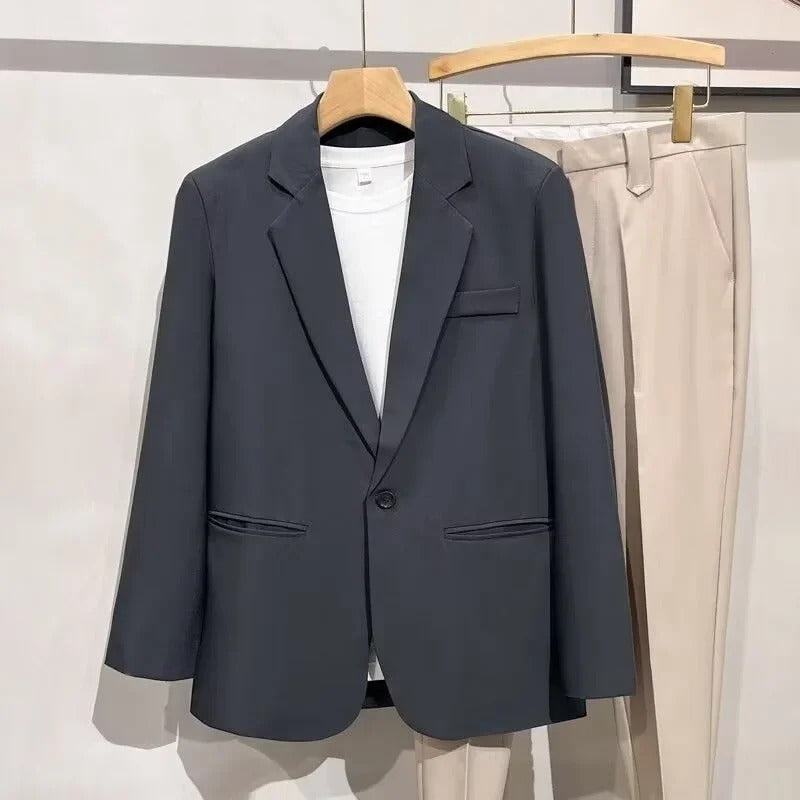 商务装男Casual Draped Men's Blazer English Style Plus Size Single Breasted Flat Collar Long Sleeve Standard Trendy Fashion