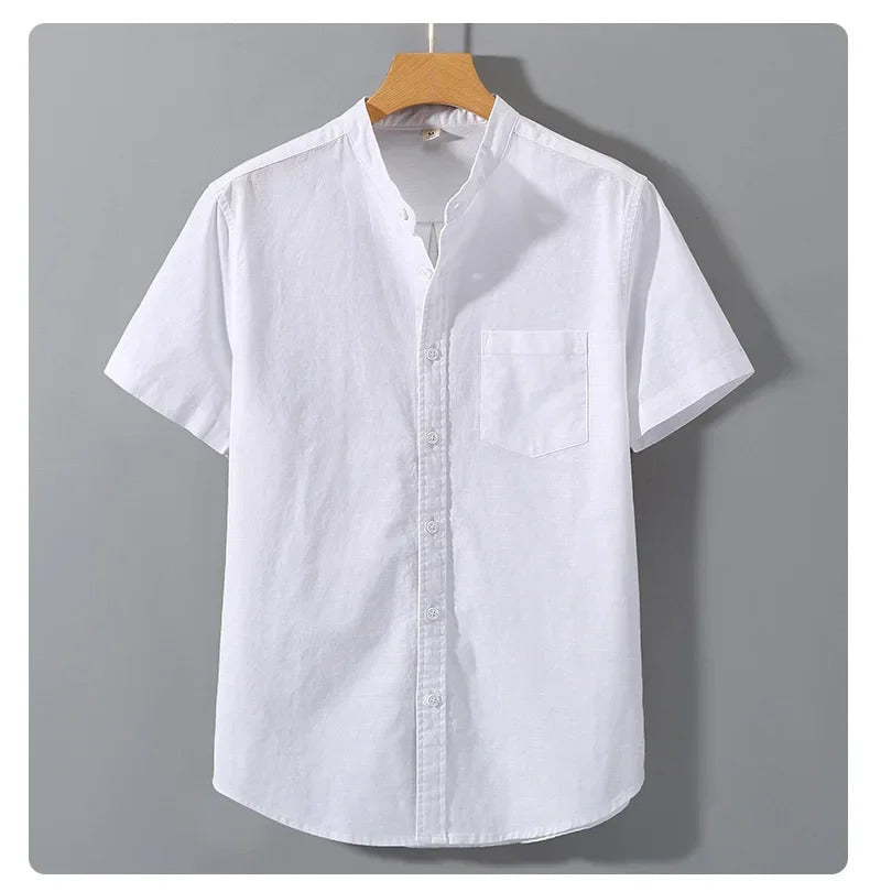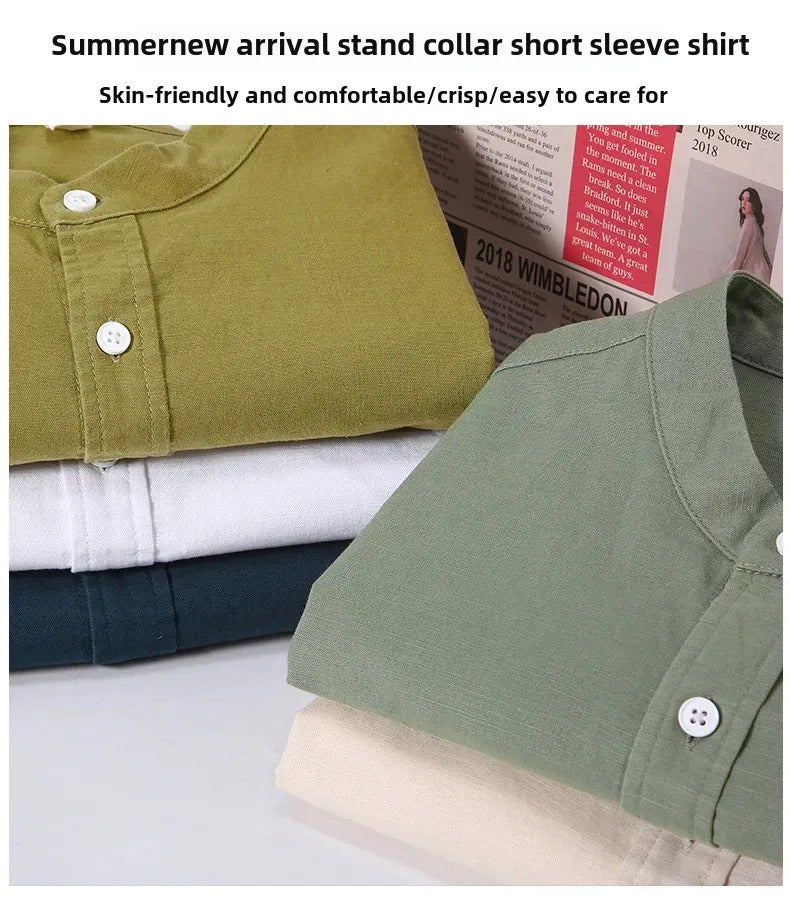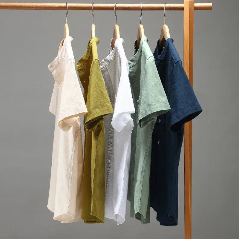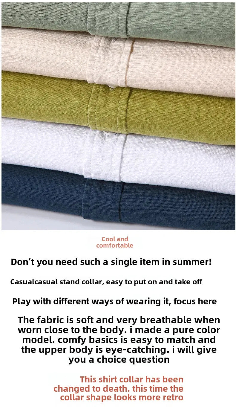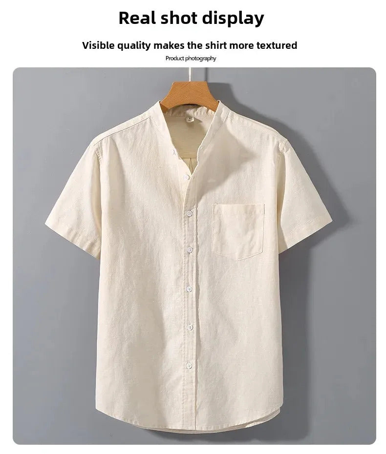 衬衫男Casual Linen Shirt For Men Loose Fit Short Sleeves Chinese Style Summer Cotton And Linen Men's Wear Top Jacket