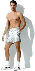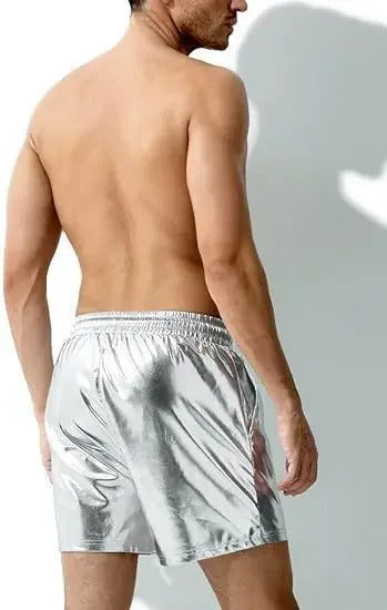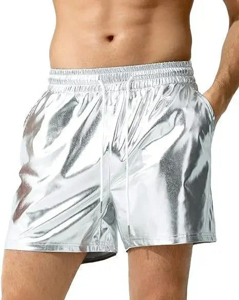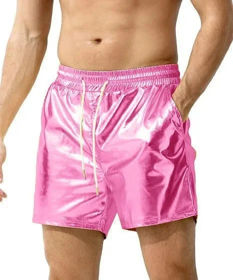 短裤男Casual Men's Shorts European and American Style Bright Surface Leather Crossbody Shorts Beach Casual Shorts Loose Fit Spring Sea