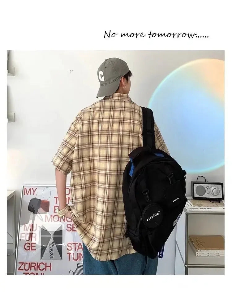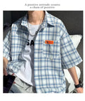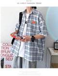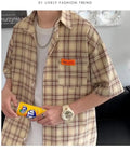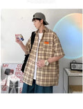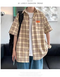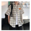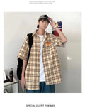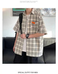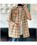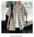 衬衫男Casual Plaid Shirt Men's Short Sleeves New Model Trendy Brand Clothing Spring Autumn Season Cross-border Japanese Style