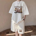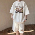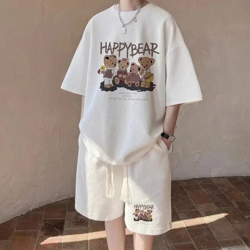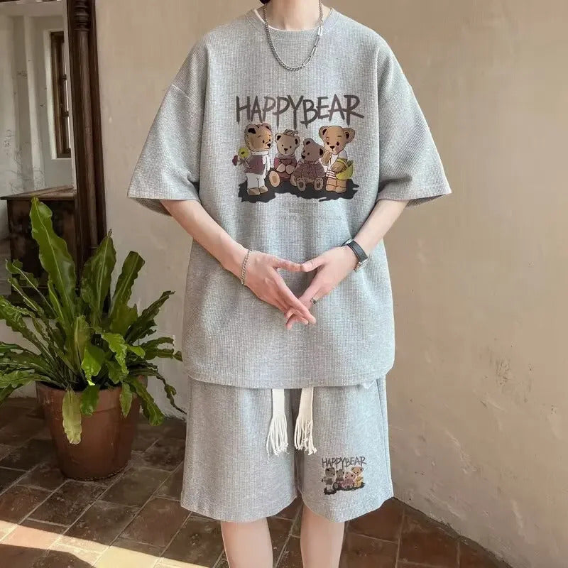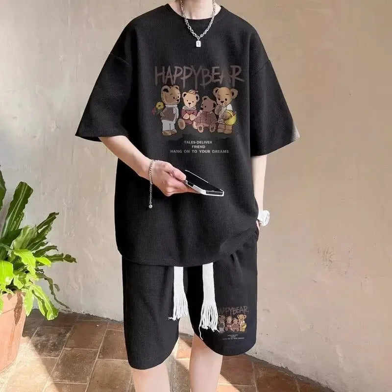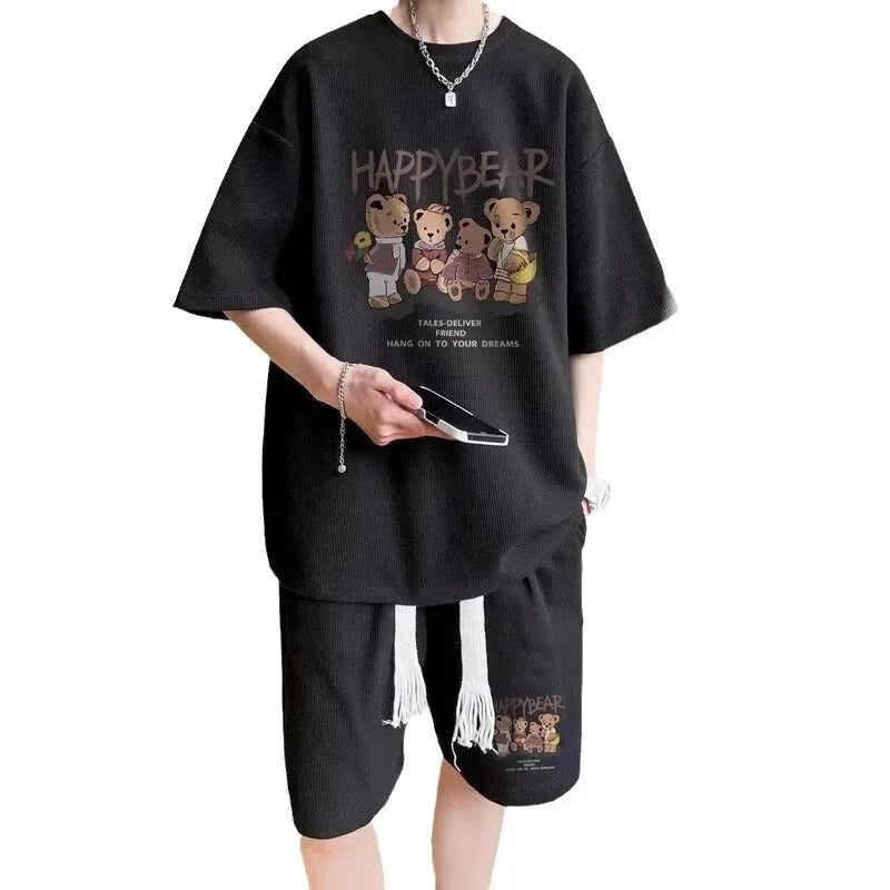 男士套装Casual Sporty Bear Printing Men's Summer Suit Trendy Youth Loose-Fit Short Sleeve Shorts 2-Piece Set From China Mainland