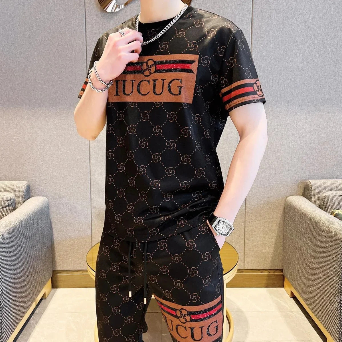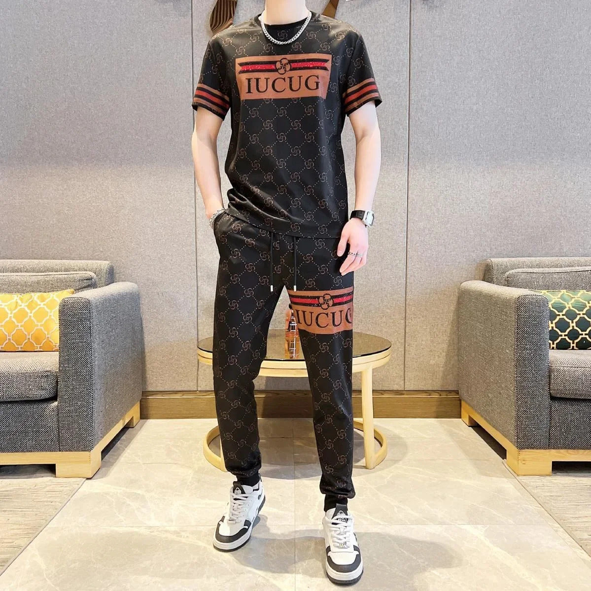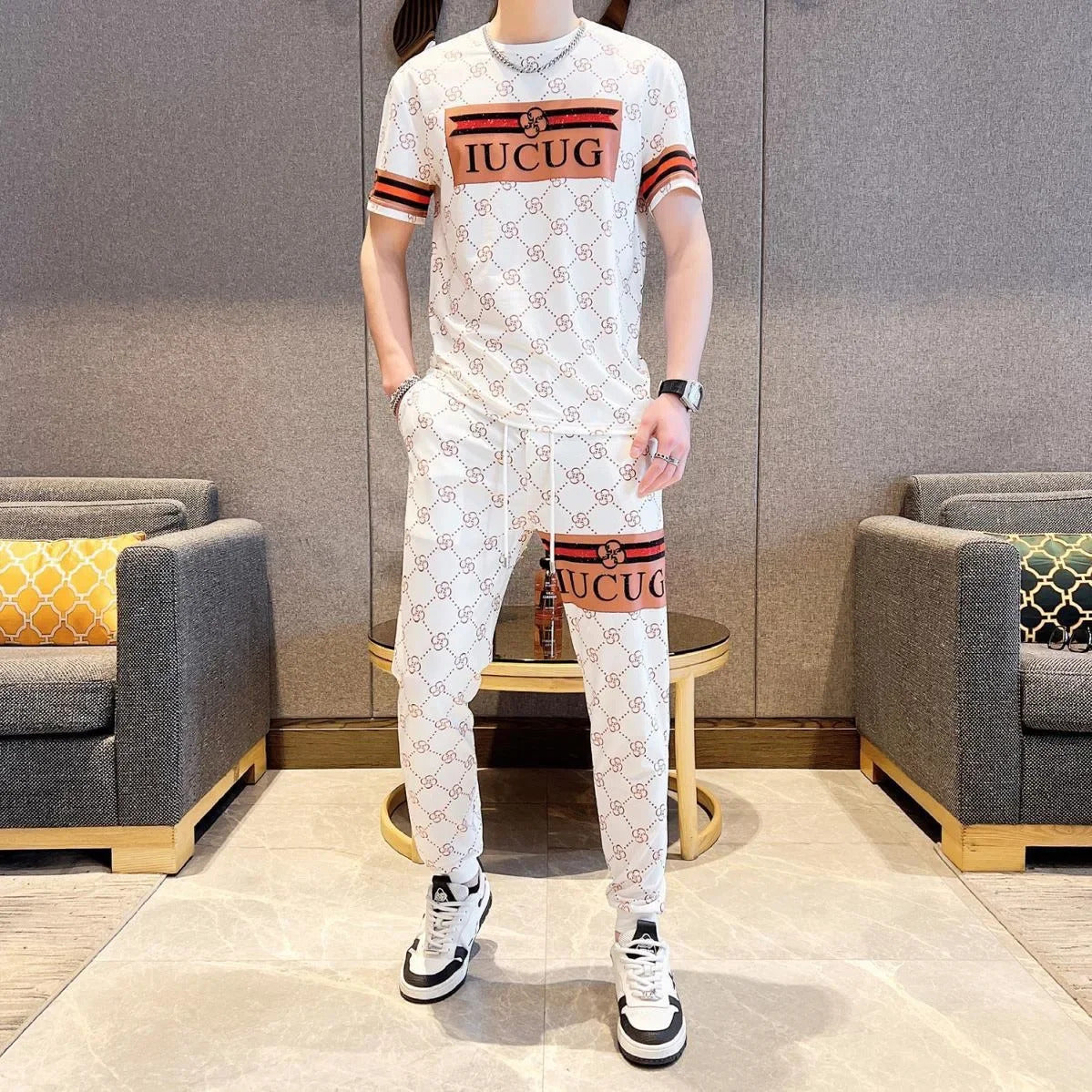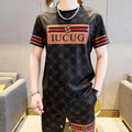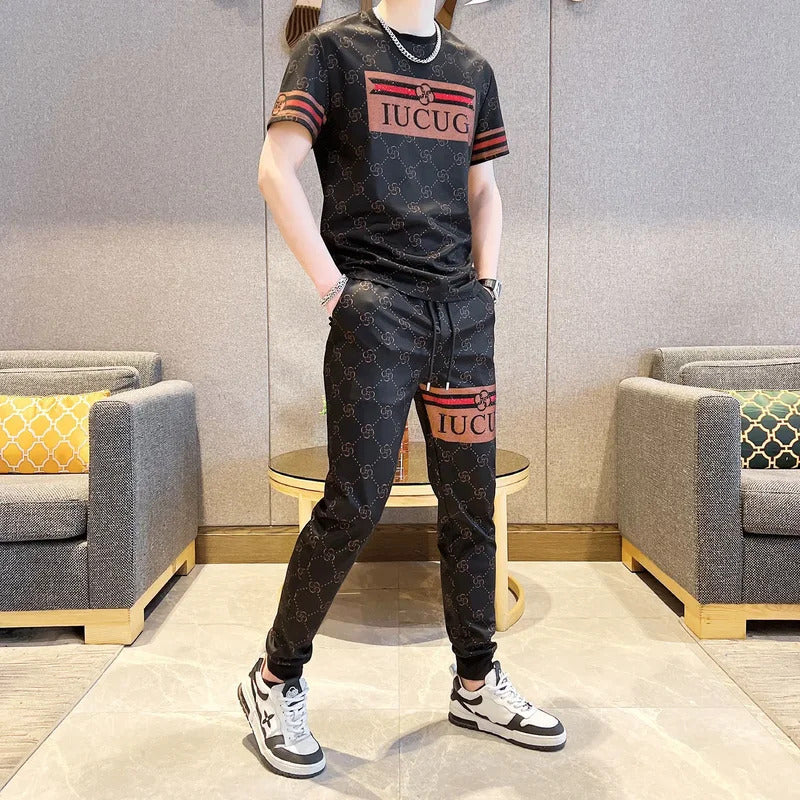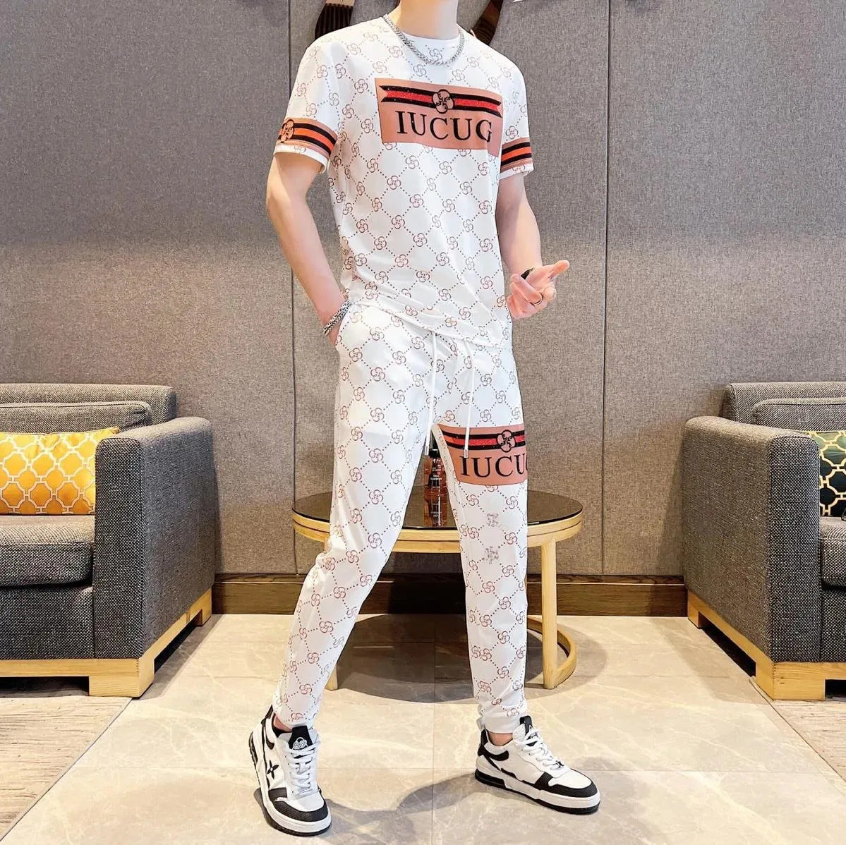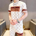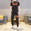 男士套装Casualsuit Men's Summer Stylish Matching New Korean Version Youth Trendy Fashion Sports Printed Short Sleeves 2-Piece Set