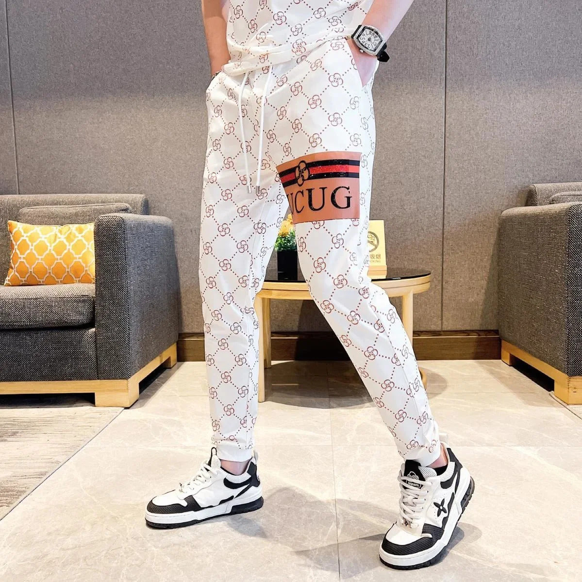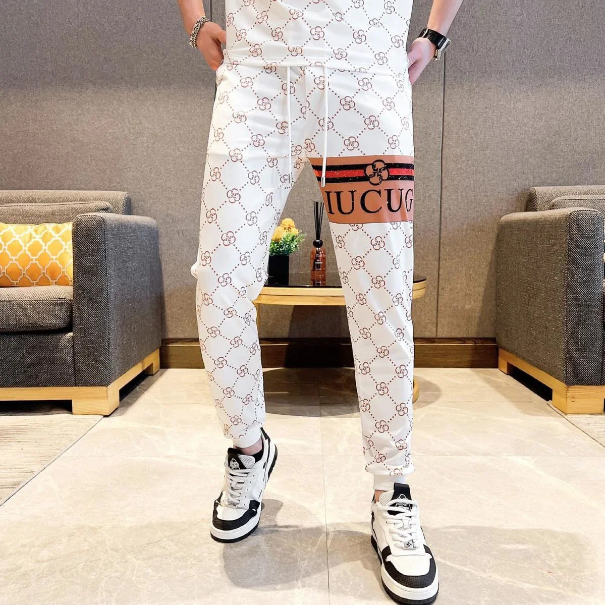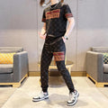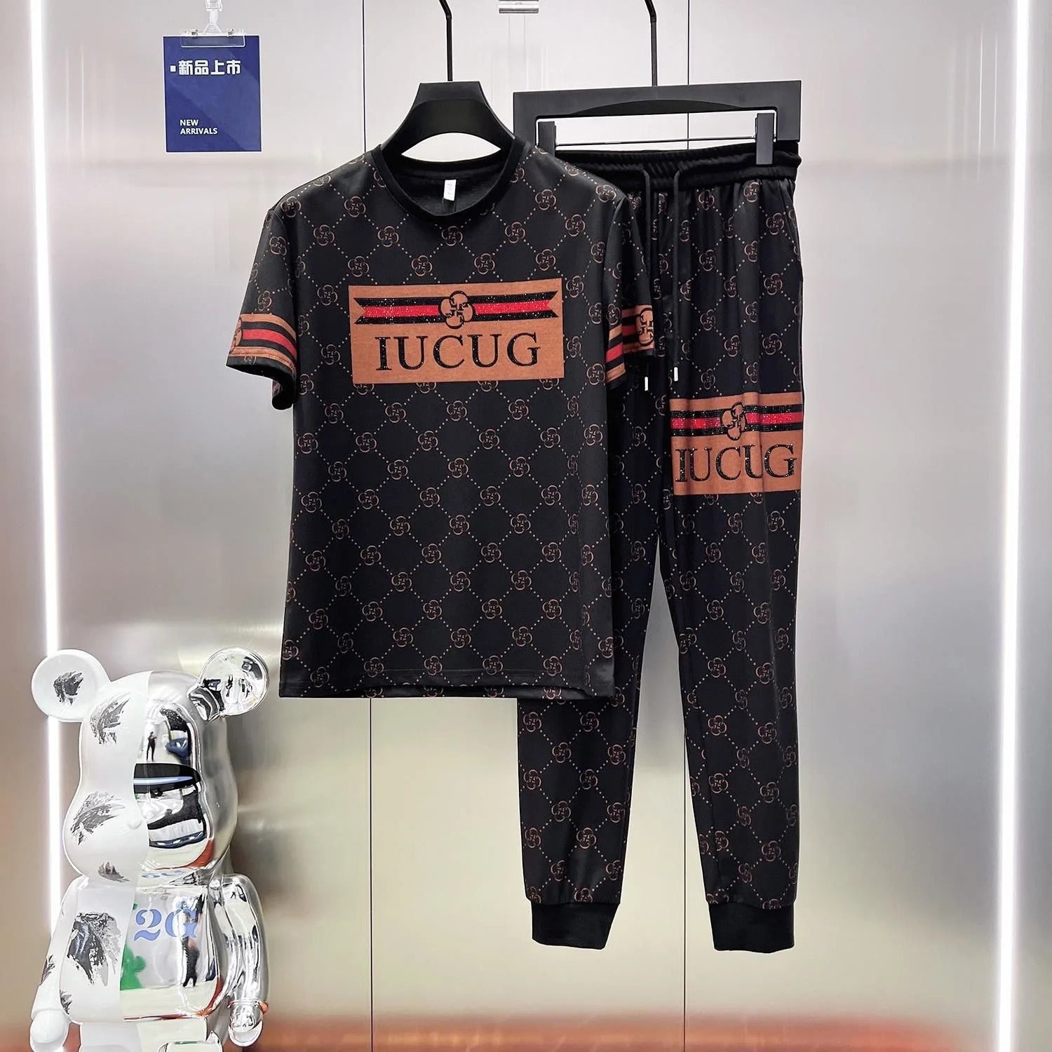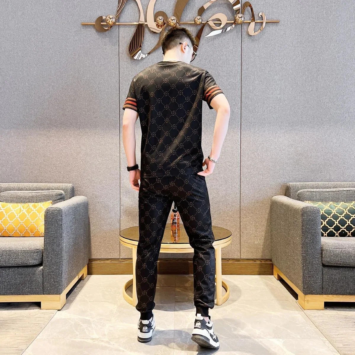 男士套装Casualsuit Men's Summer Stylish Matching New Korean Version Youth Trendy Fashion Sports Printed Short Sleeves 2-Piece Set