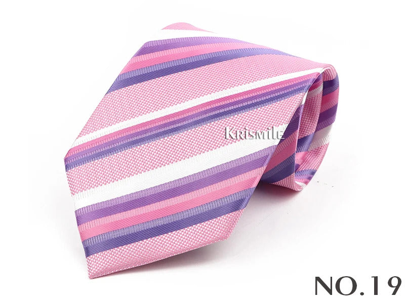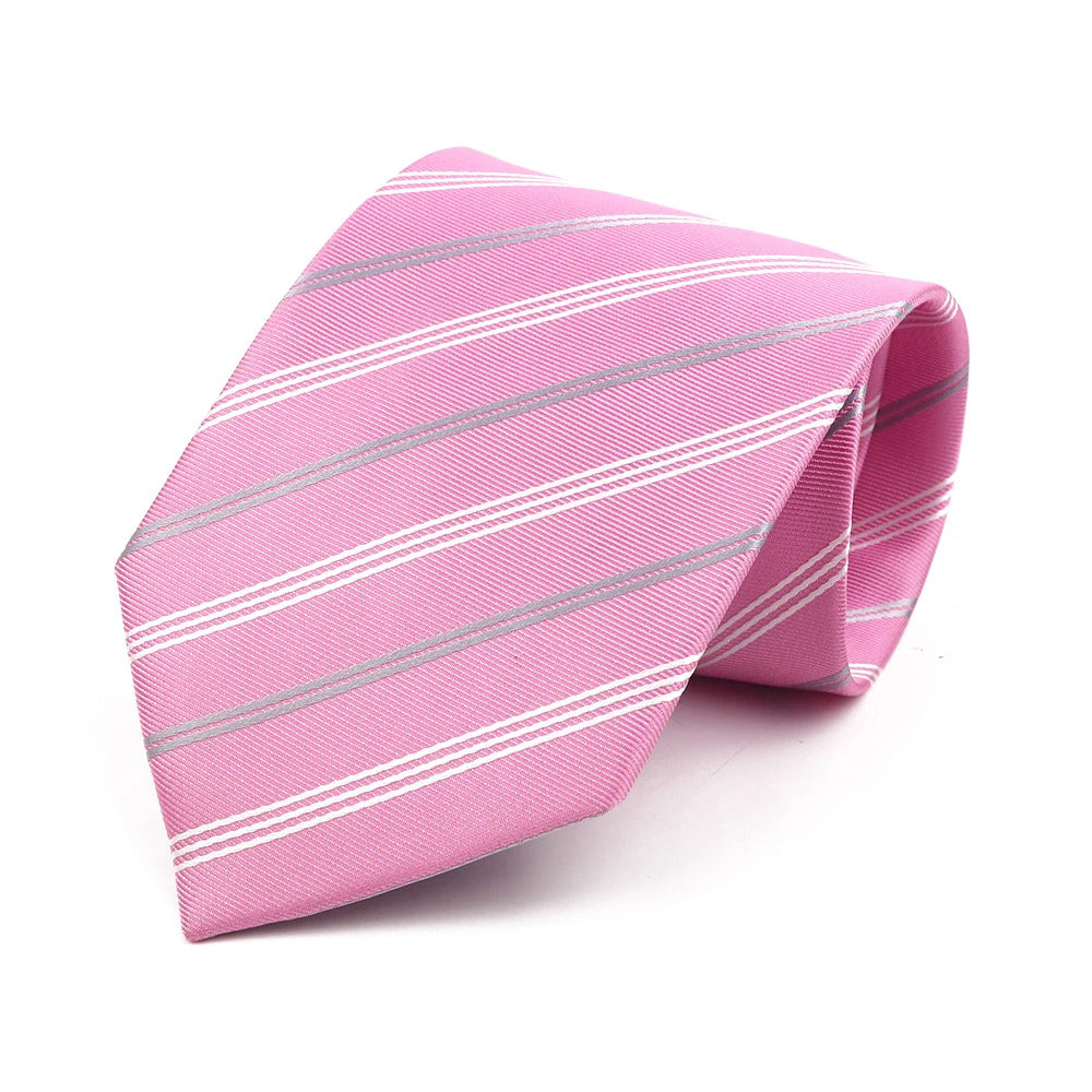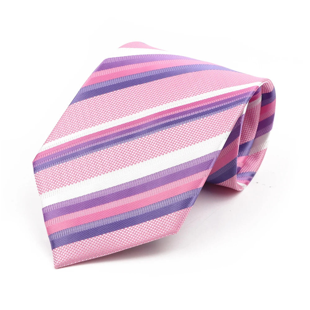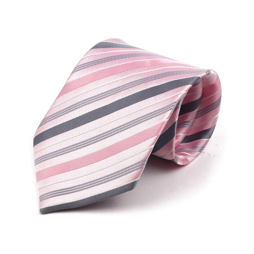 领带男Classic Striped Necktie For Men 8cm Width Light Grey Pink Purple Thin Ties Fit Summer Wedding Party Daily Wear Cravat Accessory