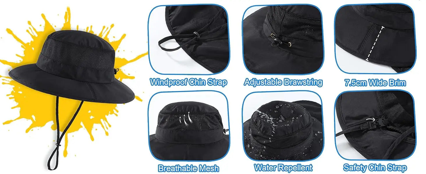 防晒帽男Connectyle Boys Outdoor UPF50+ Kids Sun Bucket Hat Wide Brim Fishing Hat With Neck Flap Breathable Adjustable Sun Protection Hat