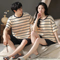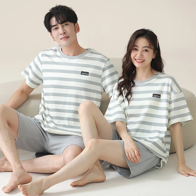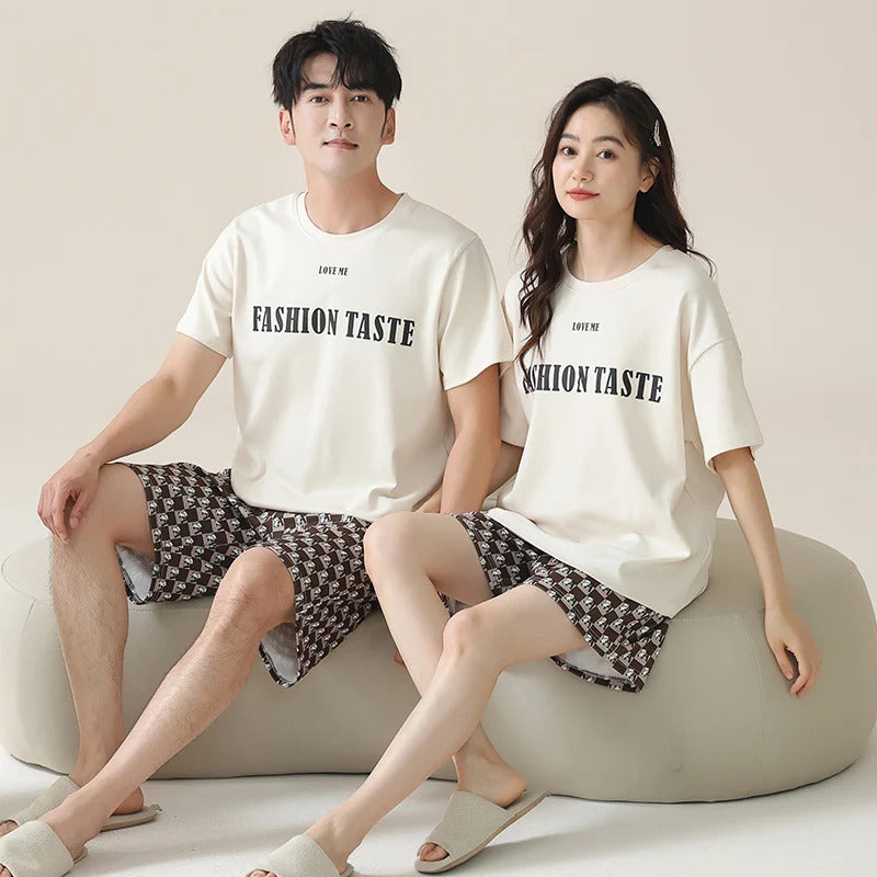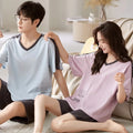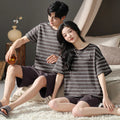 睡衣男Couples Home Suit Women's Sleepwear Suit Man's Pajamas Set Cotton Short Sleeves Sleep Tops Shorts Pyjamas Nightwear Mujer Homme