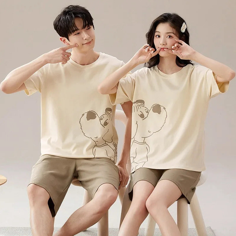 Specifications:Material: Cotton and Polyester BlendPattern Type: CartoonSleeve Length: ShortSeason: SummerCollar: Round NeckOrigin: Guangdong, ChinaFeatures:|Pajamas For Shorts Guy|Matching Couple Pajamas Amazon|**Comfort Meets Style**Embrace the cozy nights with our Couples Home Suit, a perfect blend of comfort and style. Crafted from a soft cotton and polyester blend, these pajamas offer a gentle touch against your skin, ensuring a comfortable night's sleep. The playful cartoon pattern adds a touch of whimsy to your bedtime attire, making it a delightful addition to your sleepwear collection. The short sleeves and round neck design provide a relaxed fit, ideal for those warm summer nights.**Designed for Couples**Our matching couple pajamas are not just about comfort; they're a symbol of togetherness. Whether you're looking for a thoughtful gift for your significant other or simply want to add a touch of romance to your nightly routine, these pajamas are the perfect choice. The set includes both a sleep top and shorts, ensuring that both partners can enjoy the comfort and style of matching pajamas. The Chinese sizing may run slightly smaller, so be sure to consult the size chart for the perfect fit.**Versatile and Practical**These pajamas are not just for sleeping; they're versatile enough to be worn as loungewear or even as a cozy outfit for a casual movie night at home. The cotton material ensures breathability, making it suitable for various activities. The shorts sets women and best pajamas shorts men options cater to both genders, ensuring that everyone can enjoy the comfort and style of these pajamas. Whether you're looking for a set for yourself or as a gift, these pajamas are sure to be a hit.