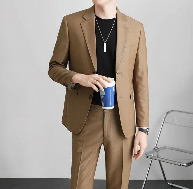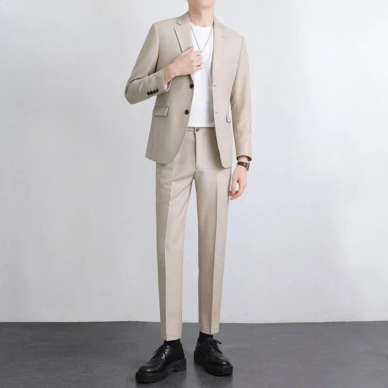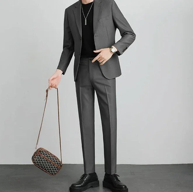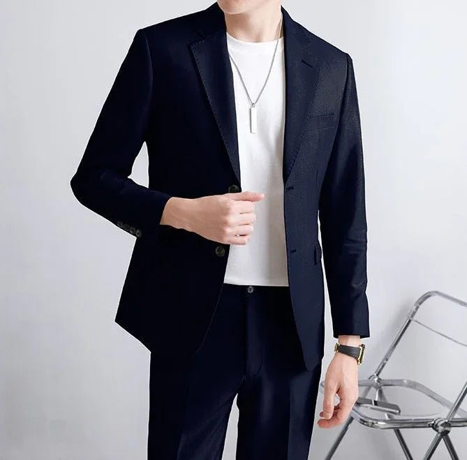 商务装男Double Breasted Blazer Fashion Full Suit for Men Casual Luxury Pants Elegant Clothing Spring Autumn Youth 2 Piece Outfit Set Man
