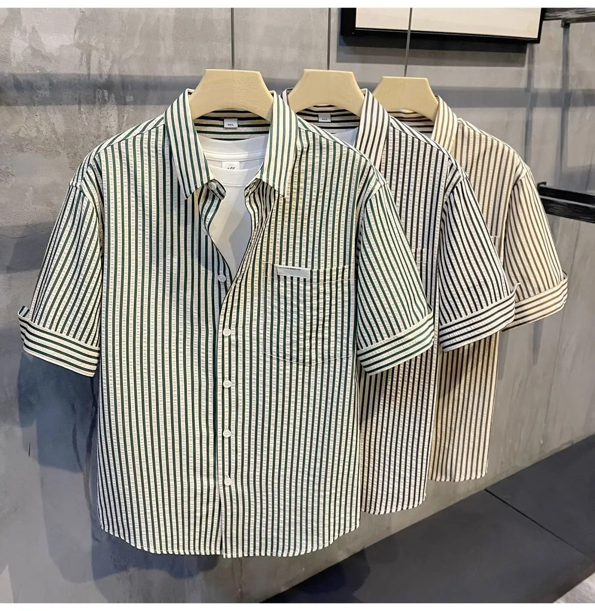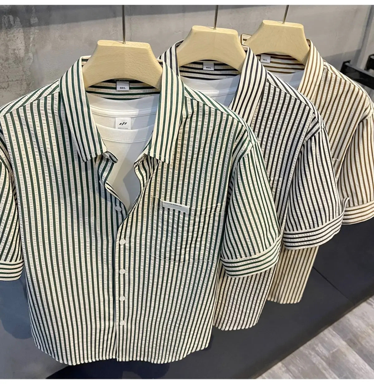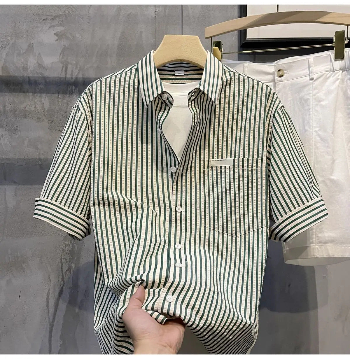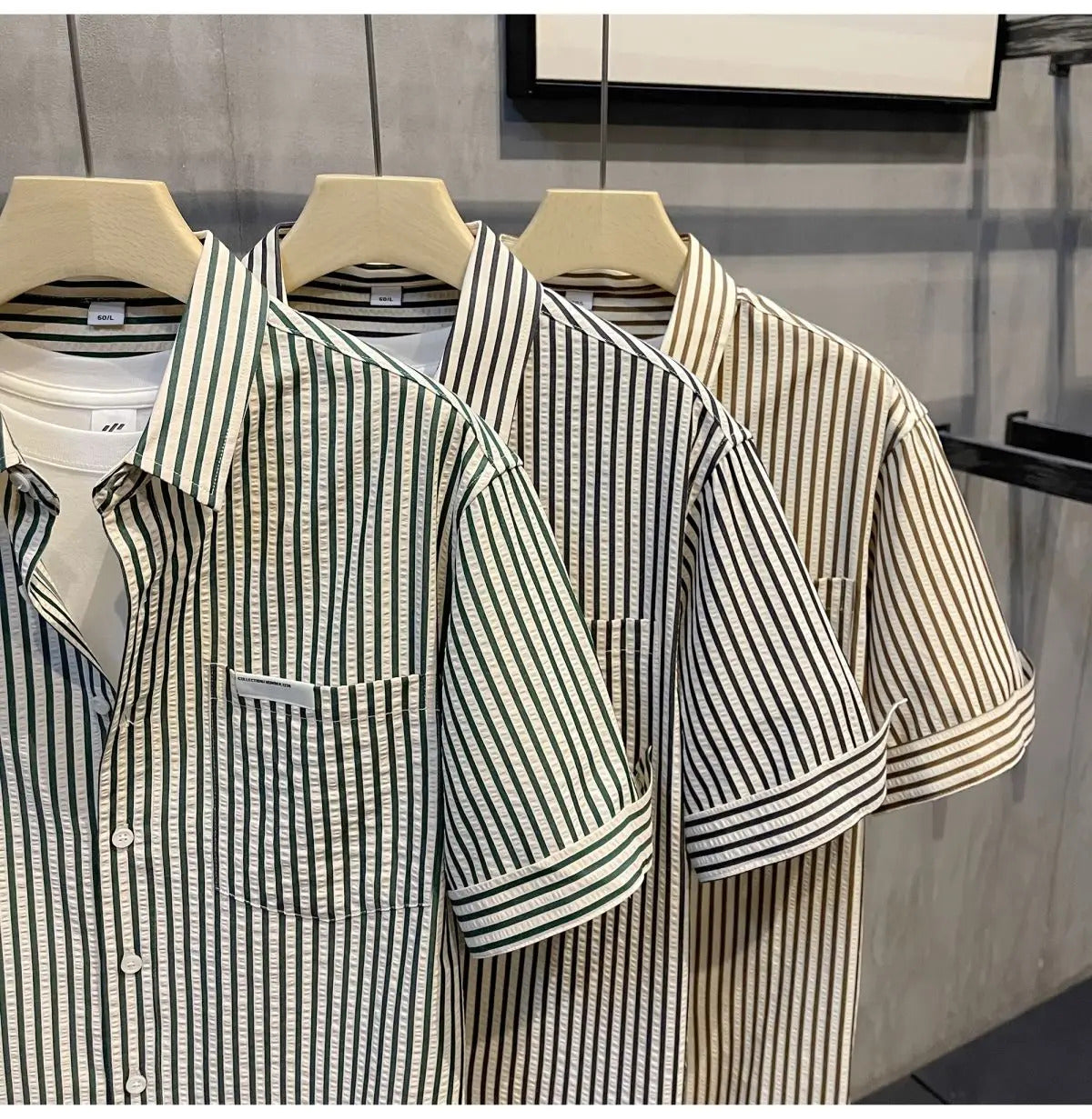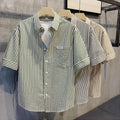衬衫男Elegant Fashion Harajuku Slim Fit Ropa Hombre Loose Casual Sport All Match Tops Square Neck Button Pockets Short Sleeve Blusa
