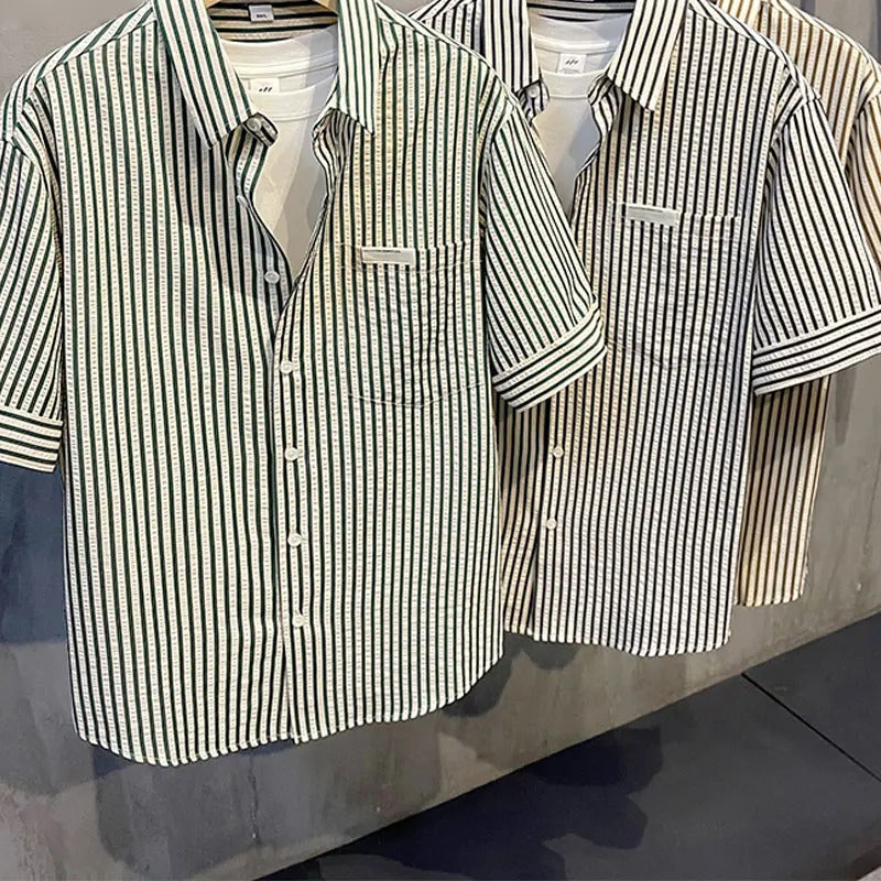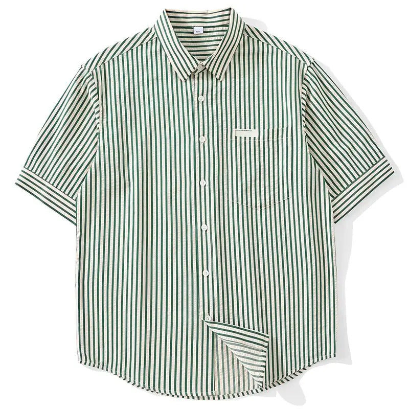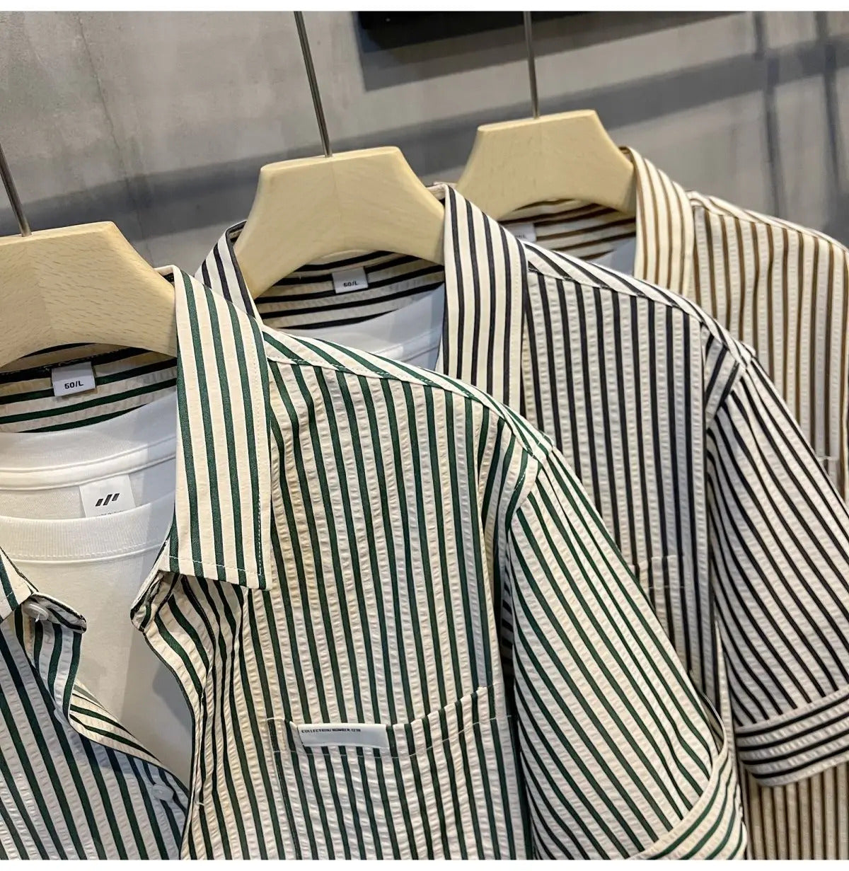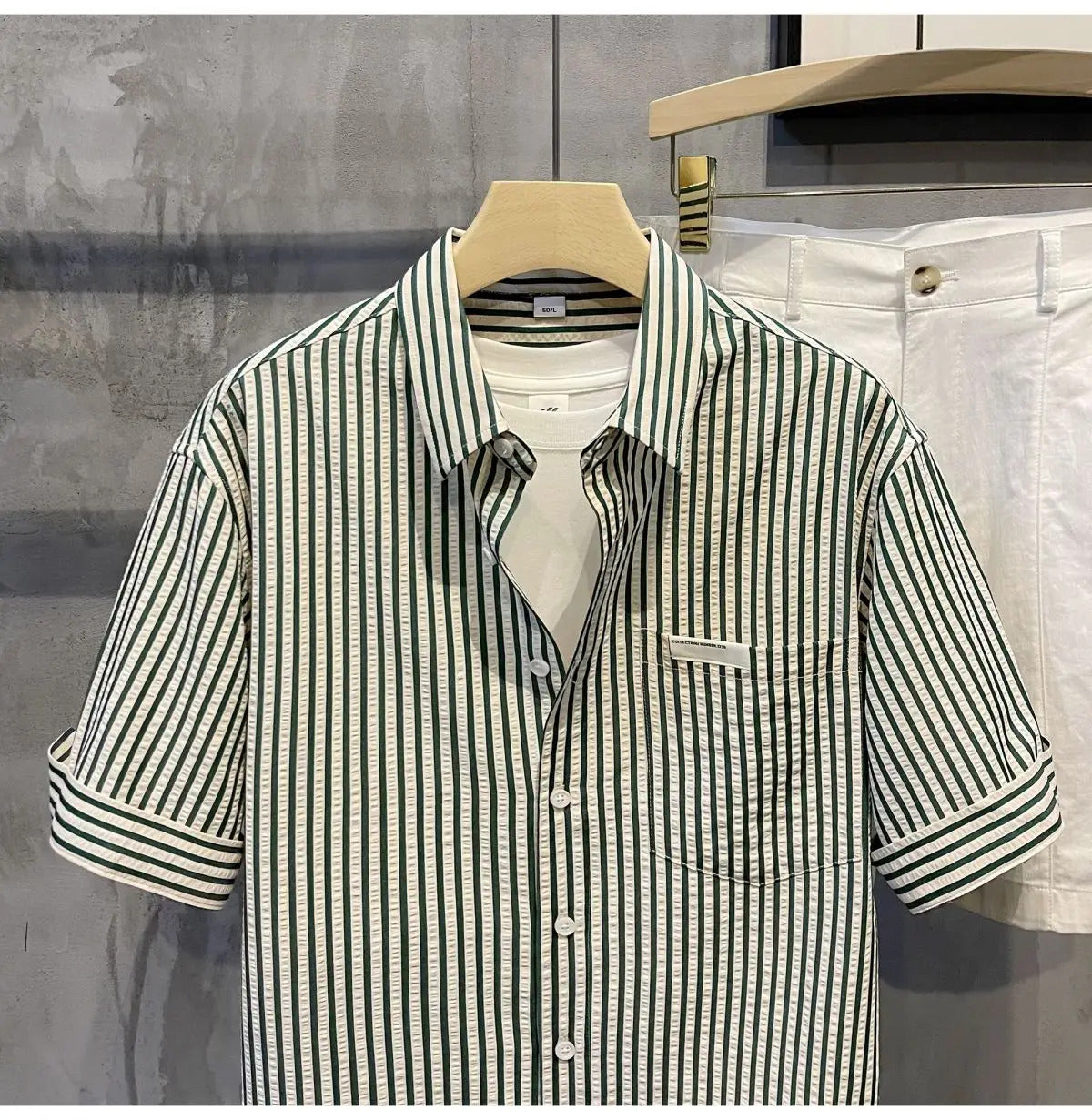衬衫男Elegant Fashion Harajuku Slim Fit Ropa Hombre Loose Casual Sport All Match Tops Square Neck Button Pockets Short Sleeve Blusa